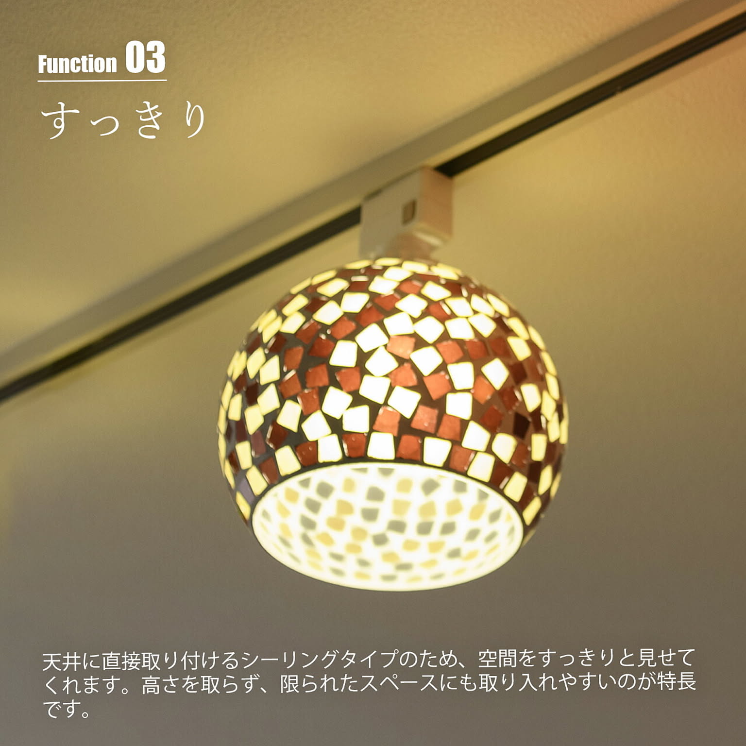 モザイクアートのようなガラスシェードが、灯りをともすたびに繊細なきらめきを生み出す、1灯タイプのシーリングライト。色や質感の異なるガラスが光をやさしく拡散し、天井や壁に美しい陰影を描き出します。1灯仕様ならではの程よい明るさで、空間に落ち着きのある雰囲気を演出。リビングのサブ照明やダイニング、寝室、玄関、廊下など、限られたスペースにも取り入れやすいデザインです。点灯していない時もインテリアのアクセントとして映える、デザイン性と機能性を兼ね備えた1灯シーリングライトです。