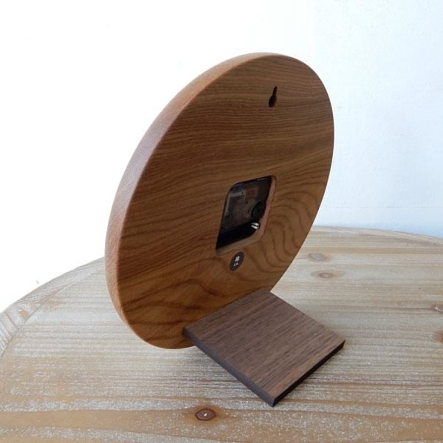 木の時計(スタンド付)ニレ無垢 φ24cm 掛け時計 置き時計 木の時計 木製時計 楡 にれ 無垢 壁掛け時計 置き時計 無垢 スタンド式 手作り ナチュラル 日本製 国産 天然木 贈り物 お誕生日プレゼント インテリア時計