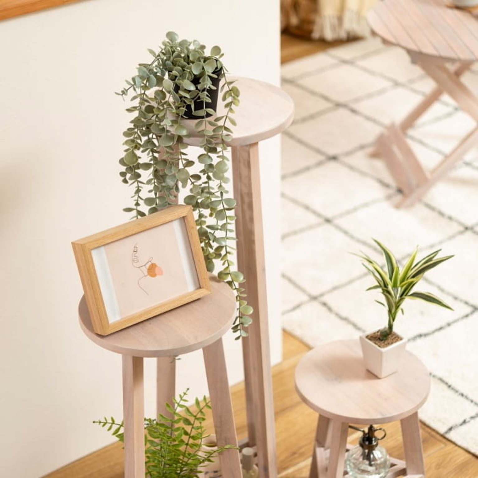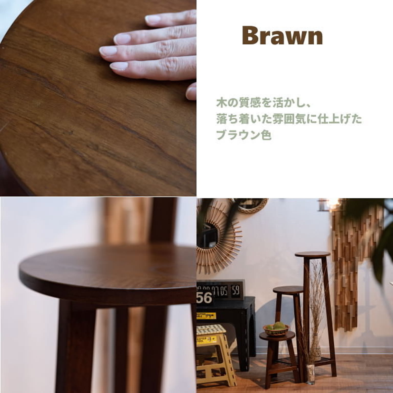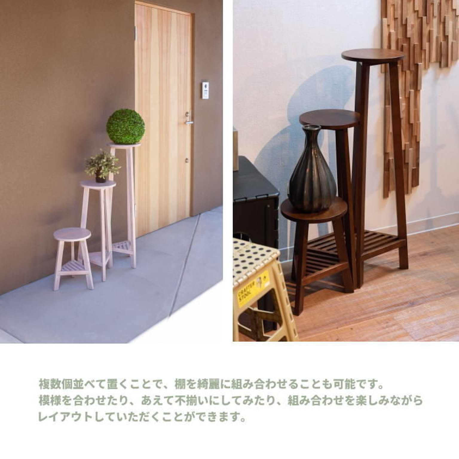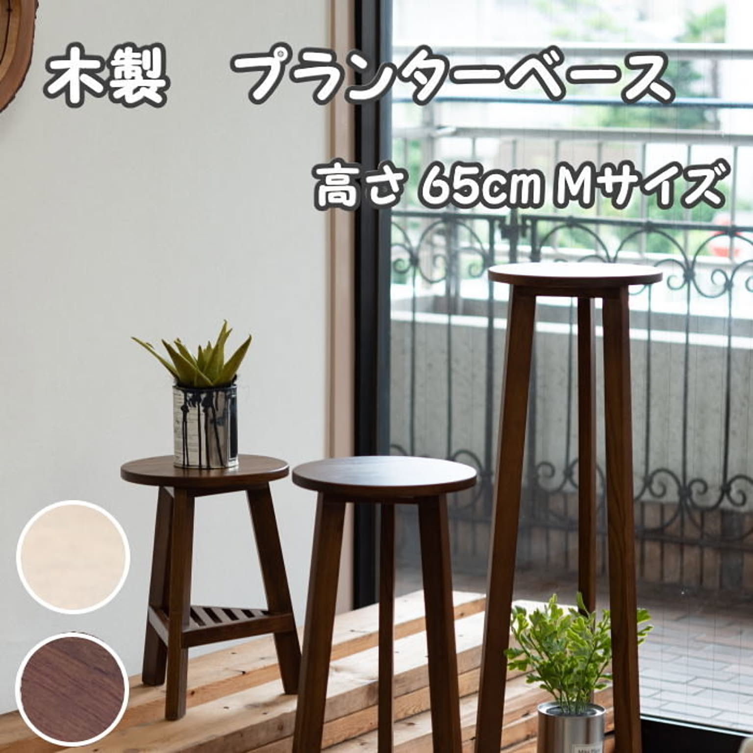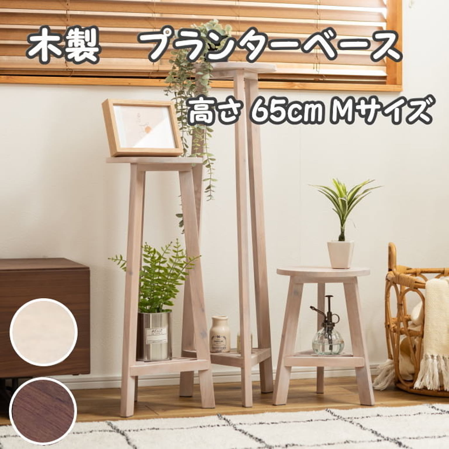 おしゃれ 花台 木製 丸型 円形 棚付き 軽量 高さ35/65/90cm ロータイプ ミドルタイプ ハイタイプ ブラウン ホワイト 完成品 プランター台 観葉植物 台 ディスプレイ モダン 北欧 かわいい
