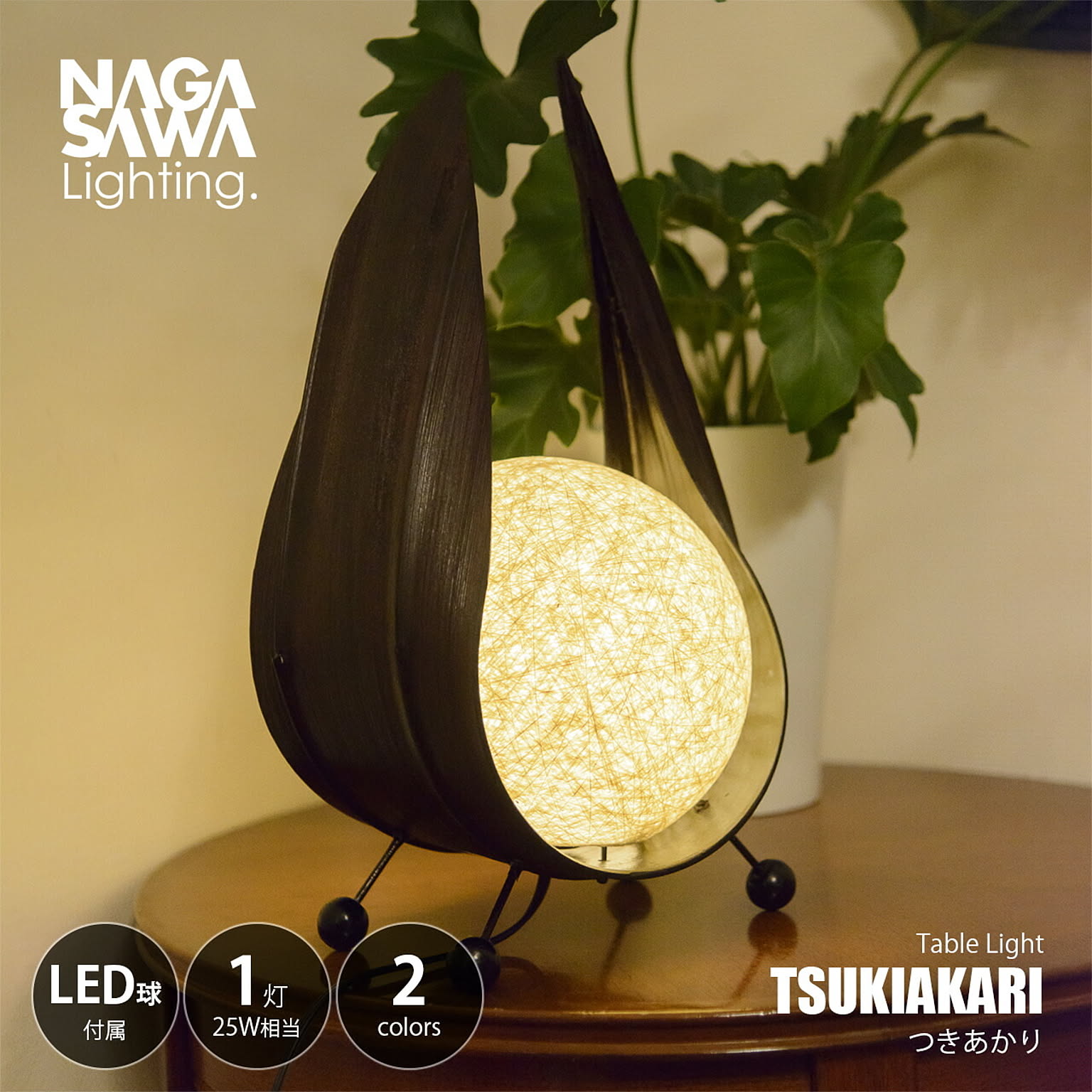 NAGASAWA Lighting 長澤ライティング TSUKIAKARI つきあかり (LED球付属) / テーブルランプ テーブルライト 卓上照明 E17 25W相当×1灯 ヤシの葉