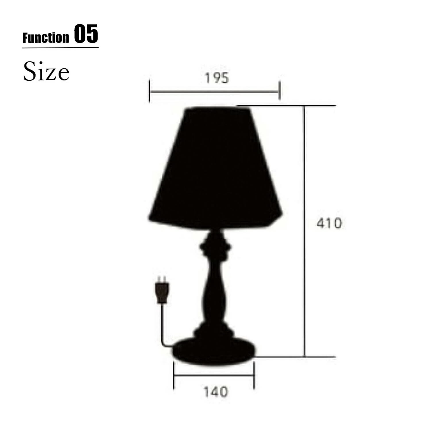 シェード:Φ195×H180mm / スタンド本体:Φ140 mm / 全高:410 mm / コード長:200cm