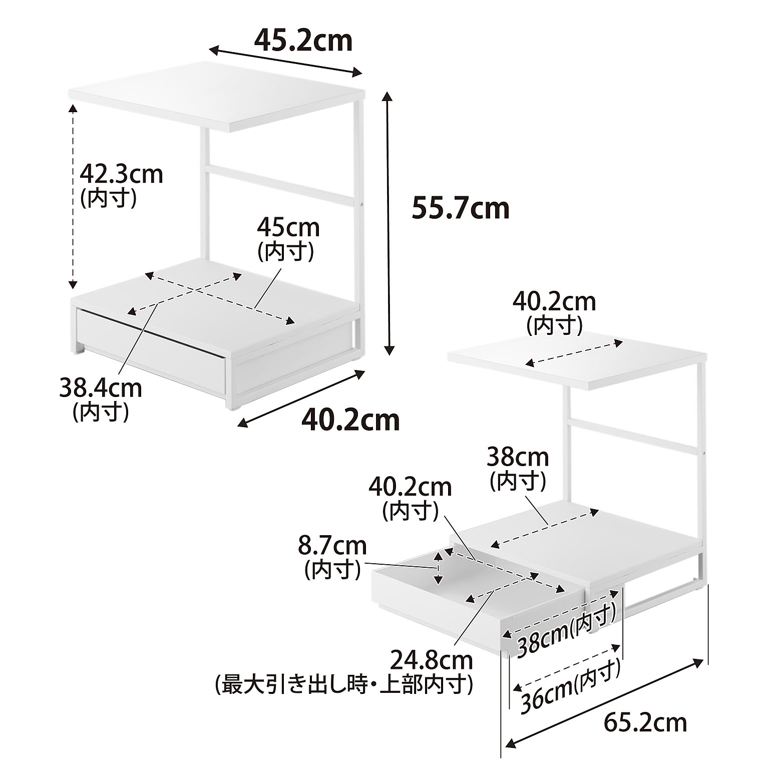 引き出し:約幅40.2cm×奥行き38cm×高さ8.7cm(開口部最大奥行き24.8cm)