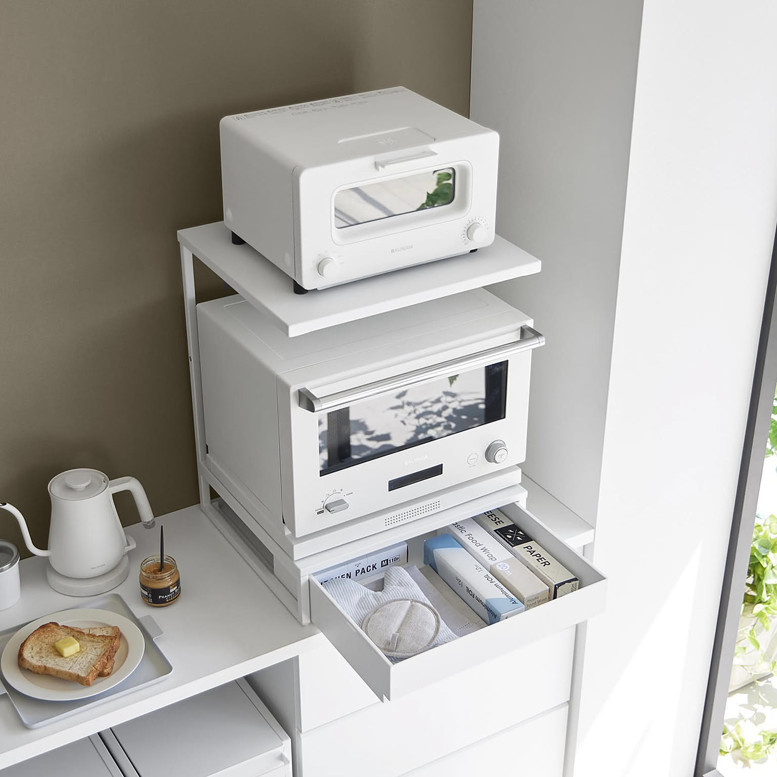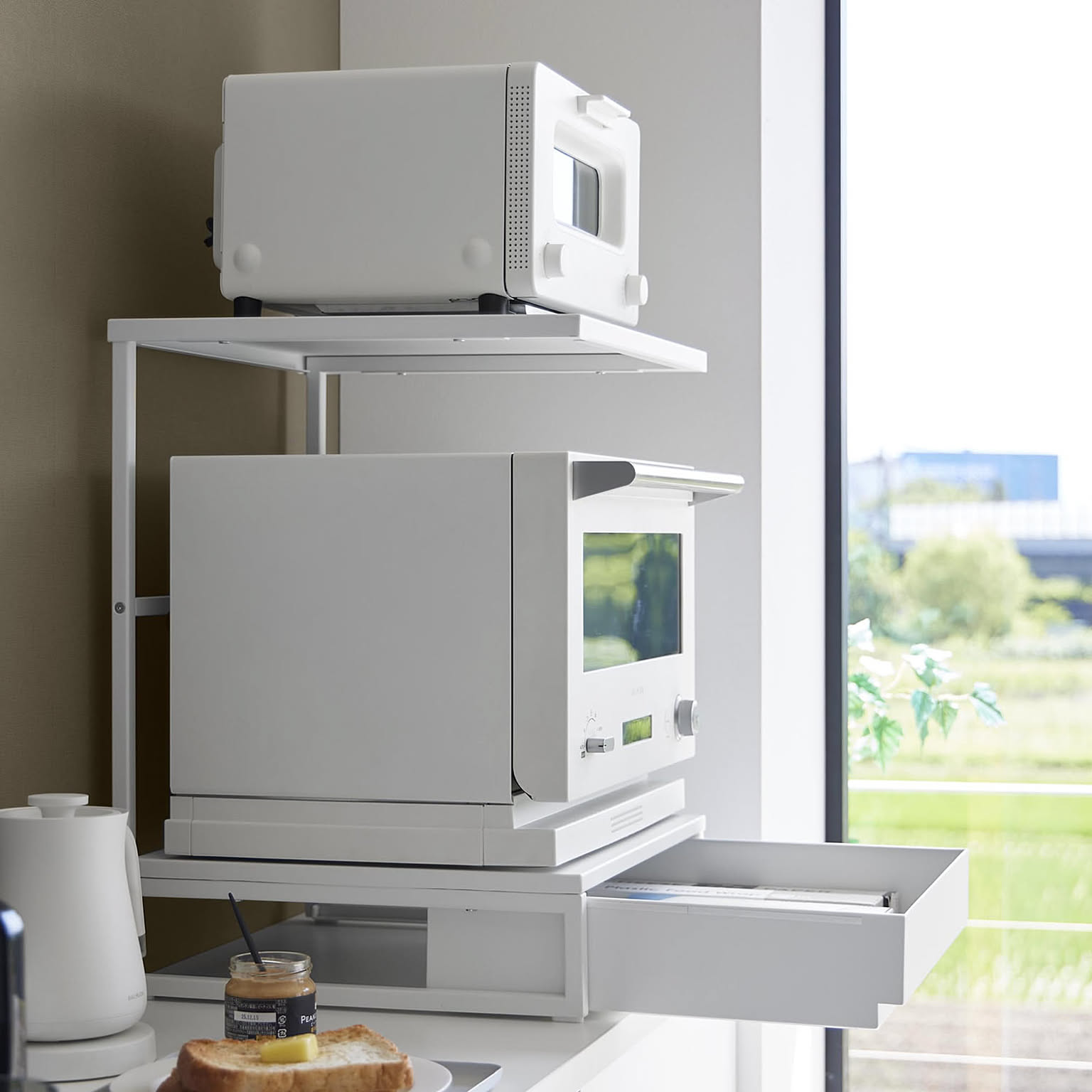 おしゃれな家電下収納ラックで、限られたキッチンスペースを賢く広げて、毎日の家事をよりスムーズで心地よく。