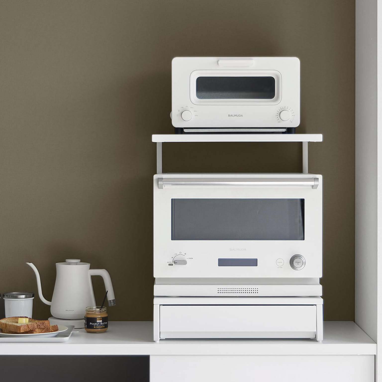 電子レンジ・トースター・炊飯器・ケトルなどのキッチン家電を載せてご使用いただけます。