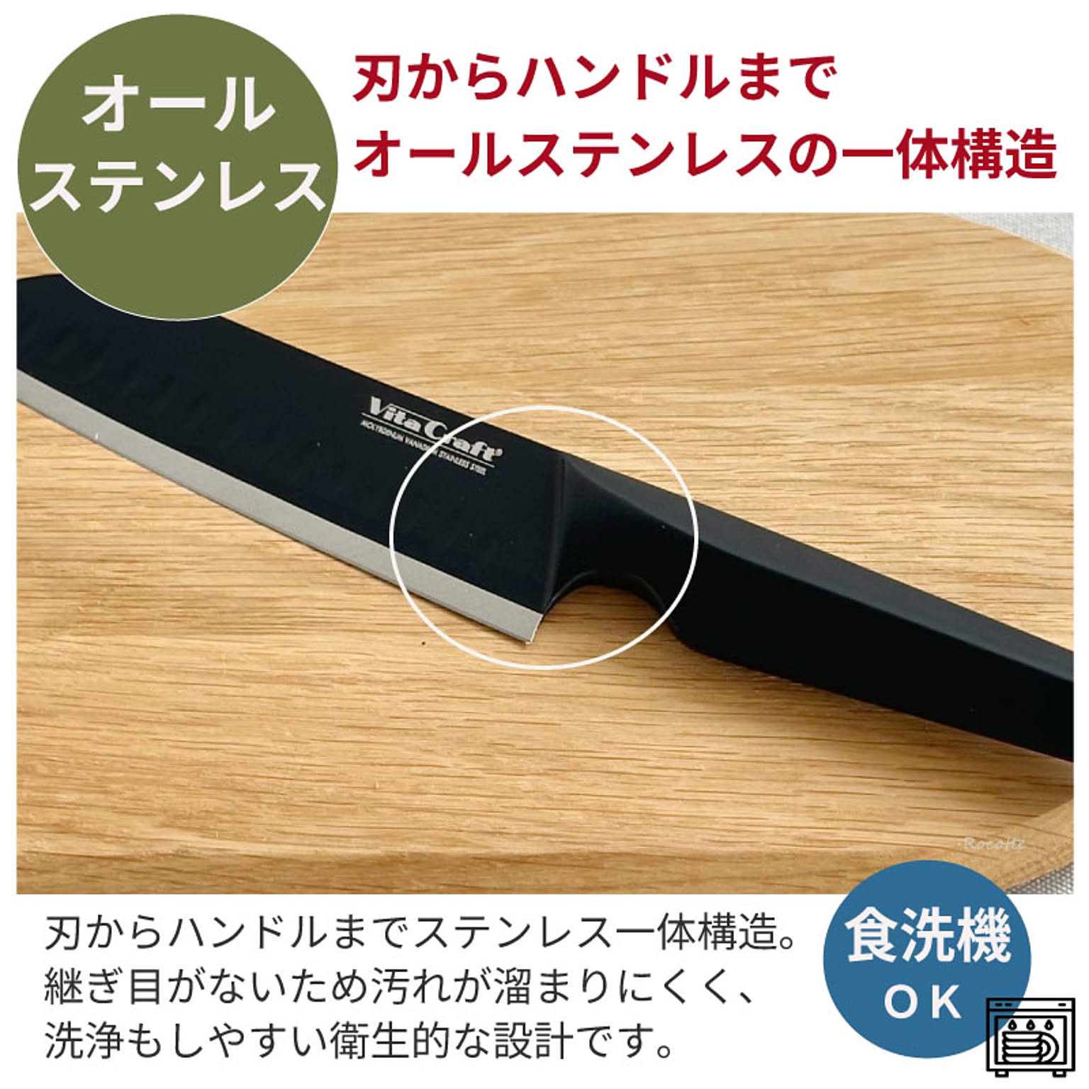 刃からハンドルまでステンレス一体構造。