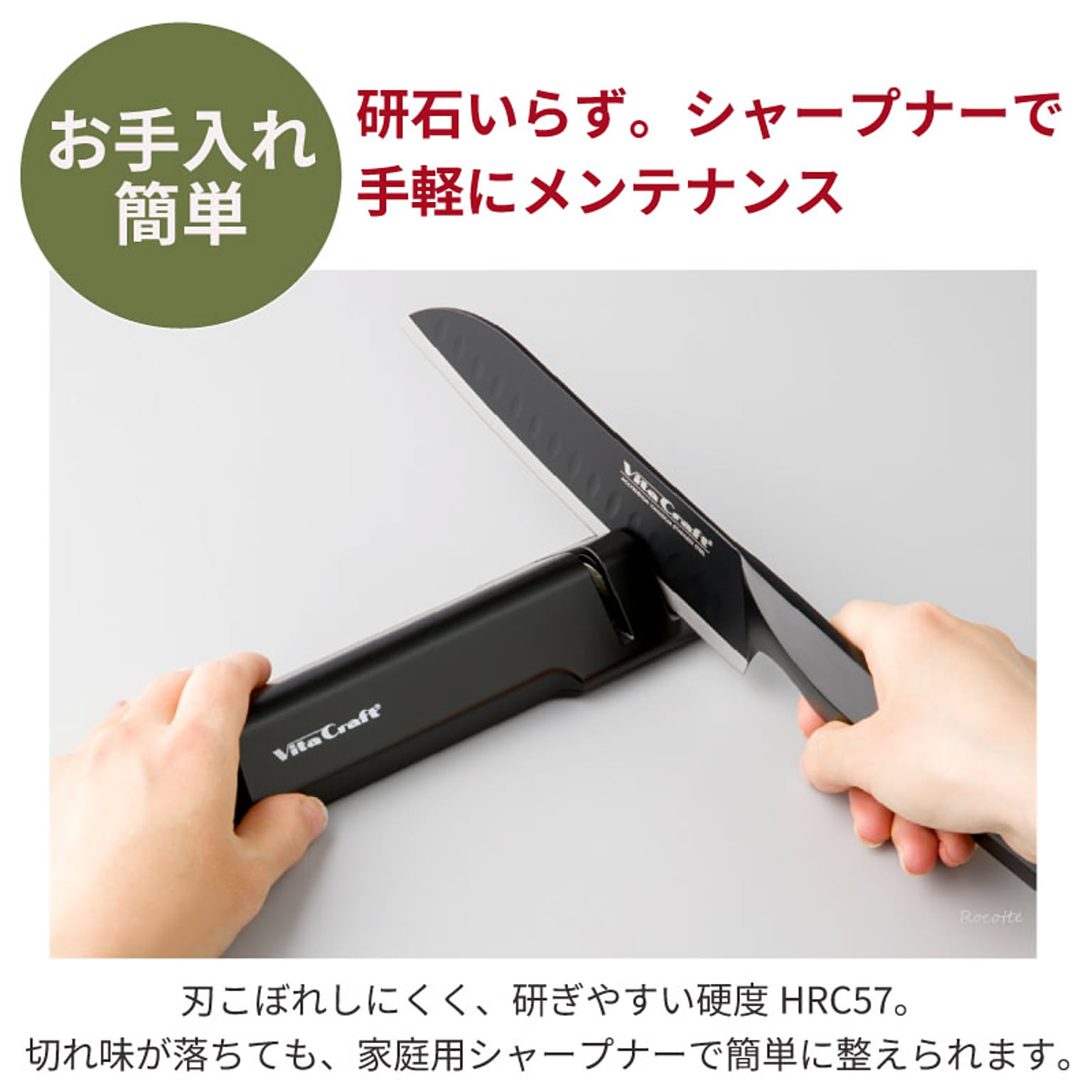 刃こぼれしにくく、研ぎやすい硬度HRC57。