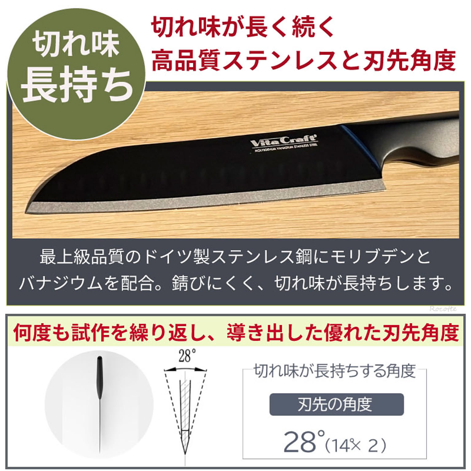 最上級品質のドイツ製ステンレス鋼にモリブデンとバナジウムを配合。