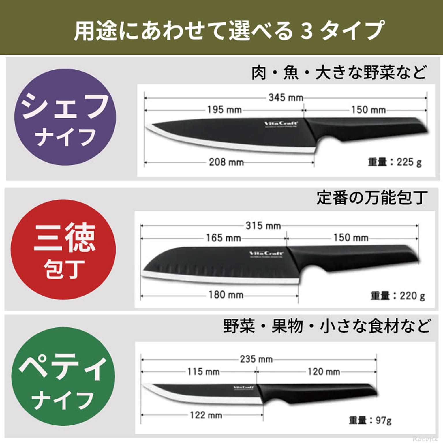 シェフナイフ・三徳包丁・ペティナイフ