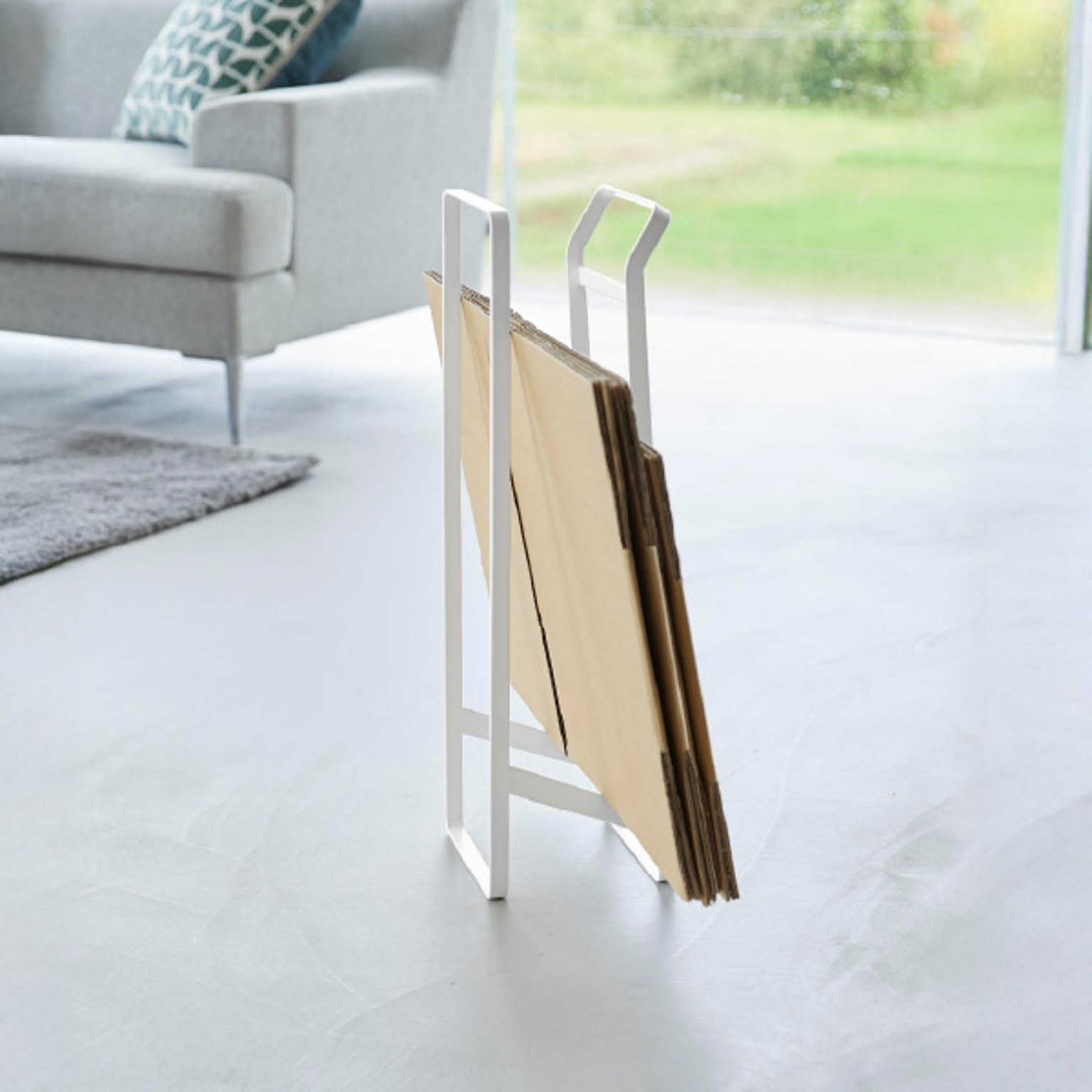 ダンボールを収納したまま持ち運べる、towerシリーズのおしゃれなダンボールストッカーです。