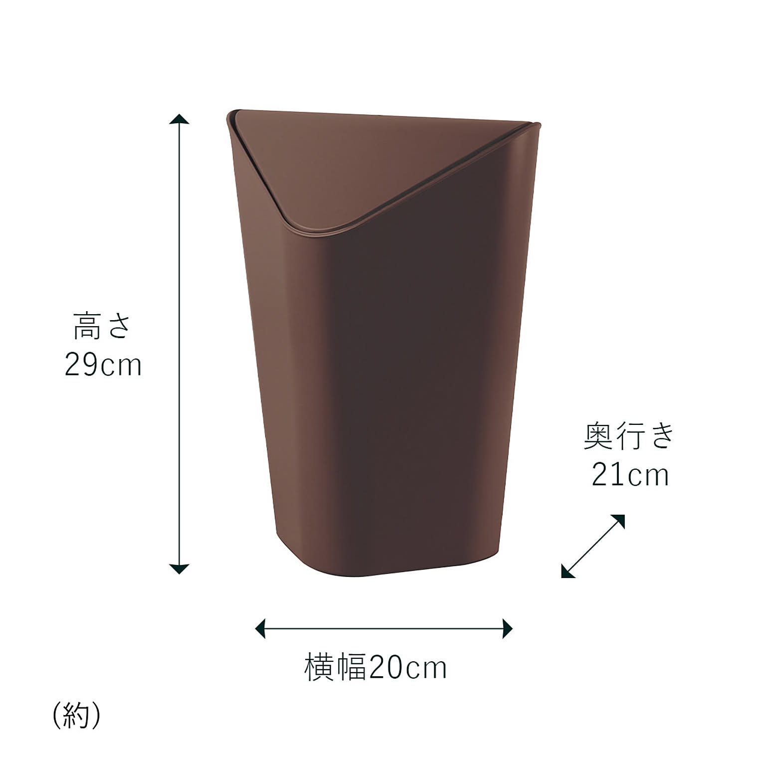 その名の通り、お部屋の角にぴったりと収まるゴミ箱。スイングタイプの蓋とゴミ袋の留め具が付属しており、中身やゴミ袋が見えることなく、お部屋をすっきりと見せることができます。
