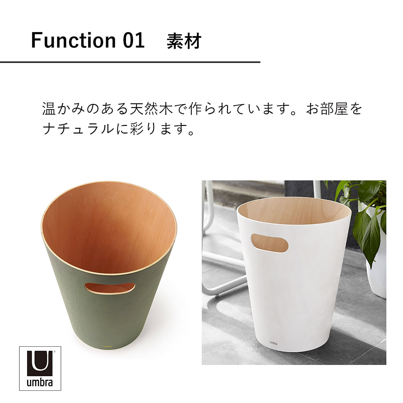 Umbra アンブラ WOODROW CAN ウッドロウカン ゴミ箱 トラッシュカン ダストボックス 天然木 インテリア