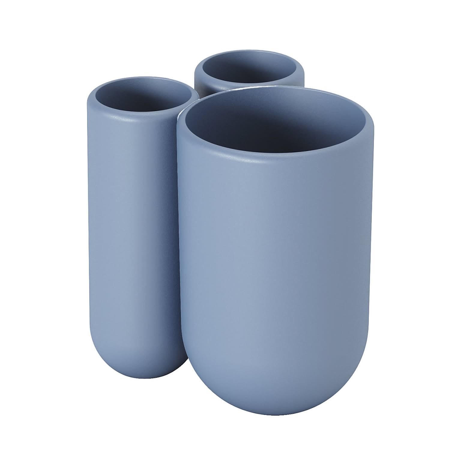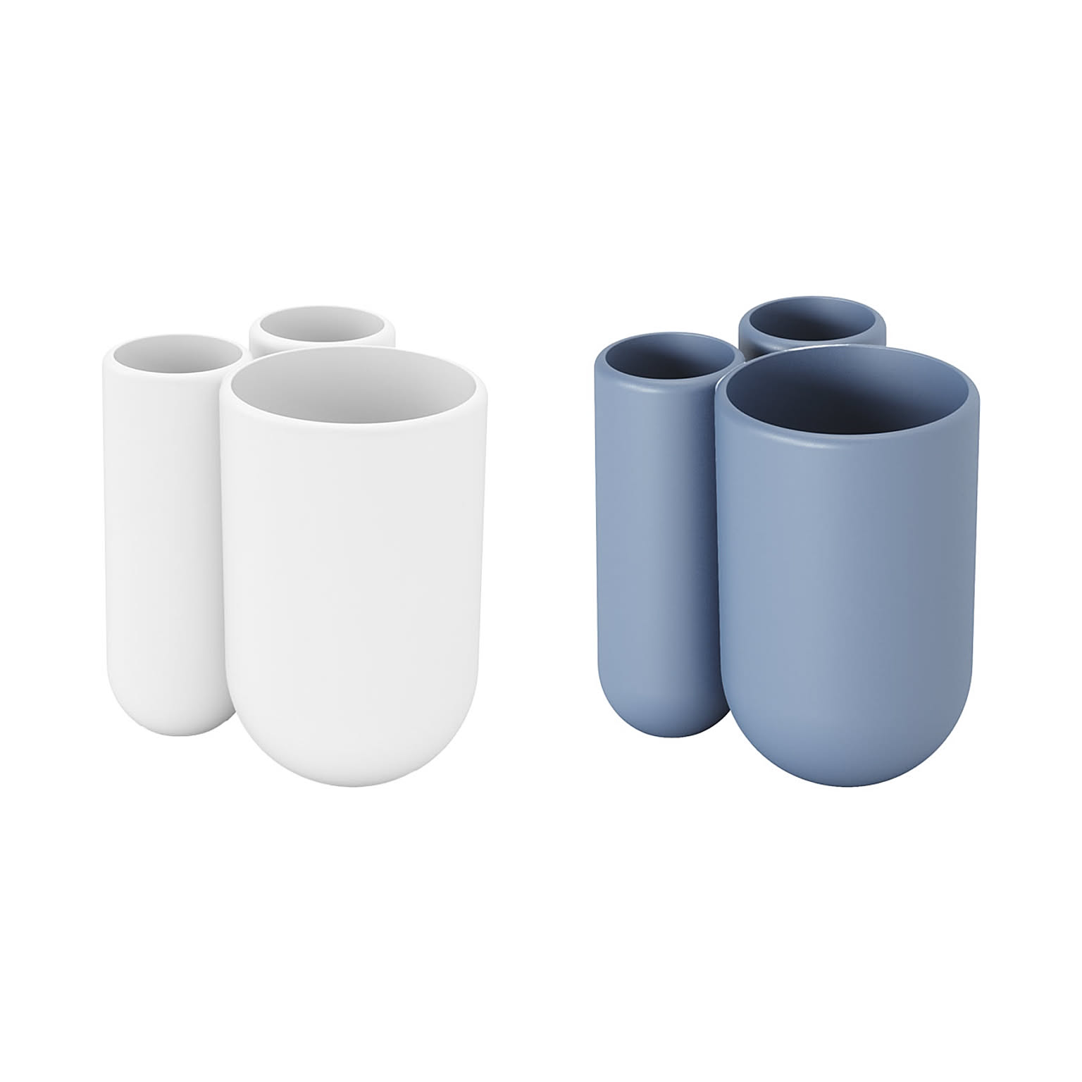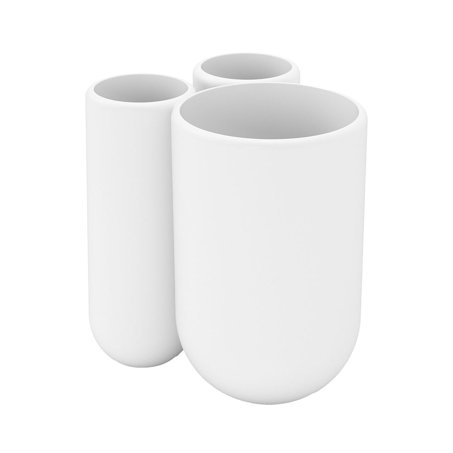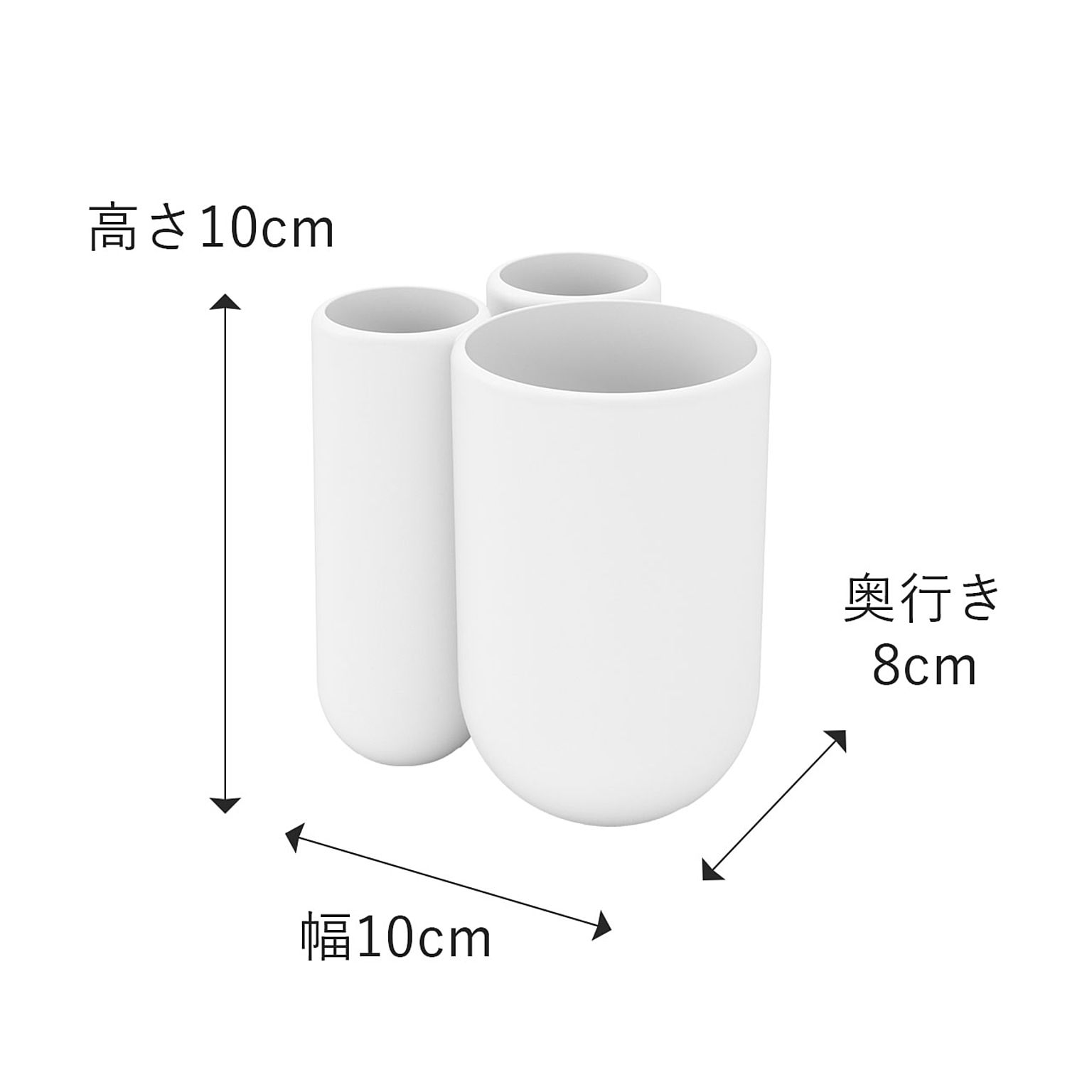 大きさの違う3つのカップを組み合わせたような歯ブラシホルダー。歯ブラシと歯磨き粉の収納にぴったりのサイズ。なめらかなマットな質感は高級感があります。耐久性が高く、お手入れがしやすいポリプロピレン製。