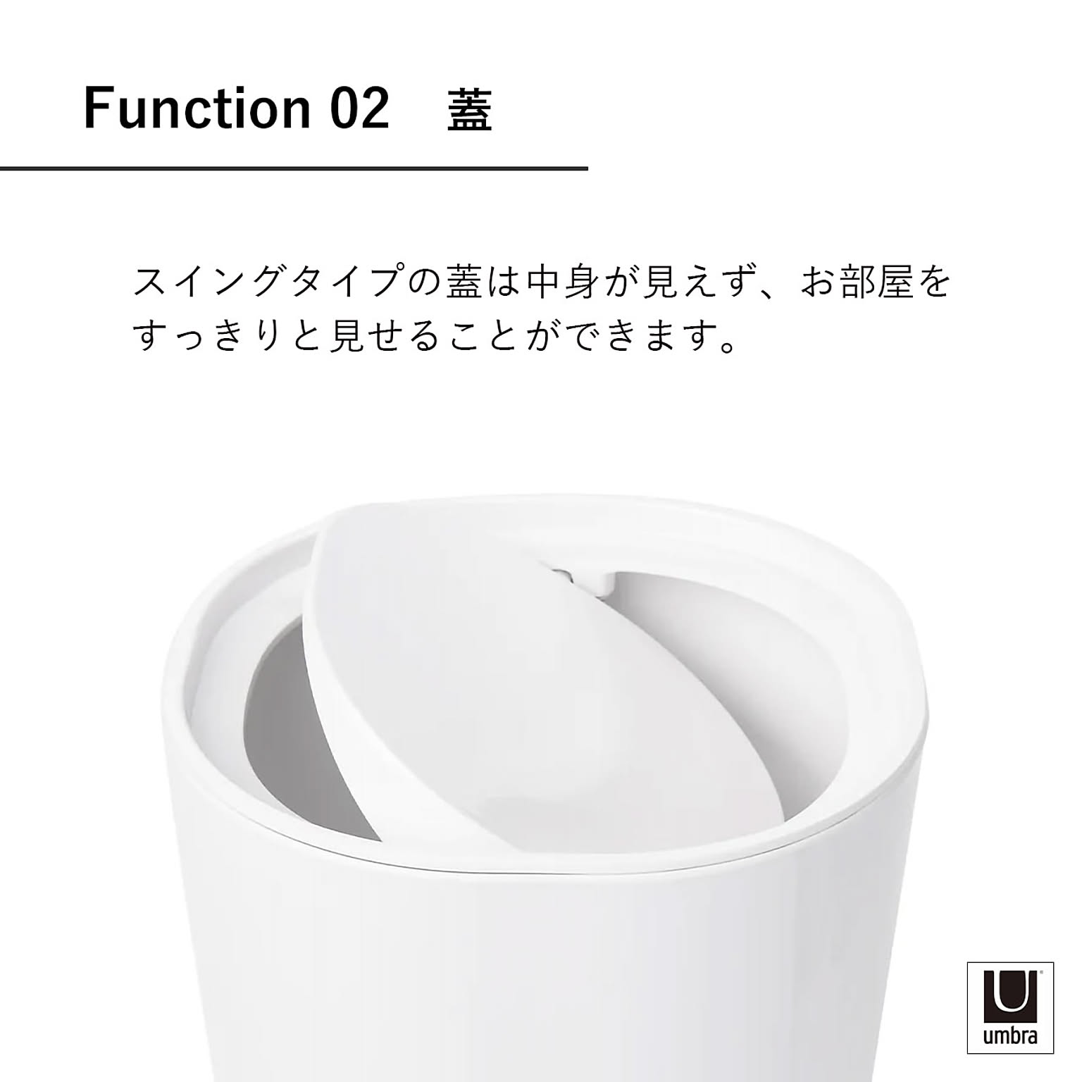 爽やかなホワイトカラーがスタイリッシュなダストボックス。スイングタイプの蓋付きで中身が見えず、お部屋をすっきりと見せることができます。