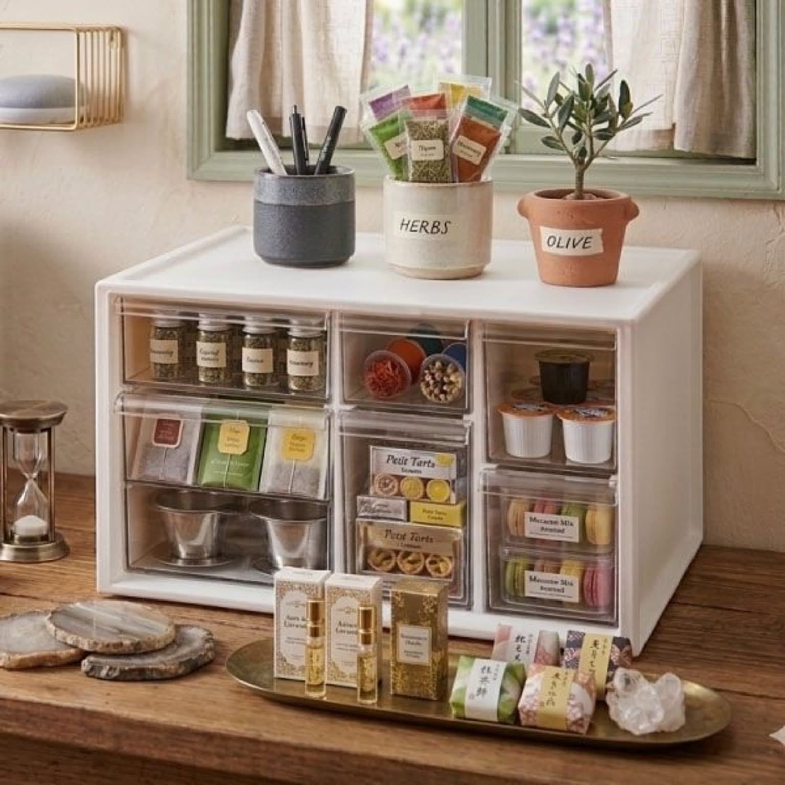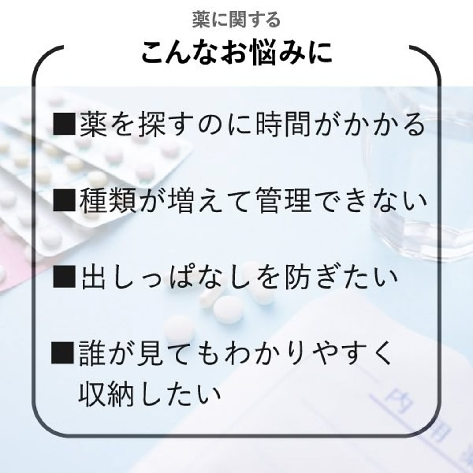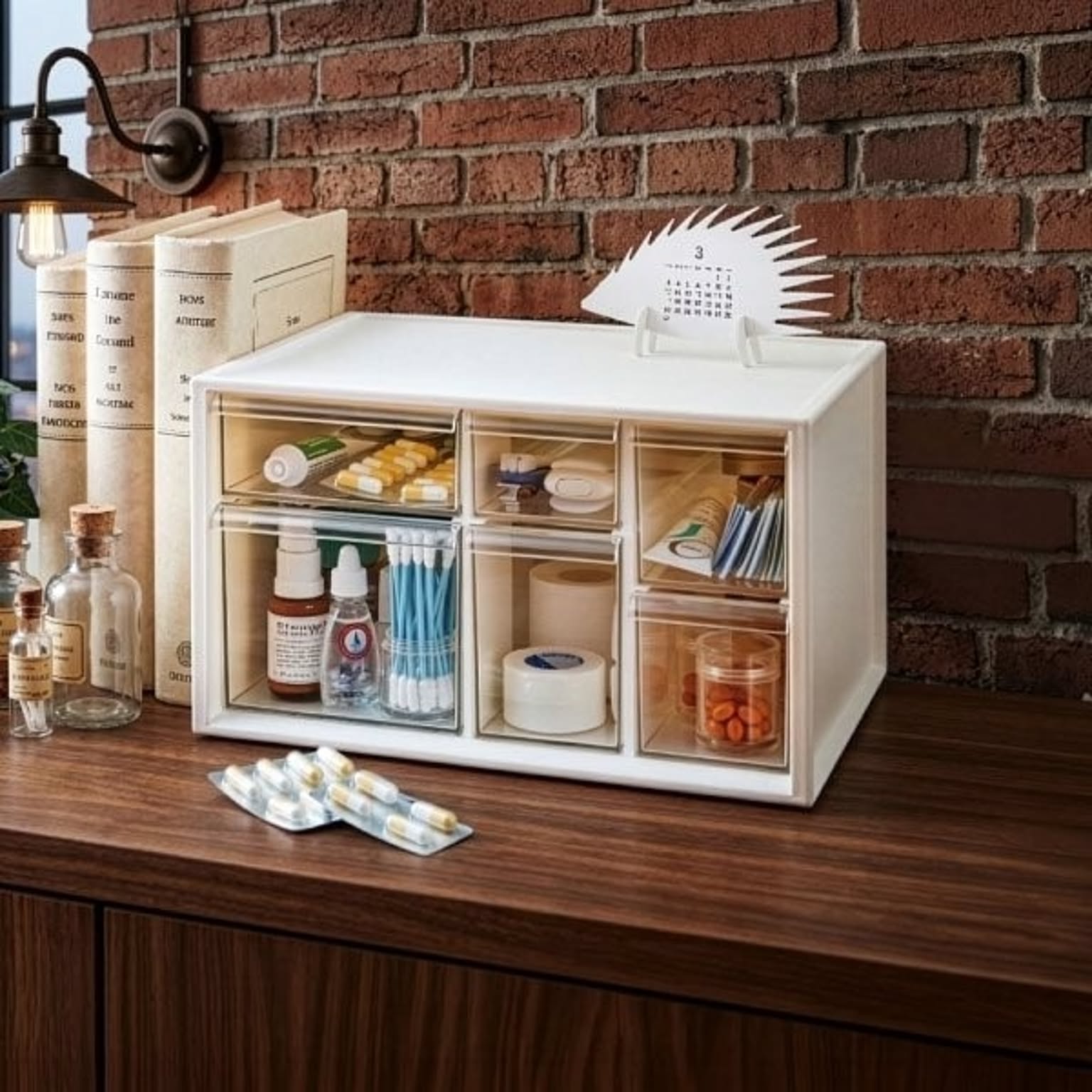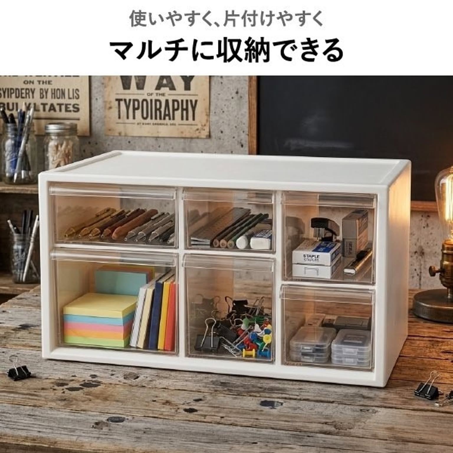 バラバラになりがちな薬やサプリを、すっきり整理整頓できるおしゃれなお薬ケースです。このお薬ケースは6つの引き出しで種類ごとに細かく仕分けができるため、家族の常備薬をこれ一つにまとめて整理できます。透明な引き出しは中身が一目で確認できるので、迷わずサッと取り出せます。薬やサプリの飲み忘れ防止やストック切れにも役立つ機能的なお薬ケース。リビングやキッチンに置いてもお部屋の雰囲気を壊さないおしゃれなデザインのお薬ケースは、生活感が出すぎず、空間をすっきりと見せてくれます。さらに、このお薬ケースは細々とした小物をスマートに片付けることができるマルチな収納としても大活躍。キッチン用品や文房具など散らかりがちな物もおしゃれに片付き、暮らしをより快適に整えることができます。