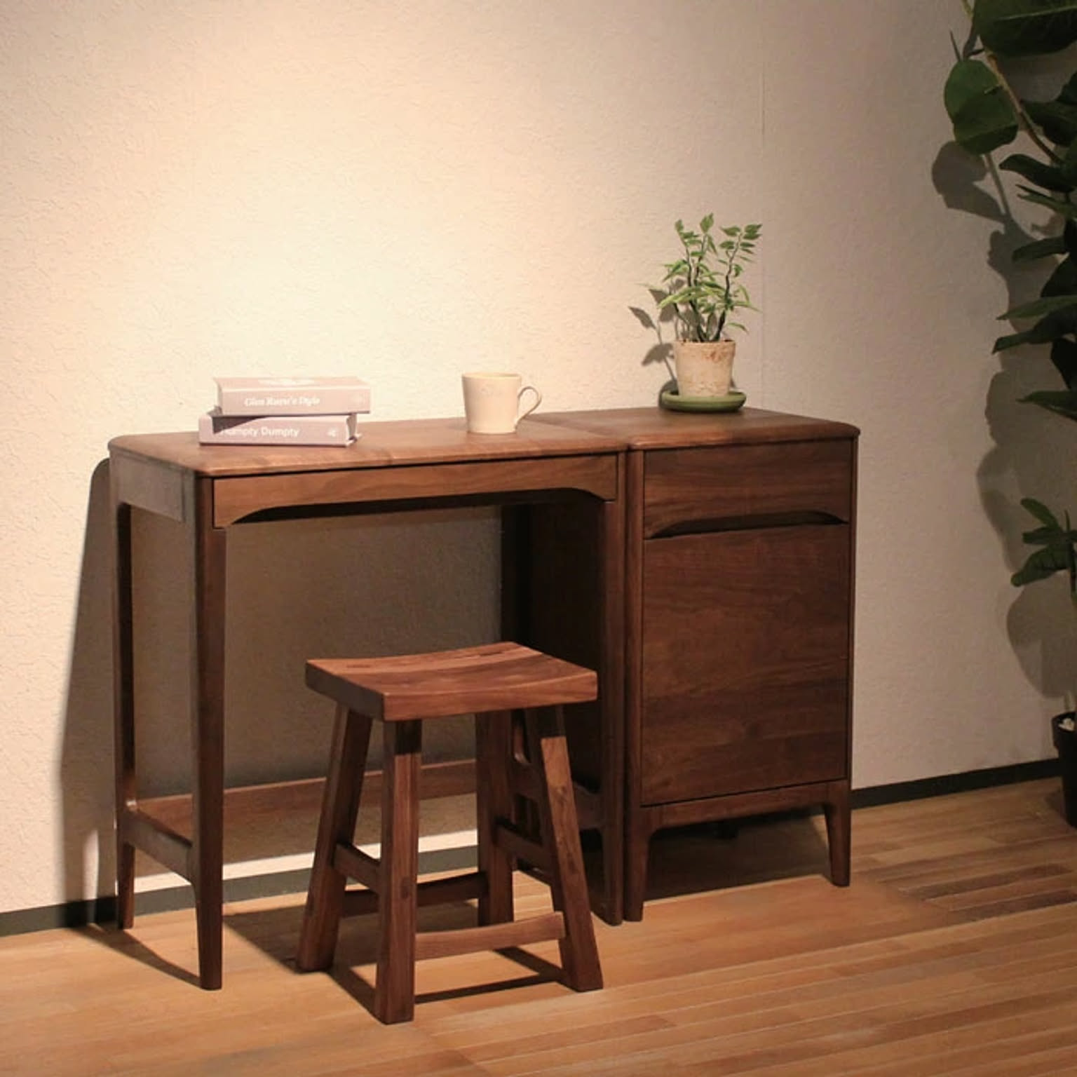 ★扉内にはA4ファイルが縦に収納できる、デスクワゴン。オークとウォールナットから。★ プチデスクと合わせて使えば、 省スペースの実用的なデスクに早変わり! 高級感のある雰囲気になります。 落ち着いた雰囲気で高級感のあるウォールナット。 ホテルライクなスタイルが作れそうです。 曲面で構成される天板は、適度にエッジを利かせた立体的なデザイン。 特徴のある細身の脚のデザインは、お部屋をよりスタイリッシュに演出してくれます。