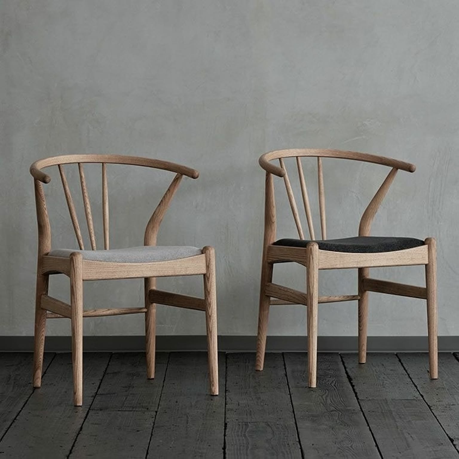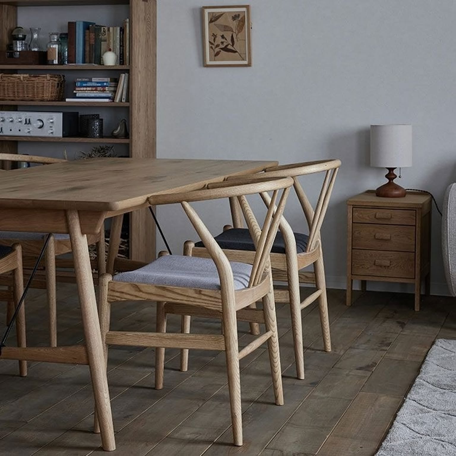 美しい曲線とオーク無垢の背のスポークが素敵なダイニングチェア。