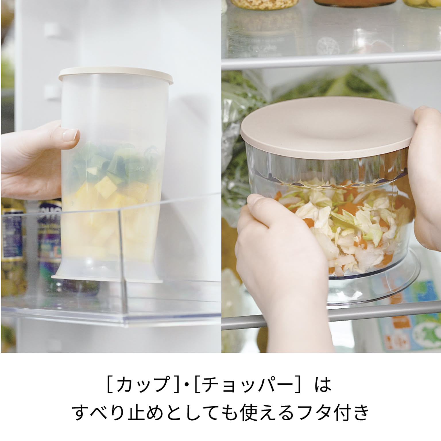 [カップ]・[チョッパー]は、それぞれすべり止めにもなるフタ付きです。