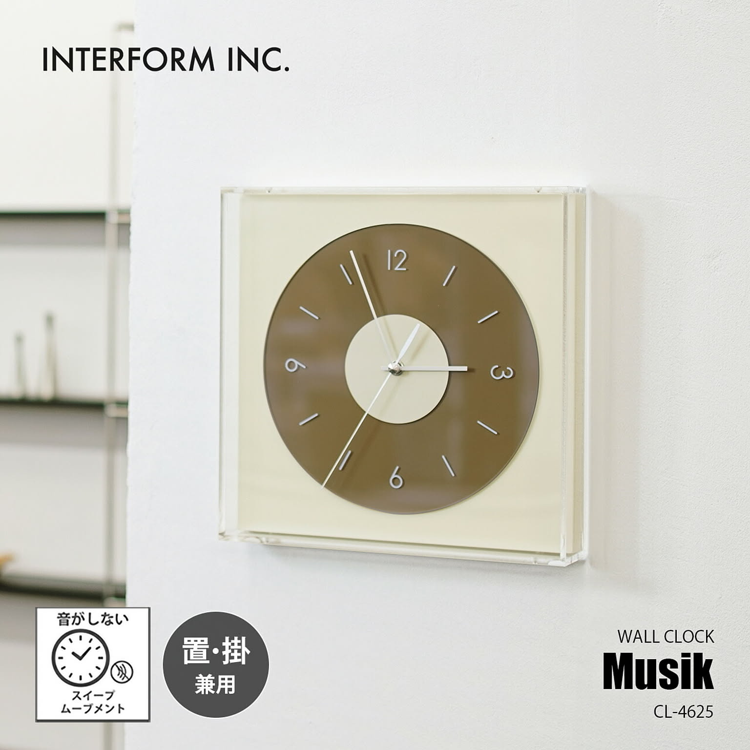 INTERFORM インターフォルム Musik ムジーク ウォールクロック (掛時計/置掛兼用) CL-4625 / 掛け時計 壁掛け時計 置き掛け兼用 スイープセコンド 音がしない 四角形