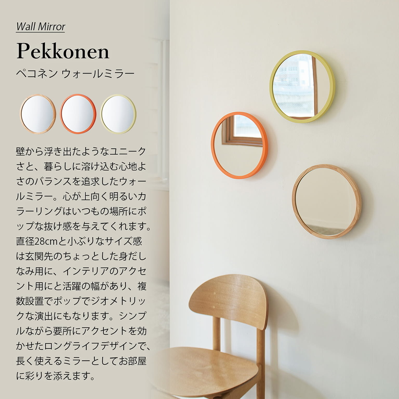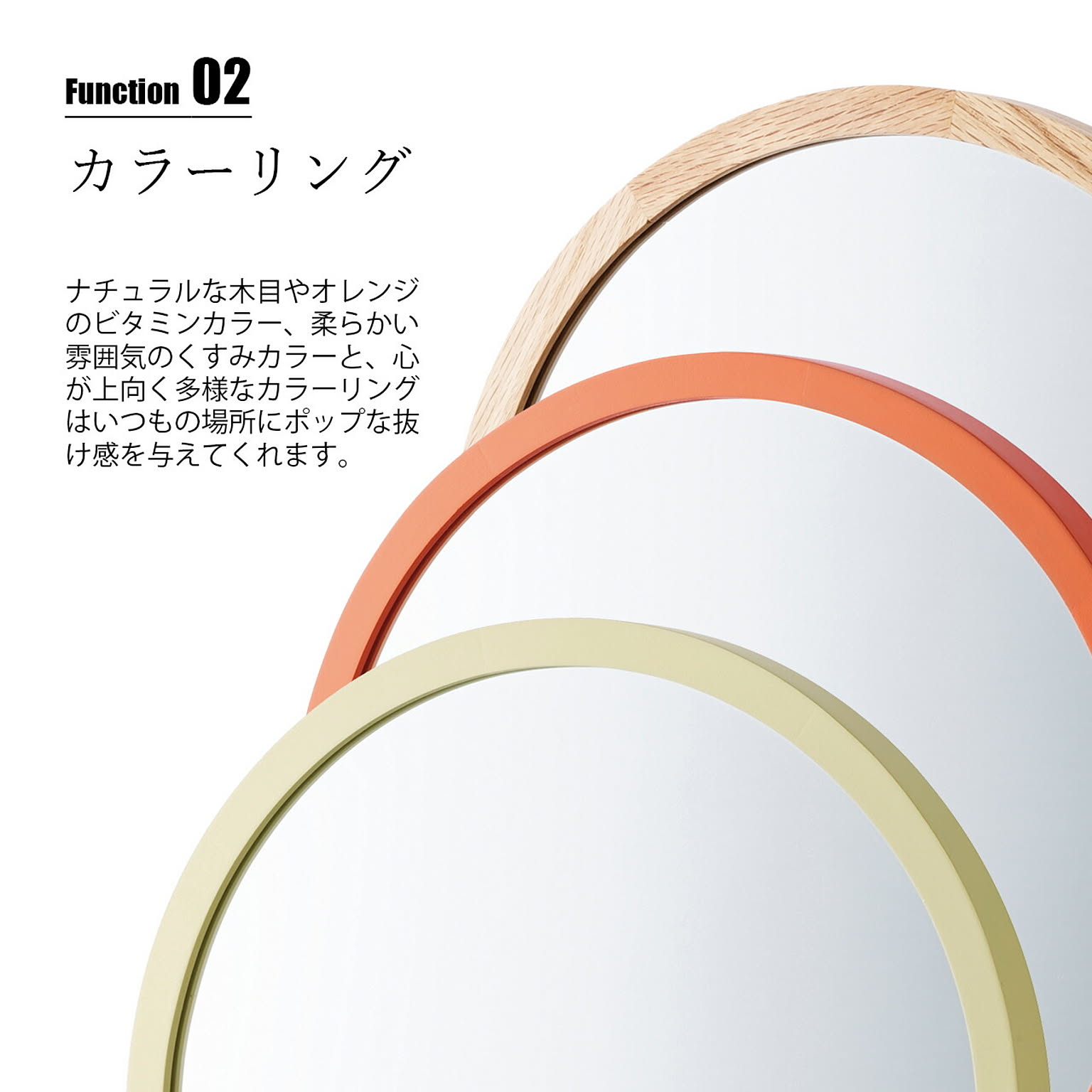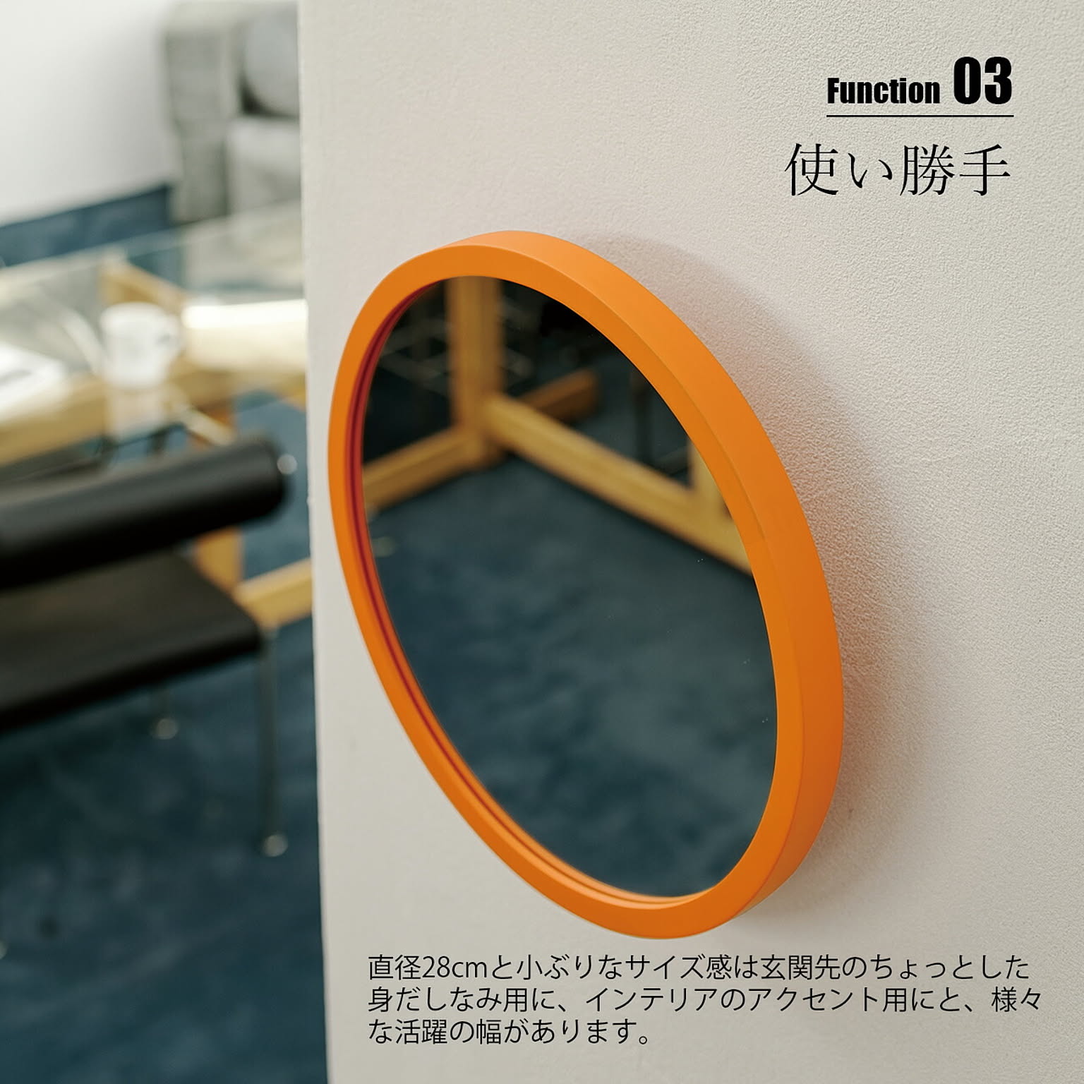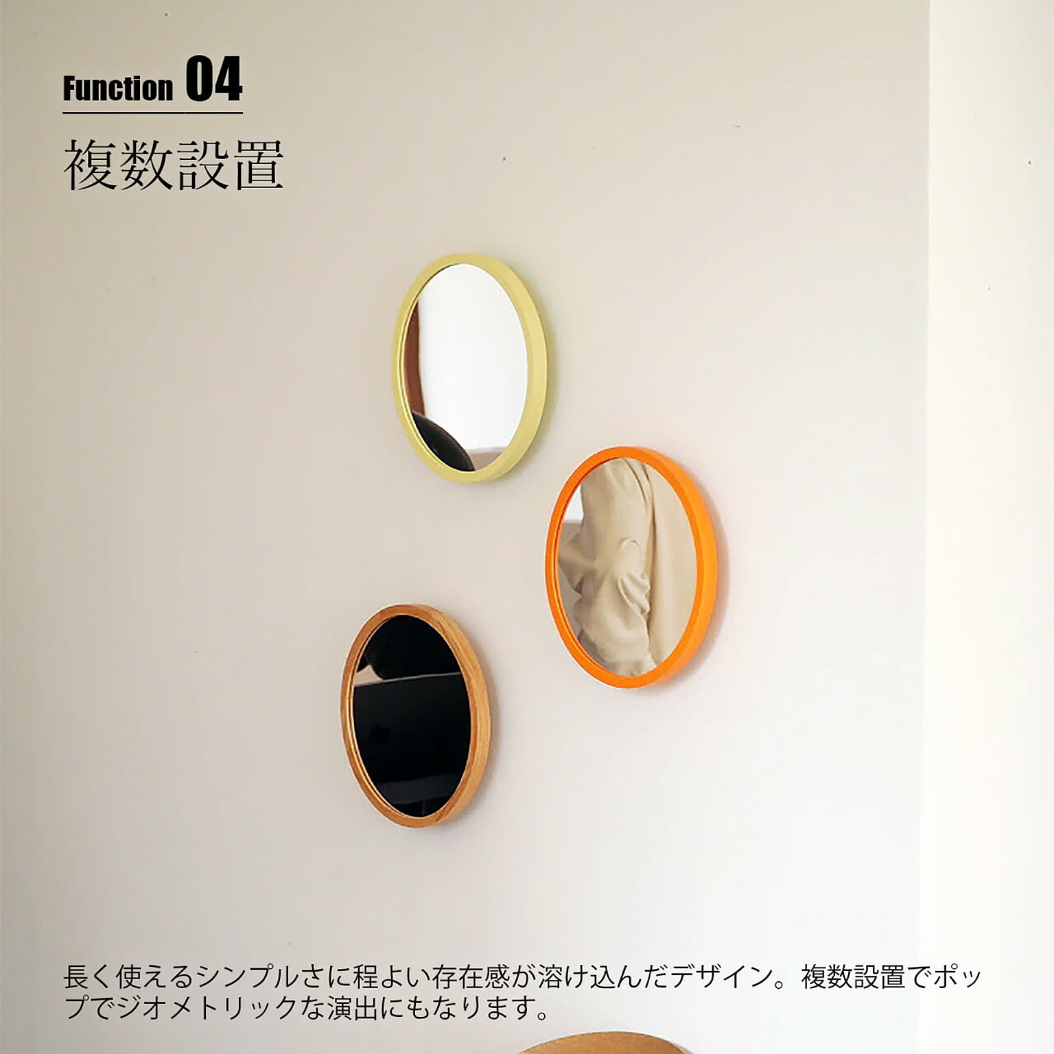 壁から浮き出たようなユニークさと、暮らしに溶け込む心地よさのバランスを追求したウォールミラー。心が上向く明るいカラーリングはいつもの場所にポップな抜け感を与えてくれます。直径28cmと小ぶりなサイズ感は玄関先のちょっとした身だしなみ用に、インテリアのアクセント用にと活躍の幅があり、複数設置でポップでジオメトリックな演出にもなります。シンプルながら要所にアクセントを効かせたロングライフデザインで、長く使えるミラーとしてお部屋に彩りを添えます。