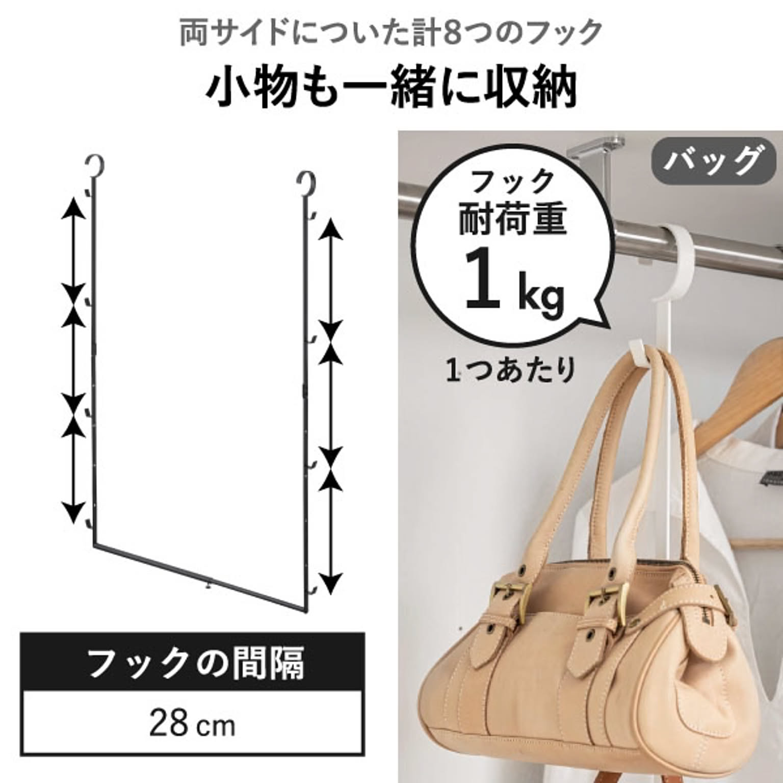 フック1つあたり:約1kg