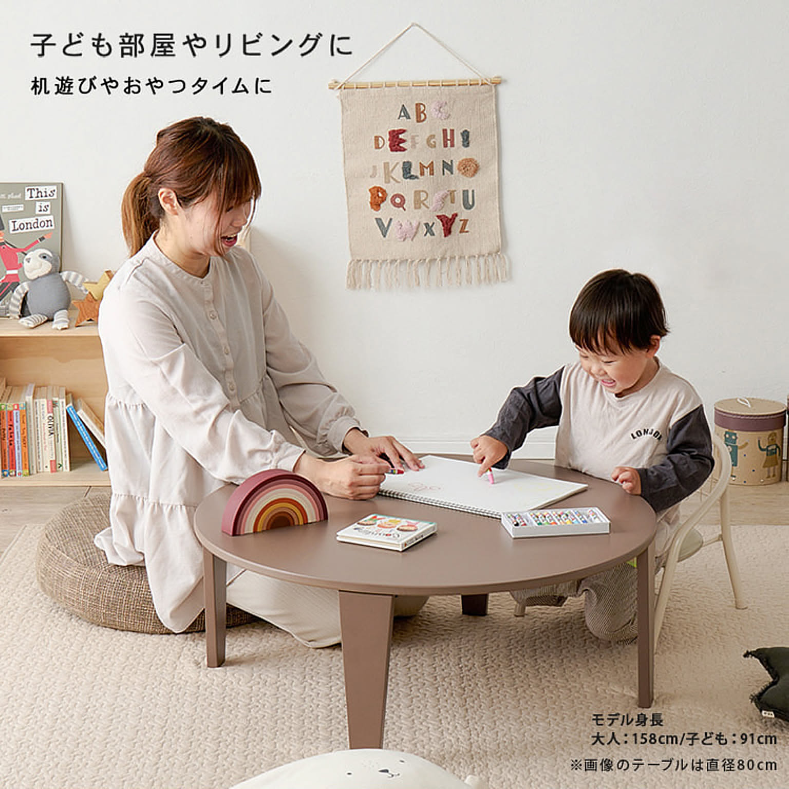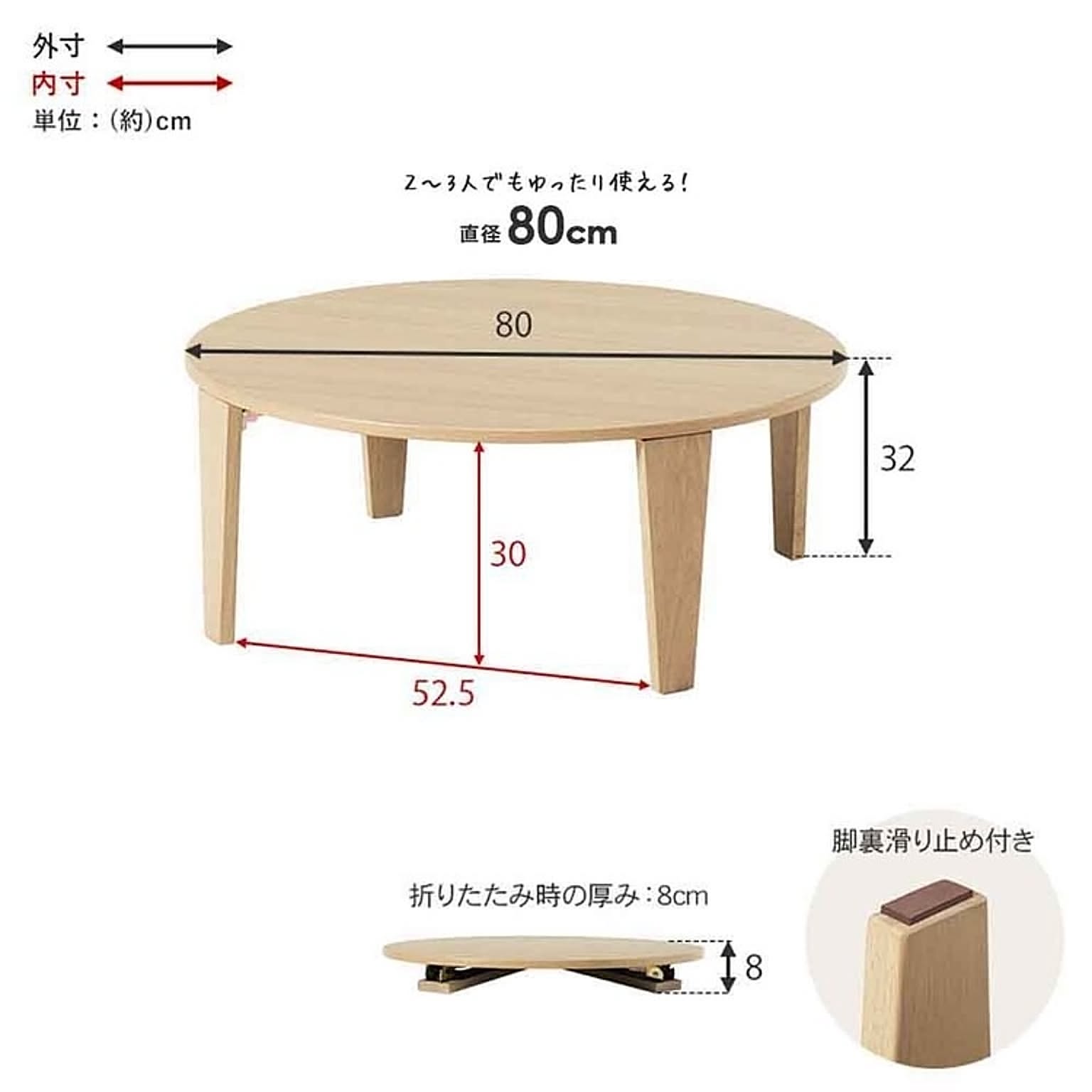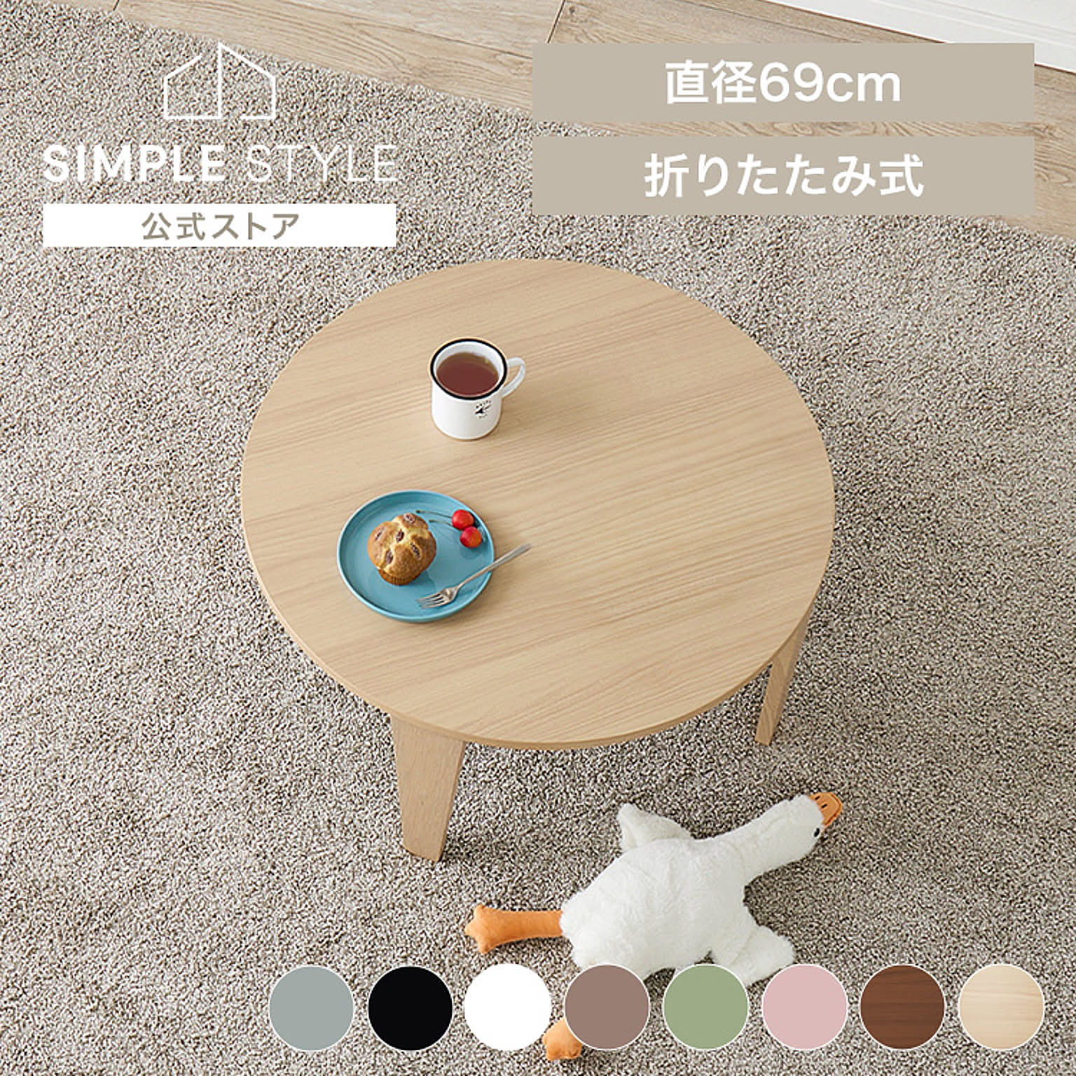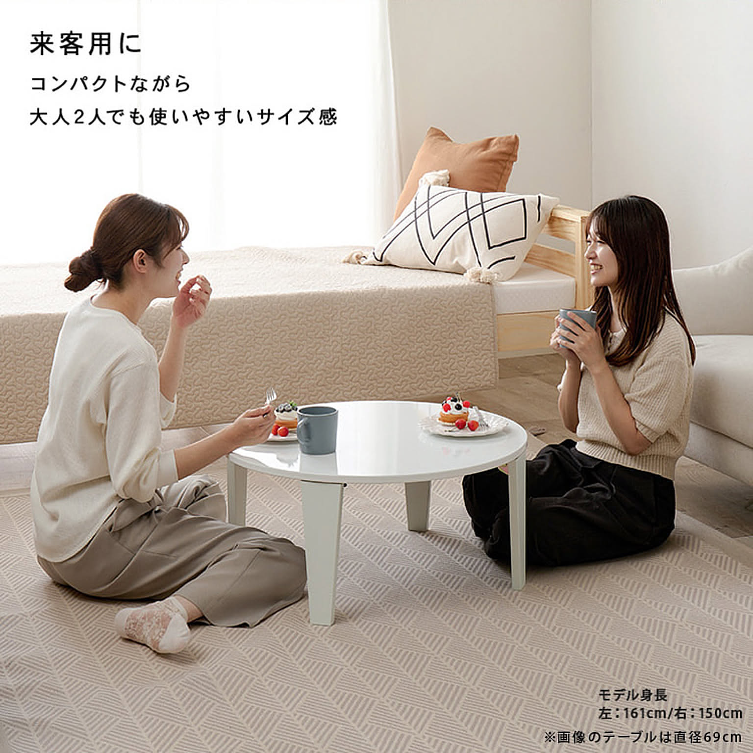 くすみカラーやモノトーンカラーが選べ、コンパクトサイズでワンルームや1人部屋にぴったりな円形テーブル。 省スペース収納可能な折れ脚タイプ。 ※こちらの商品はお取り寄せ商品のため、初期不良以外の返品・交換は承れませんので、あらかじめご了承ください。 ●商品サイズ(cm) 幅約69×奥行約69×高さ約32 ●商品重量 約7kg ●主材 繊維板