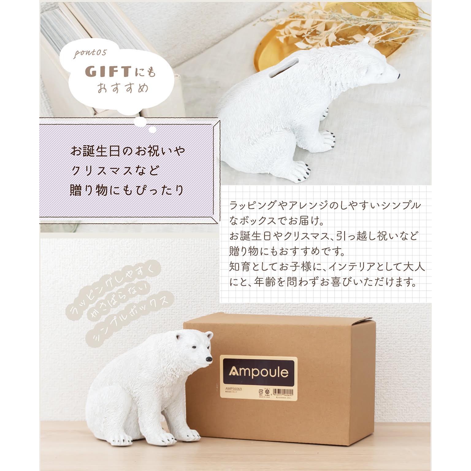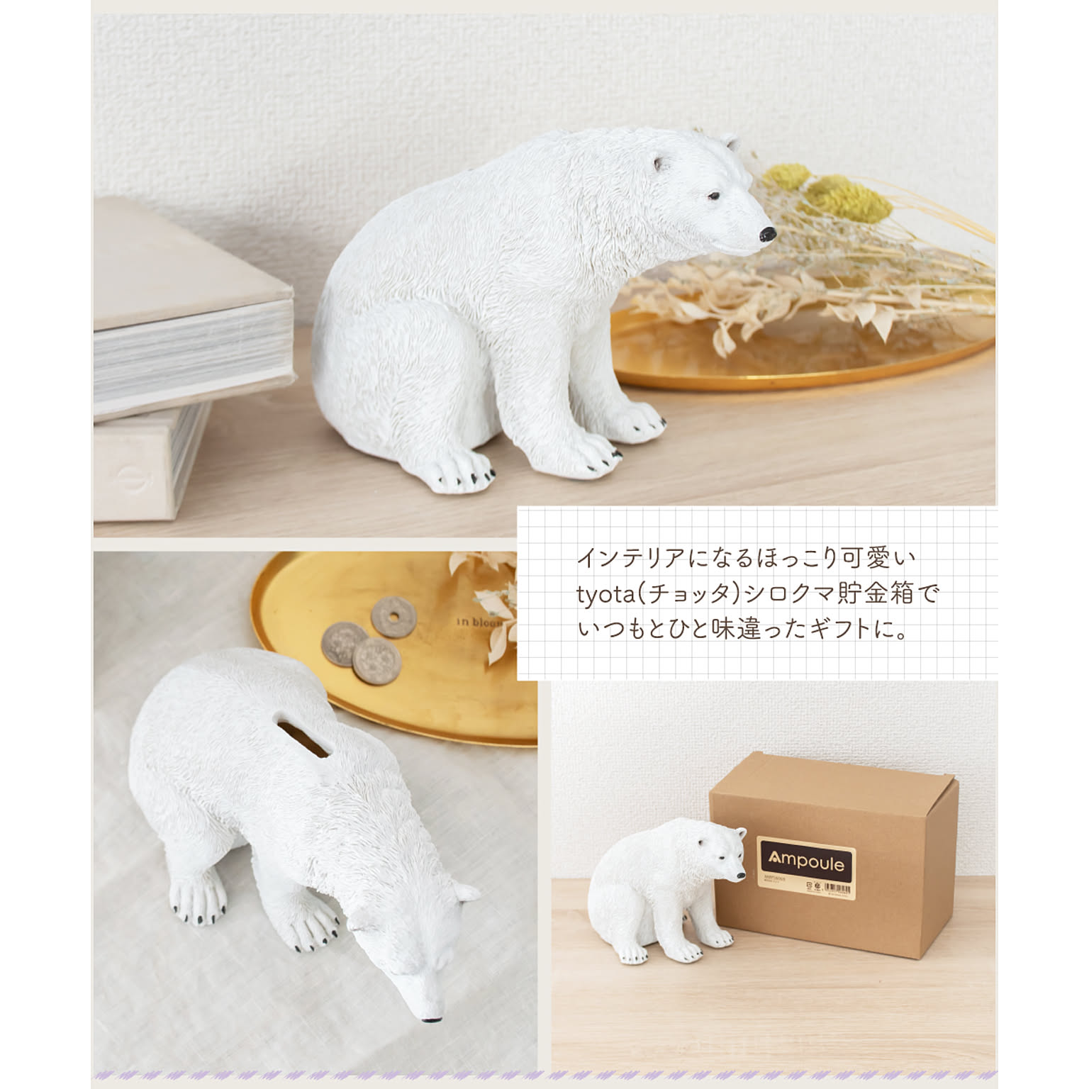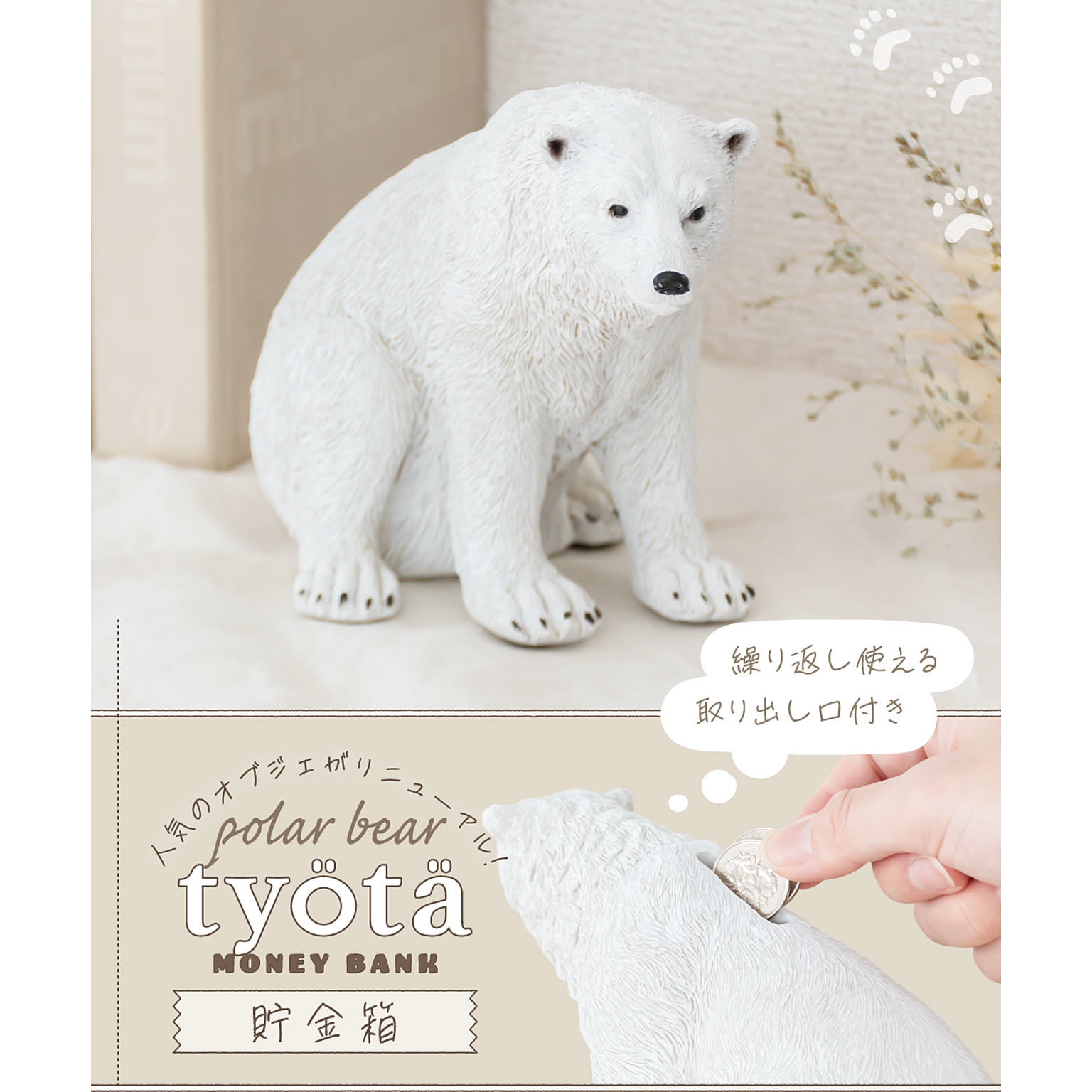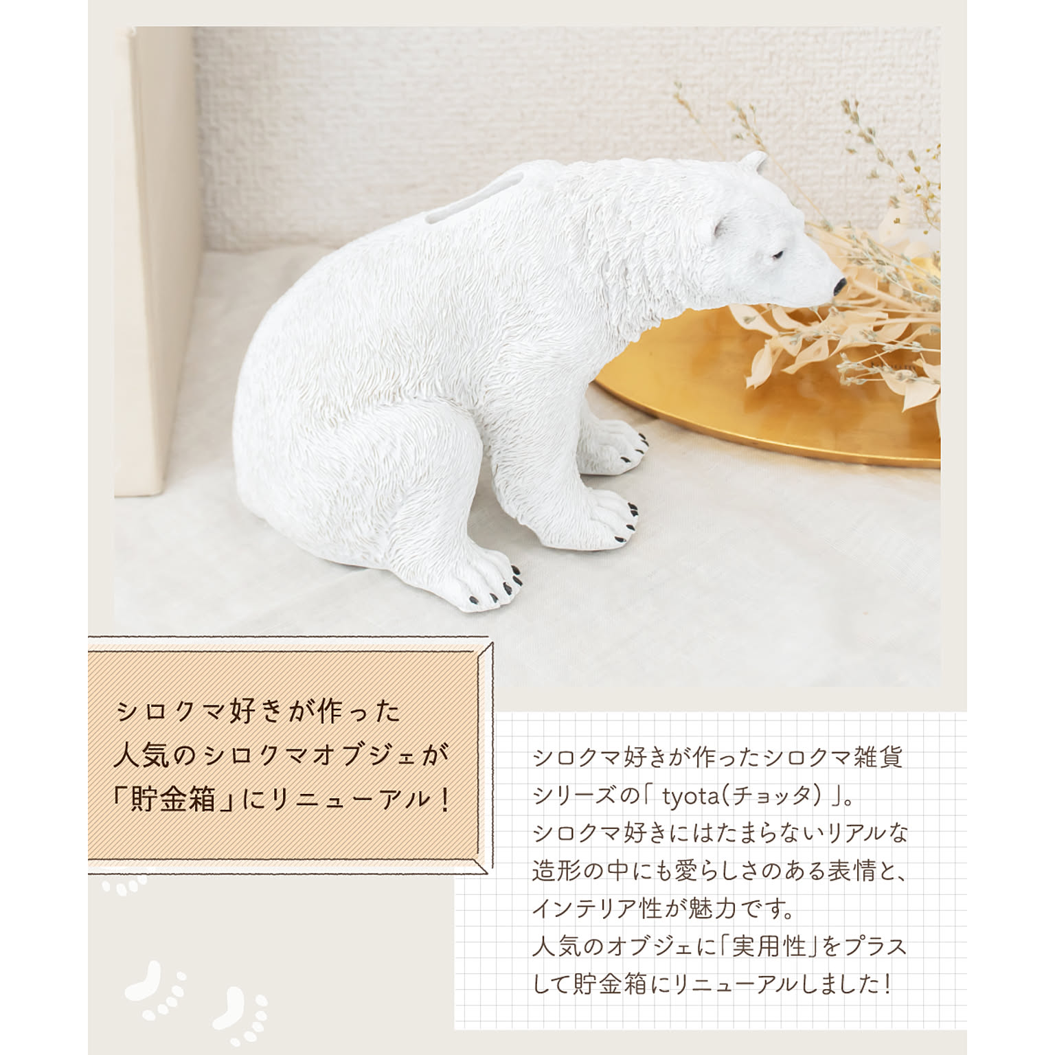 人気のシロクマオブジェに実用性をプラスして「貯金箱」にリニューアルしました!