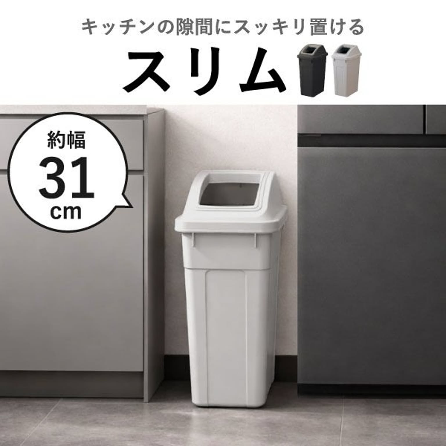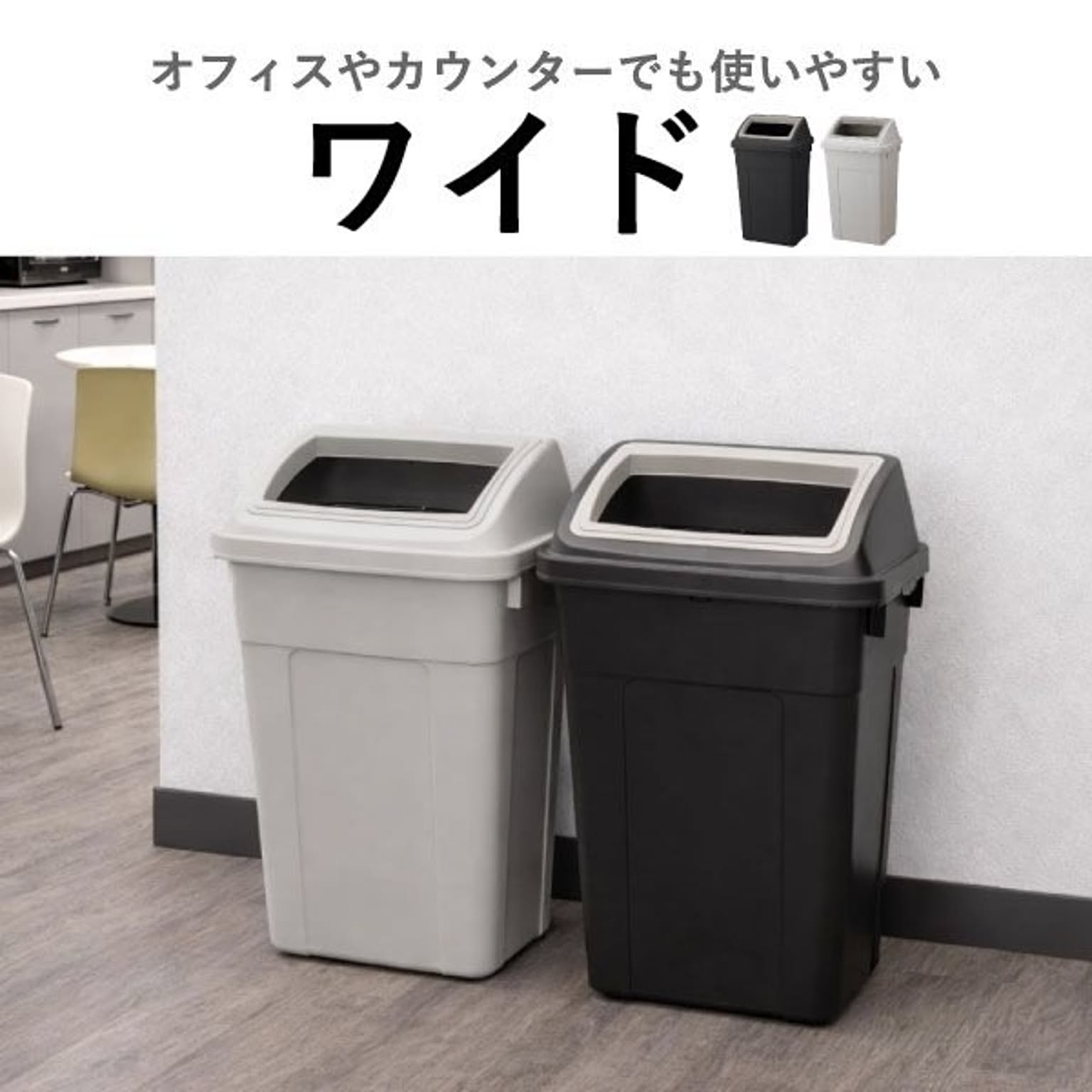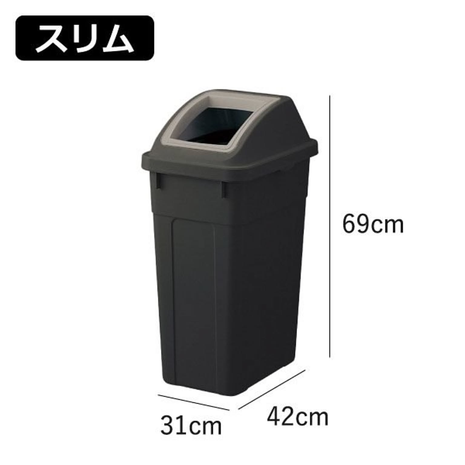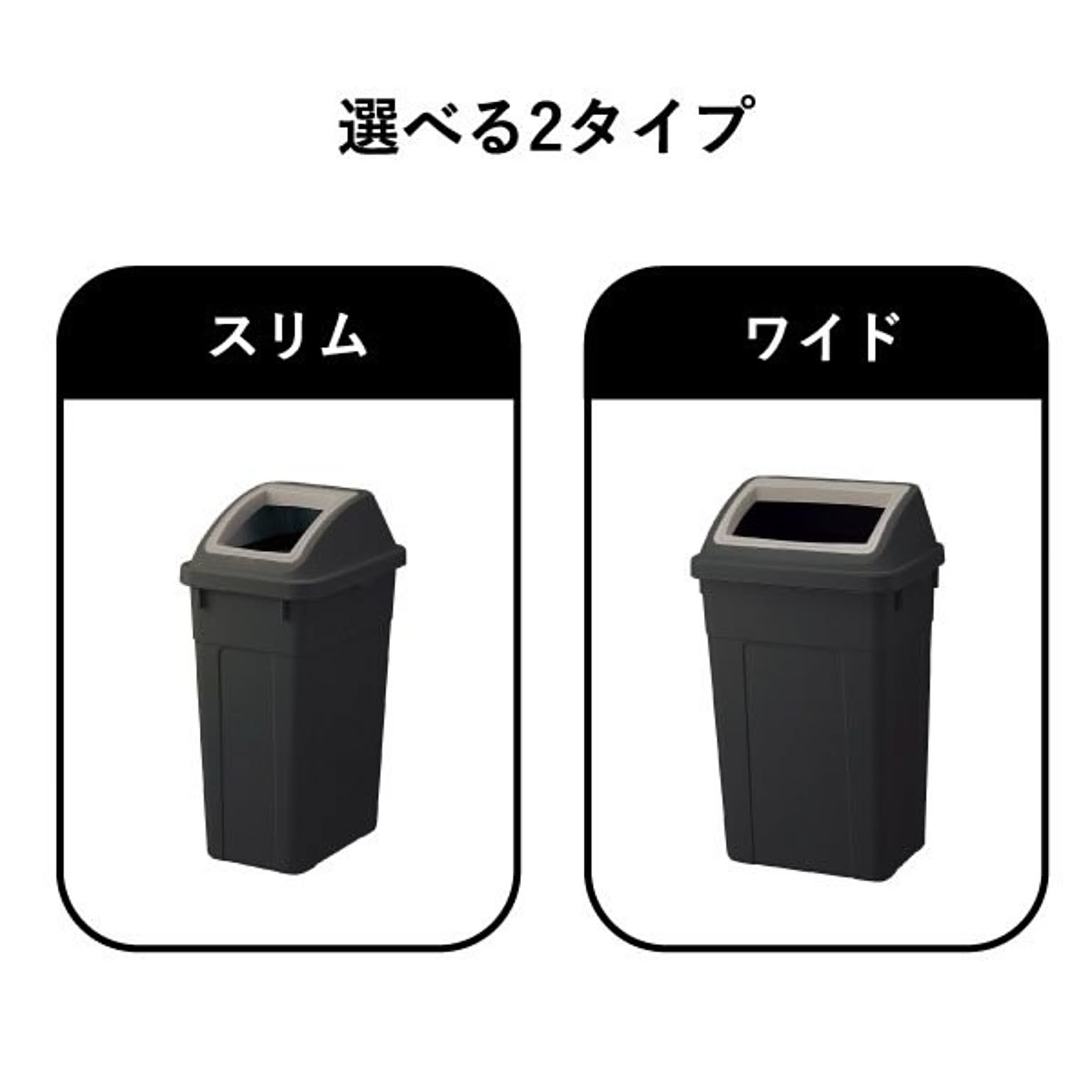 おしゃれで落ち着いたカラーが魅力の45リットルゴミ袋対応の分別ゴミ箱。シンプルで無駄のないデザインのゴミ箱は、キッチンやリビングのインテリアにも自然に馴染みます。45リットルゴミ袋対応のゴミ箱は、たっぷり捨てられて見た目もスマートな使いやすい仕様です。広い開口部のゴミ箱で、大きなゴミも片手でサッと捨てられます。キッチンでの調理中でもストレスなく使えます。設置場所に合わせて「スリム」・「ワイド」の2タイプからお選びいただけます。スリムタイプのゴミ箱はキッチンの隙間に置きやすいコンパクト設計で、調理中でも手軽にゴミを捨てられます。ワイドタイプは、ゴミをたっぷり入れても倒れにくく安定感抜群。キッチンやオフィスでも使いやすいゴミ箱です。45Lゴミ袋対応のゴミ箱は、複数並べても圧迫感のないすっきりとしたフォルムで、キッチンの分別用ゴミ箱としてもおすすめです。また、分別シール付きのゴミ箱なので、キッチンでの分別もスムーズ。袋止め付きでズレを防げるゴミ箱は、袋が外から見えにくく、すっきりとした見た目を保てます。45Lゴミ袋対応のゴミ箱は、市場回収リサイクルPP材を一部に使用し、資源を無駄なく活用しています。環境に配慮したサステナブルな素材です。