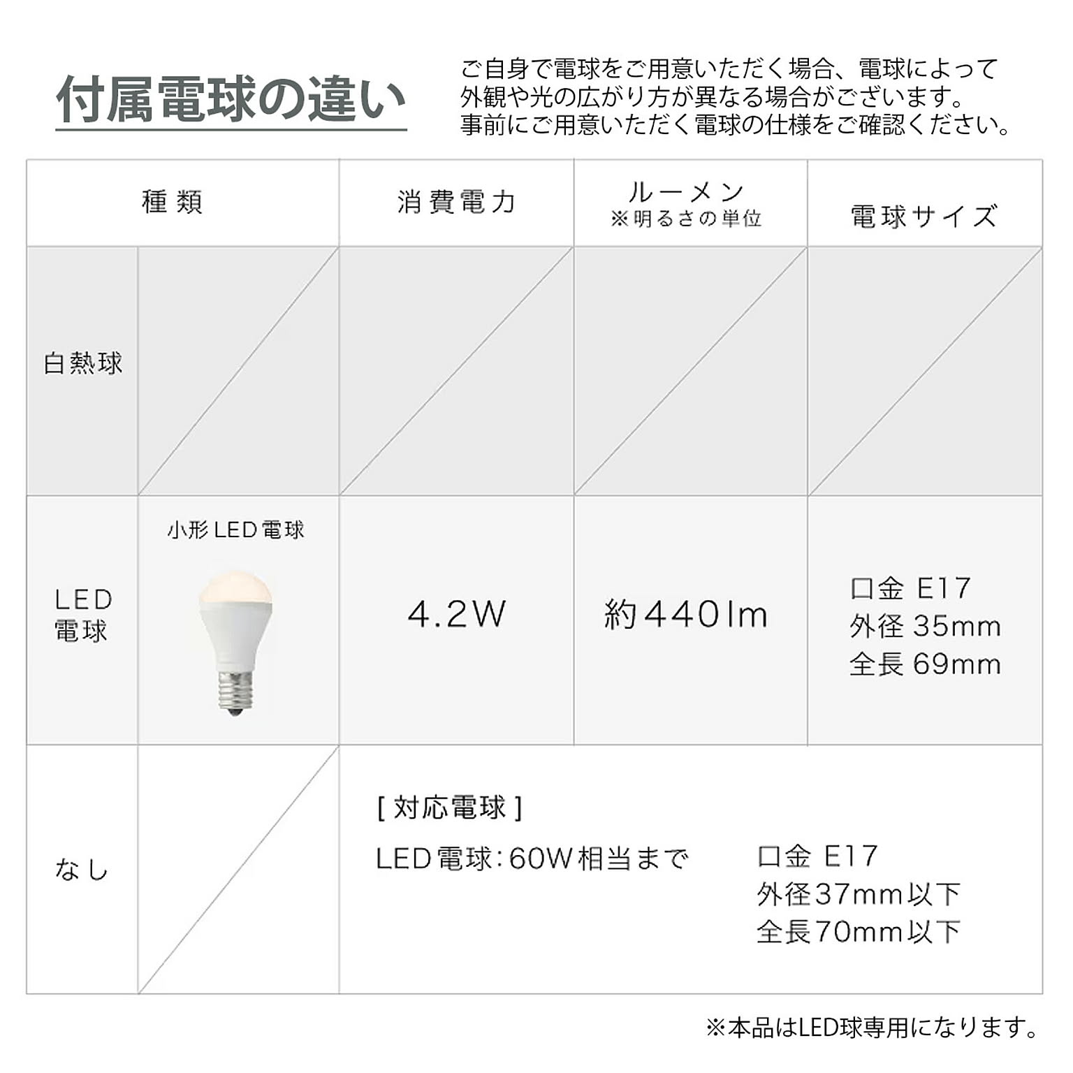 こちらの商品はLED電球専用です。