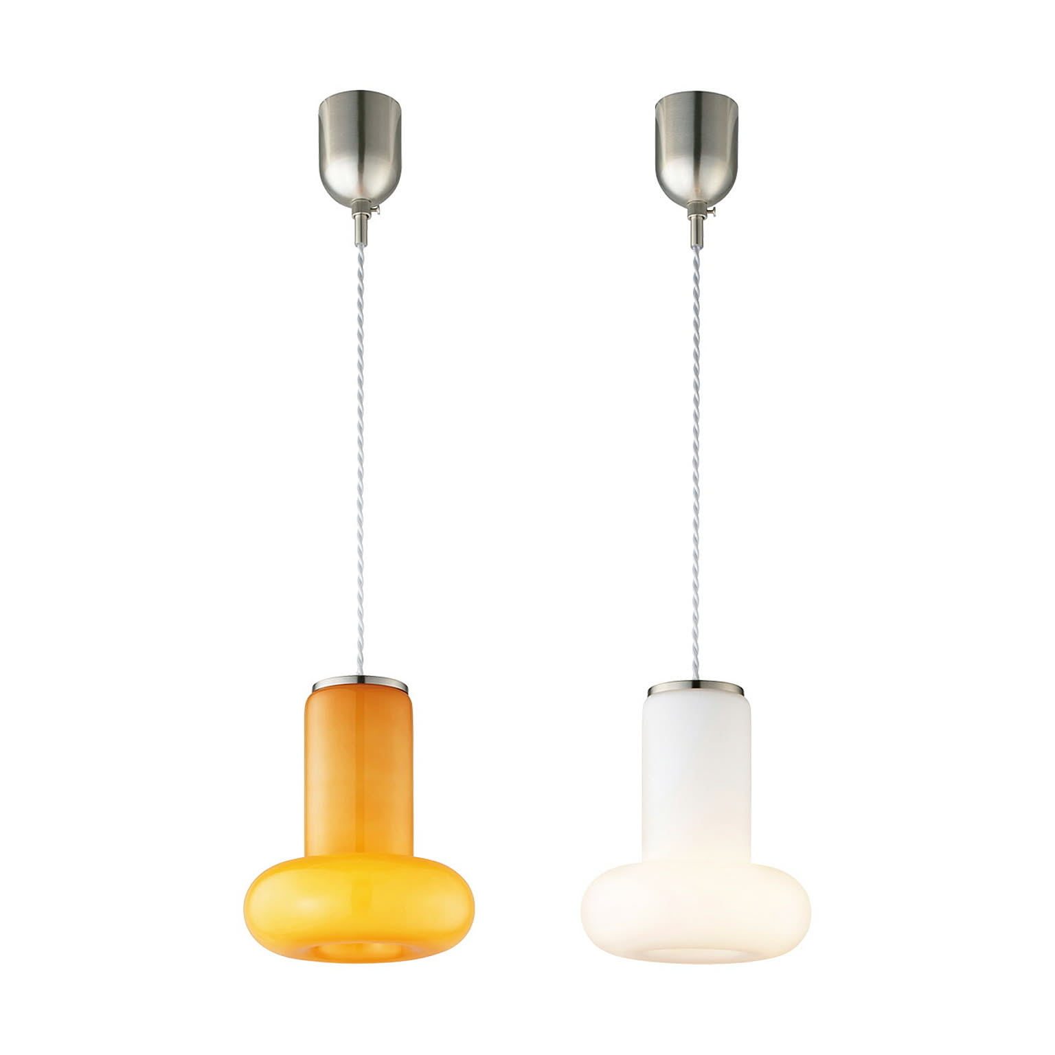 新しい季節の予感がするポップな色合いとゴールドの組み合わせに視線は釘付け!こだわりのパステルカラーで、華やかでデリシャスなフレーバーを取り入れて。まるでキャンディのようなシェードはホワイトガラスに艶のあるカラーリングを重ねたグロッシーな仕上がり。消灯時にはミルキーなカラーがより色鮮やかになり、点灯時と消灯時で異なる表情も、一日を通して空間を彩る存在感。ゴールド色のソケット部とレトロなツイストコードが相まって、一層インテリアが華やぎます。
