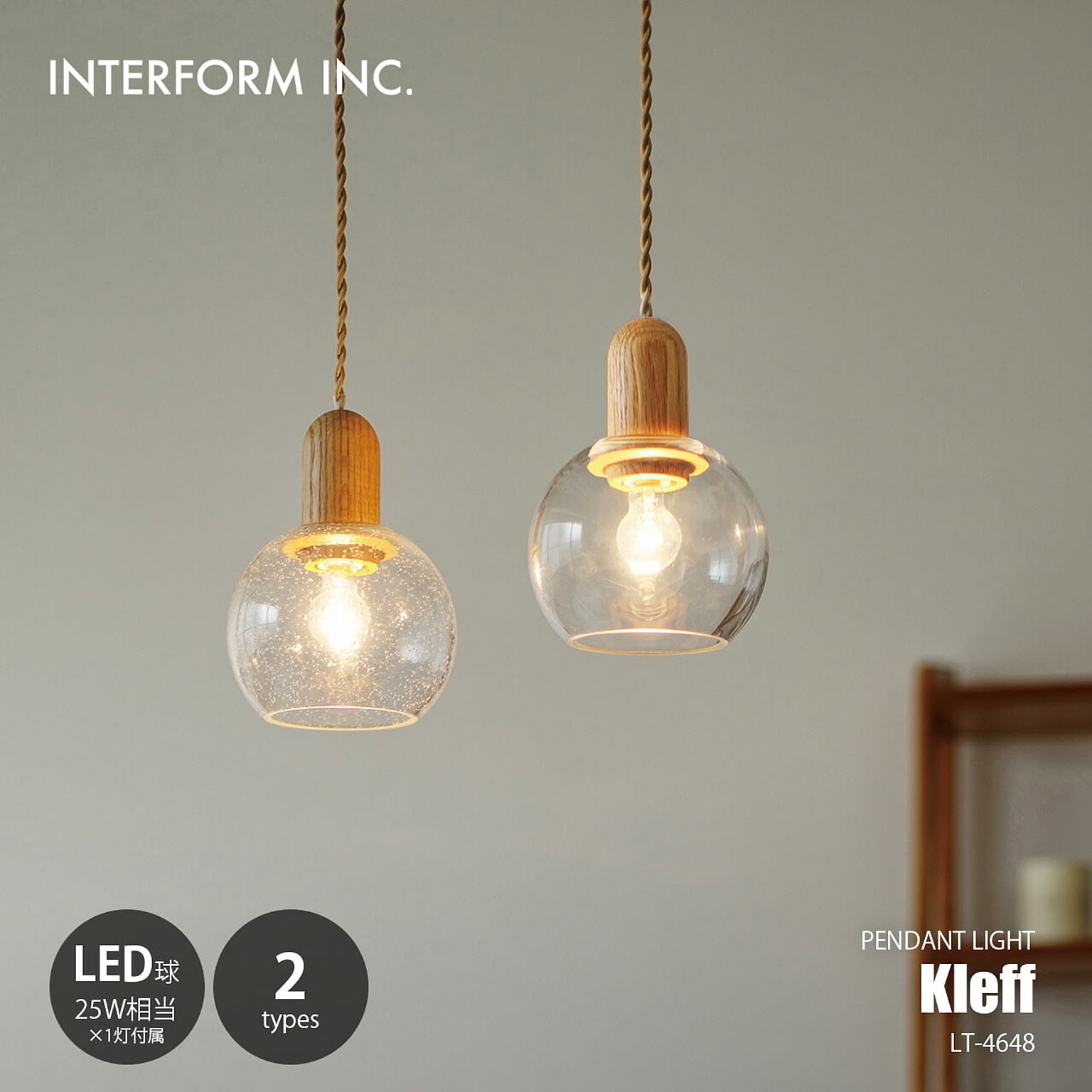 INTERFORM インターフォルム Kleff クレフ ペンダントライト (LED球付属) LT-4648 / ペンダントランプ 吊下げ照明 天井照明 白熱球球対応 E17 25W相当×1灯