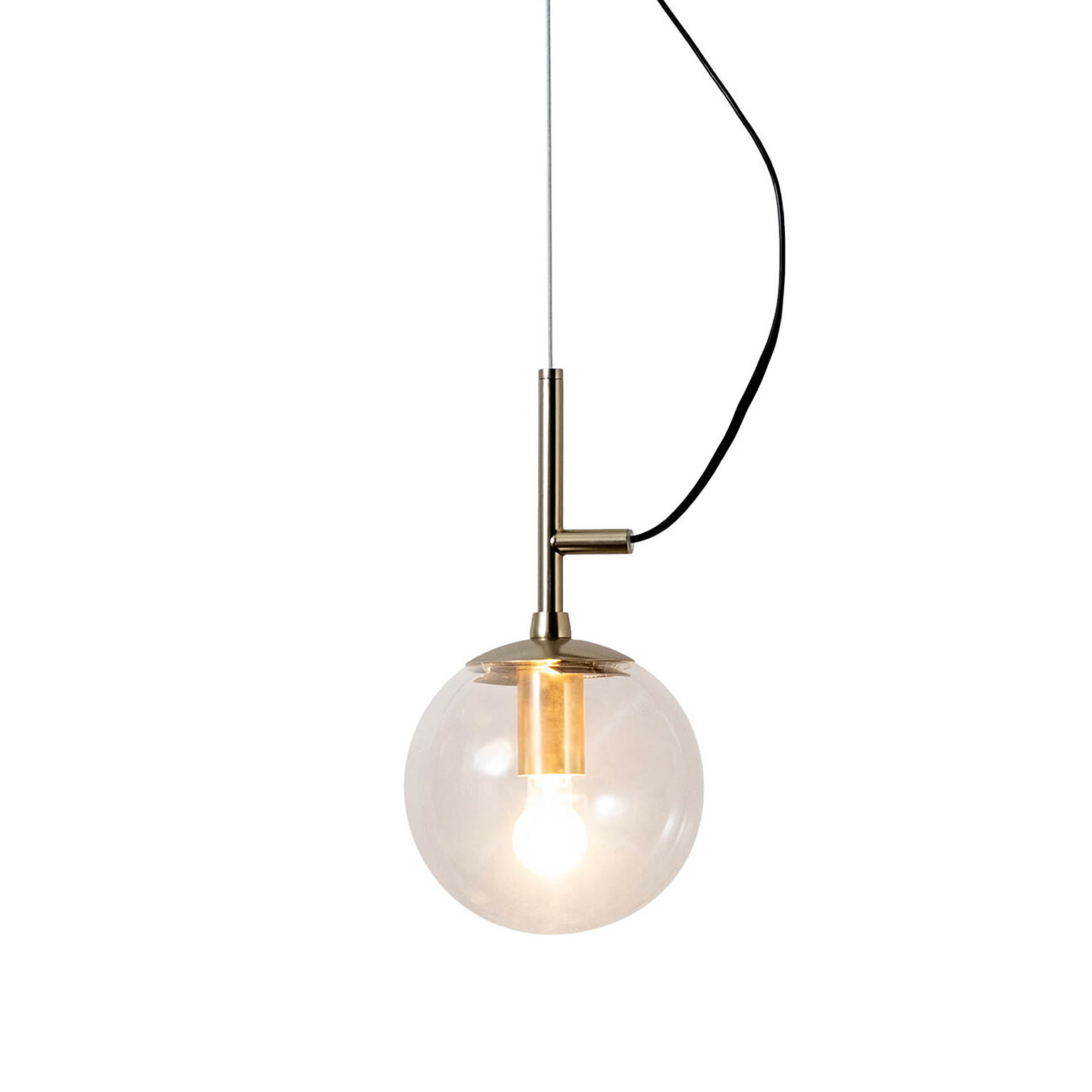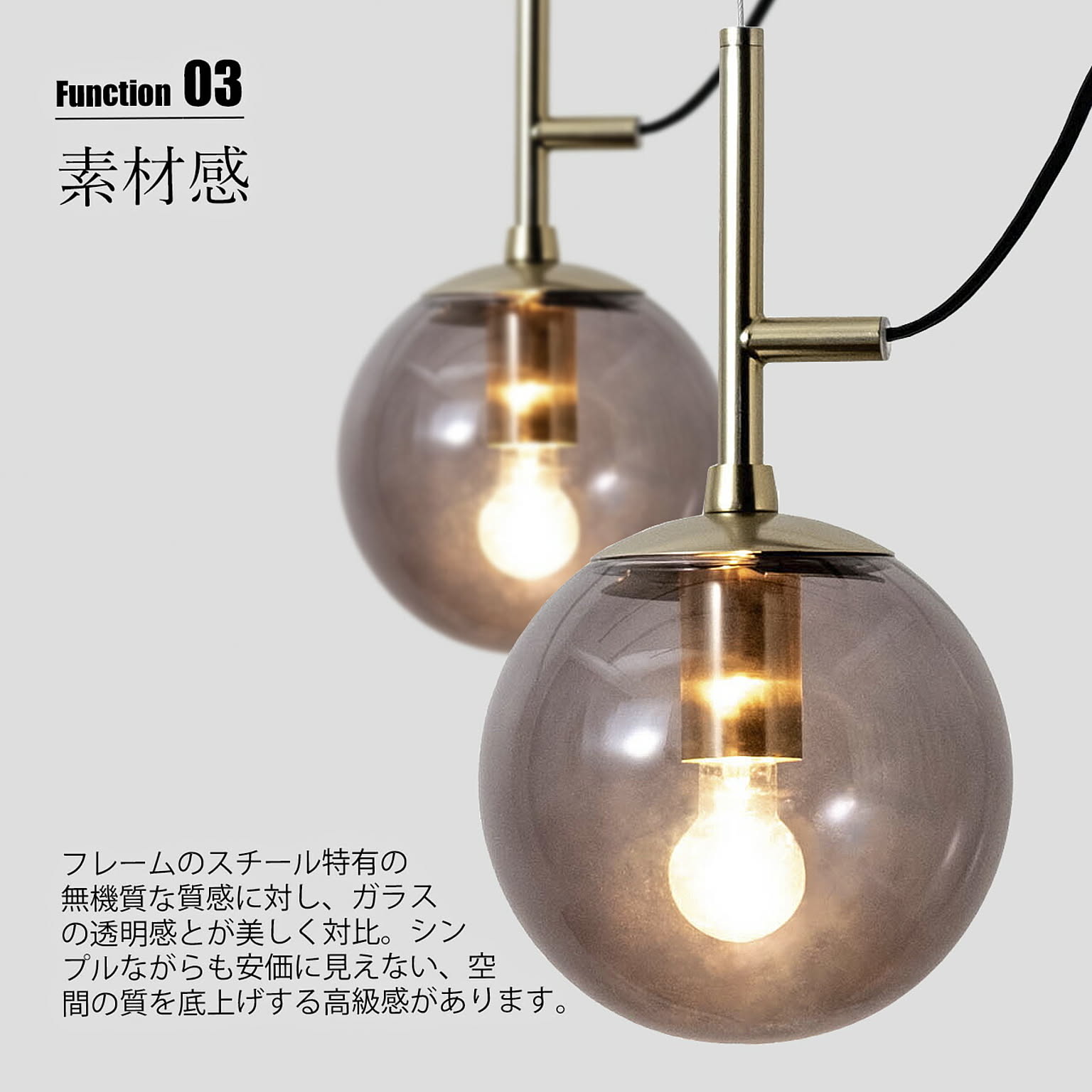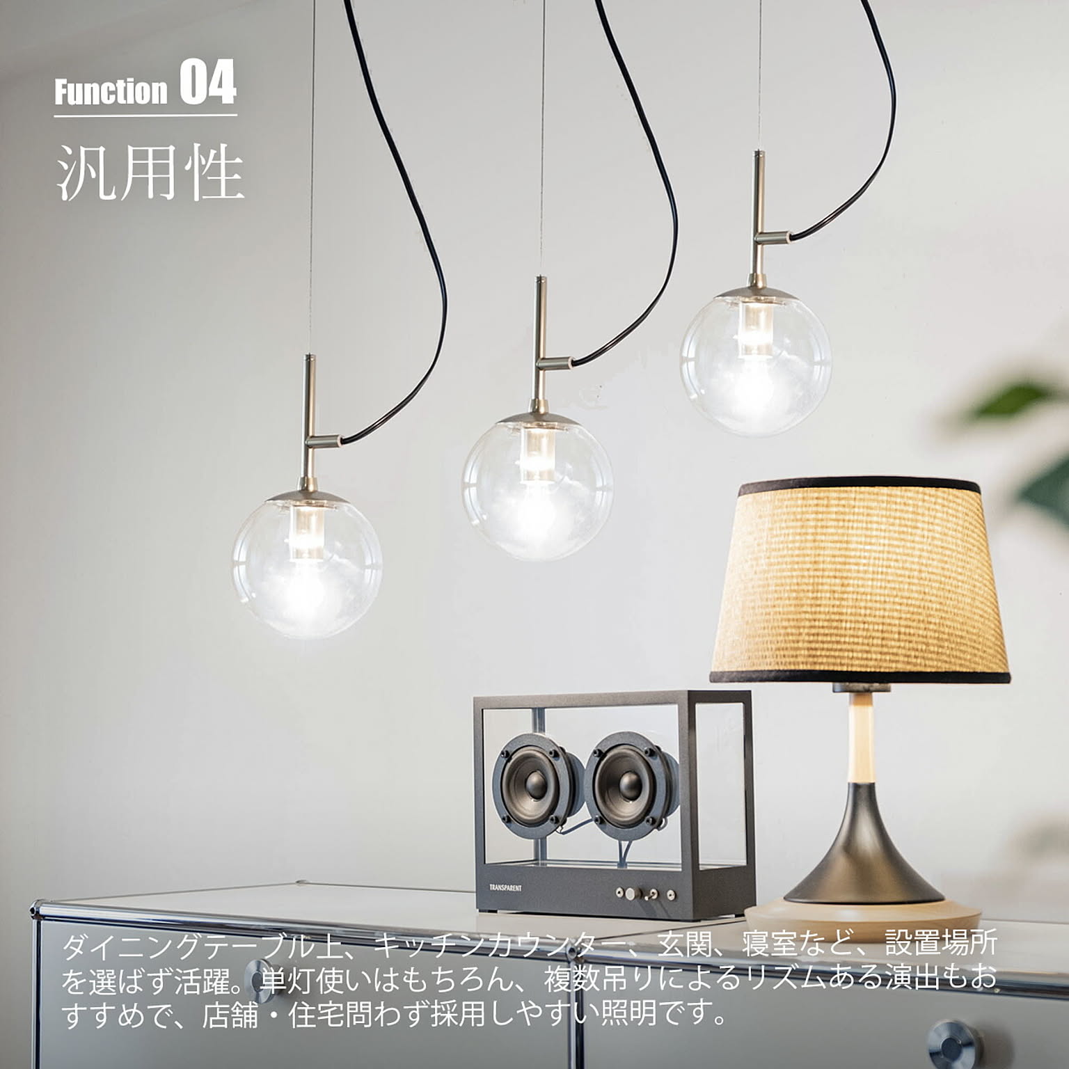 球体と直線のみで構成された、光そのものを、美しく吊るす、極めてミニマルなフォルムのペンダントライト。装飾を削ぎ落としたデザインだからこそ、素材の質感と光の美しさが際立ちます。ガラスグローブからは光が四方へやわらかく拡散し、部屋全体を明るく照らしながら、奥行きと陰影のある空間を演出。無機質な質感のスチールの本体と透明感のあるガラスの組み合わせは、モダン、北欧、インダストリアルなど幅広いインテリアと高い親和性を持ちます。ダイニングやキッチンカウンター、吹き抜け空間にも映える存在感で、灯りを消している時間さえも美しい佇まい。デザイン性と実用性を高い次元で融合させた一灯は、空間づくりに妥協したくない方にこそ選ばれる照明です。
