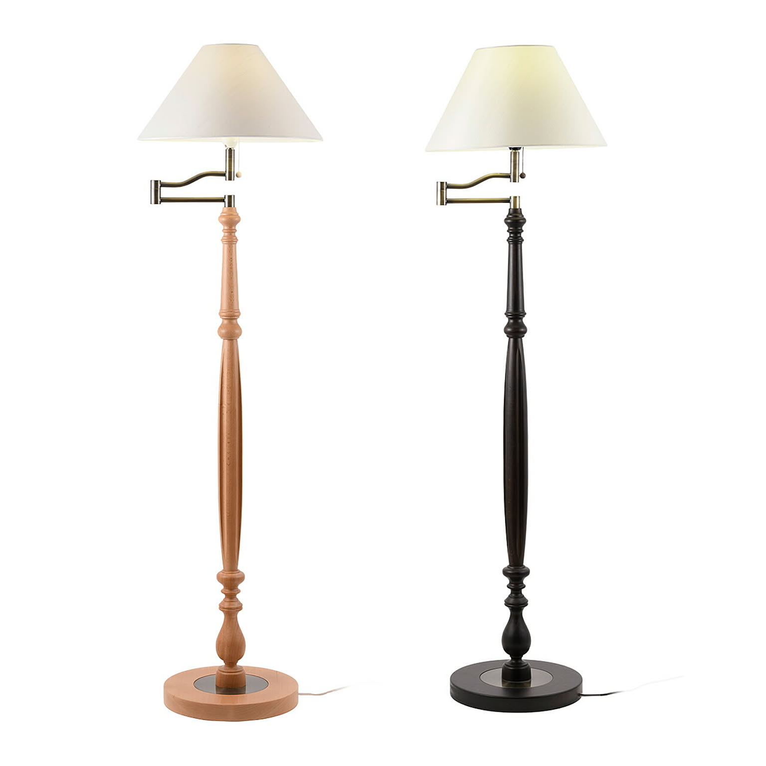 シンプルでオーソドックスなフォルムに、洗練された佇まいを備えたフロアライト。シェードにはやわらかな光を広げるファブリック素材、本体には天然木を使用し、自然素材ならではの温もりを感じられるデザインです。主張しすぎない美しさで、リビングや寝室、書斎などさまざまなシーンに自然と溶け込み、空間全体を心地よく照らします。時代やインテリアのテイストを問わず、長く愛用できる一台です。アームは可動式で、手元に光を寄せることも可能。リビングや寝室の間接照明としてはもちろん、読書灯としても有用。