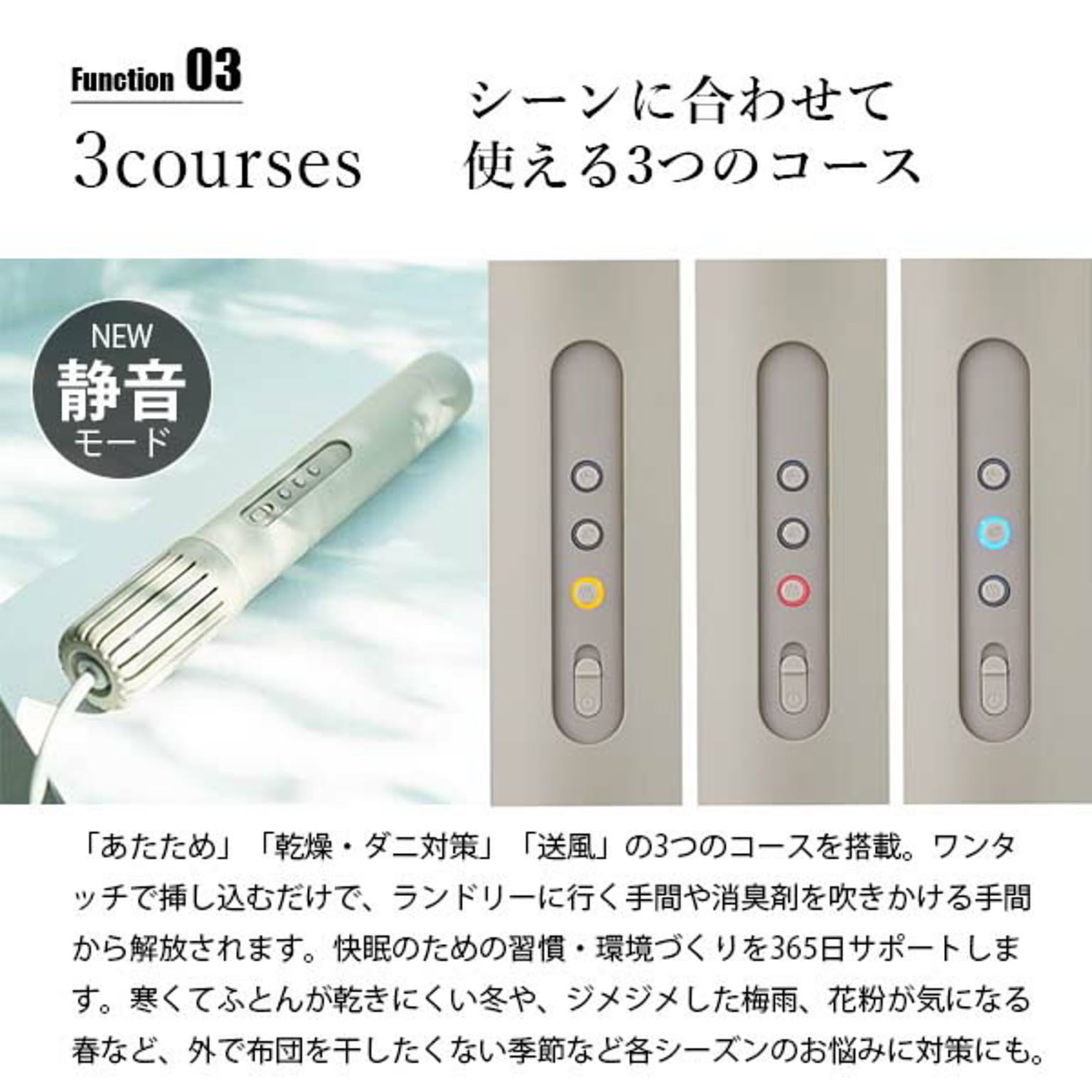 送風コース 120分間運転 乾燥・ダニ対策コース 80分間運転 あたためコース 10分間運転