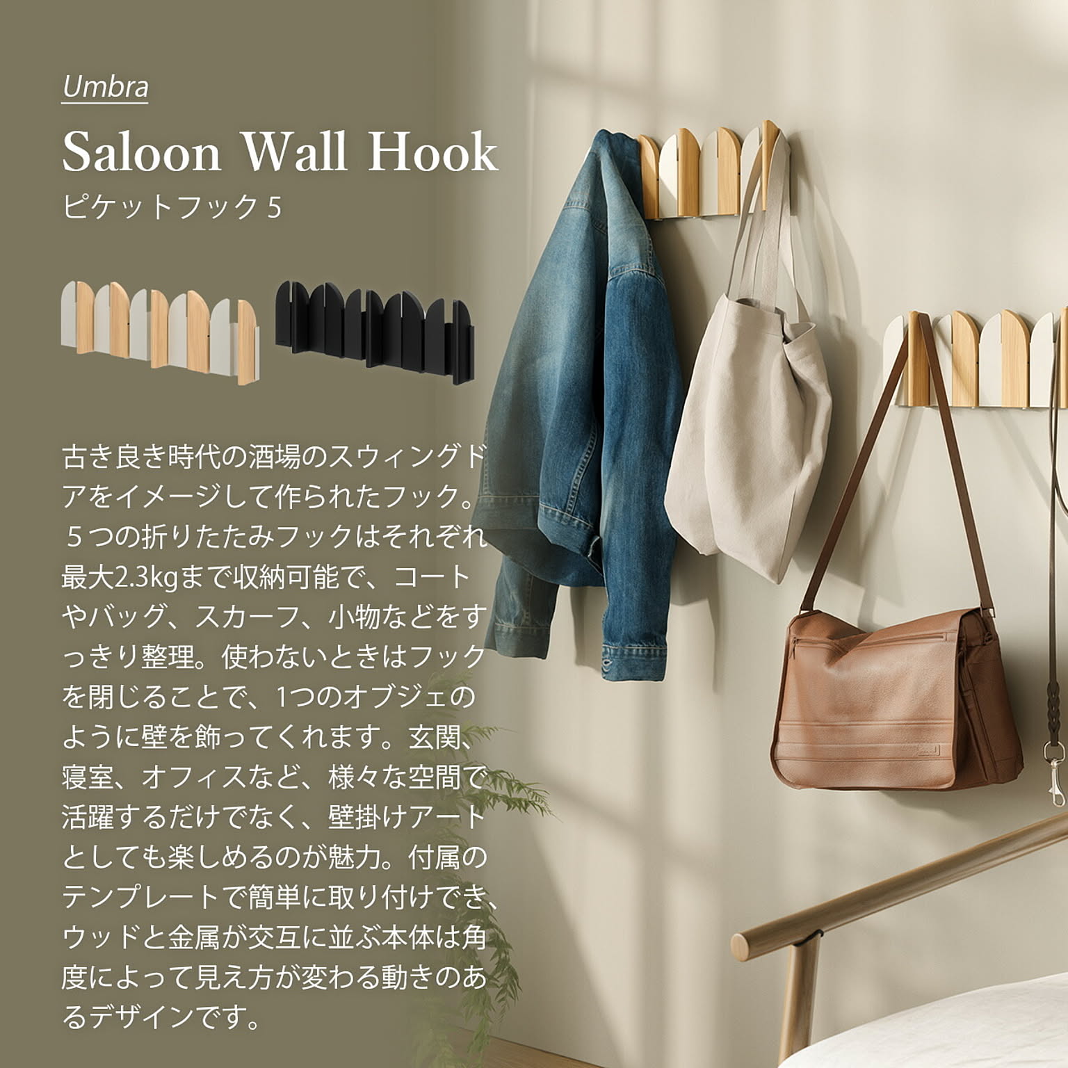 Umbra アンブラ Saloon Wall Hook サルーンフック 5連 / 壁掛け ハンガーフック 壁面収納 コートハンガー バッグハンガー インテリア 収納 木製
