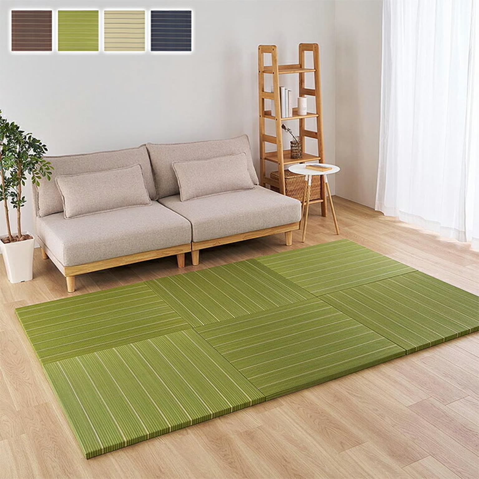 フローリングに置くだけで使える、い草素材の置き畳。軽量設計で一人でも扱いやすく、必要な枚数を並べるだけで空間に合わせたレイアウトが可能に。カットにも対応しているため、限られたスペースにも柔軟にフィットします。