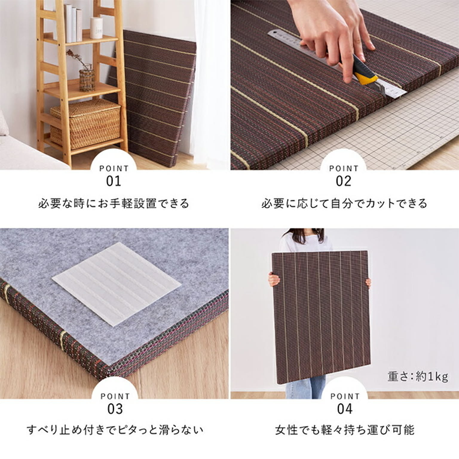 い草 置き畳 同色12枚入 凛 82x82cm 萩原