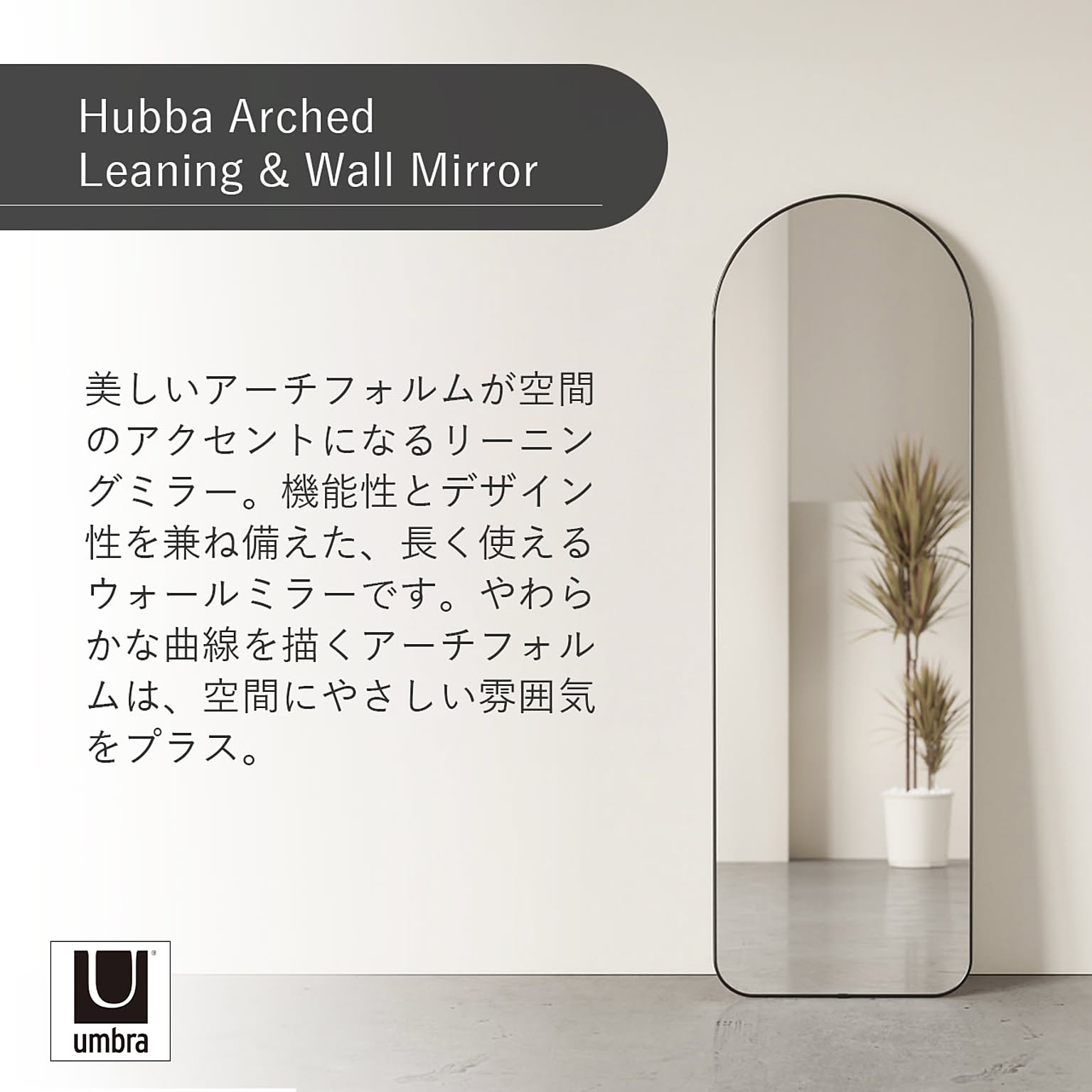 Umbra アンブラ フーバ アーチド リーニングミラー 51×157cm Hubba Arched Leaning & Wall Mirror ウォールミラー インテリア 玄関 リビング フレーム