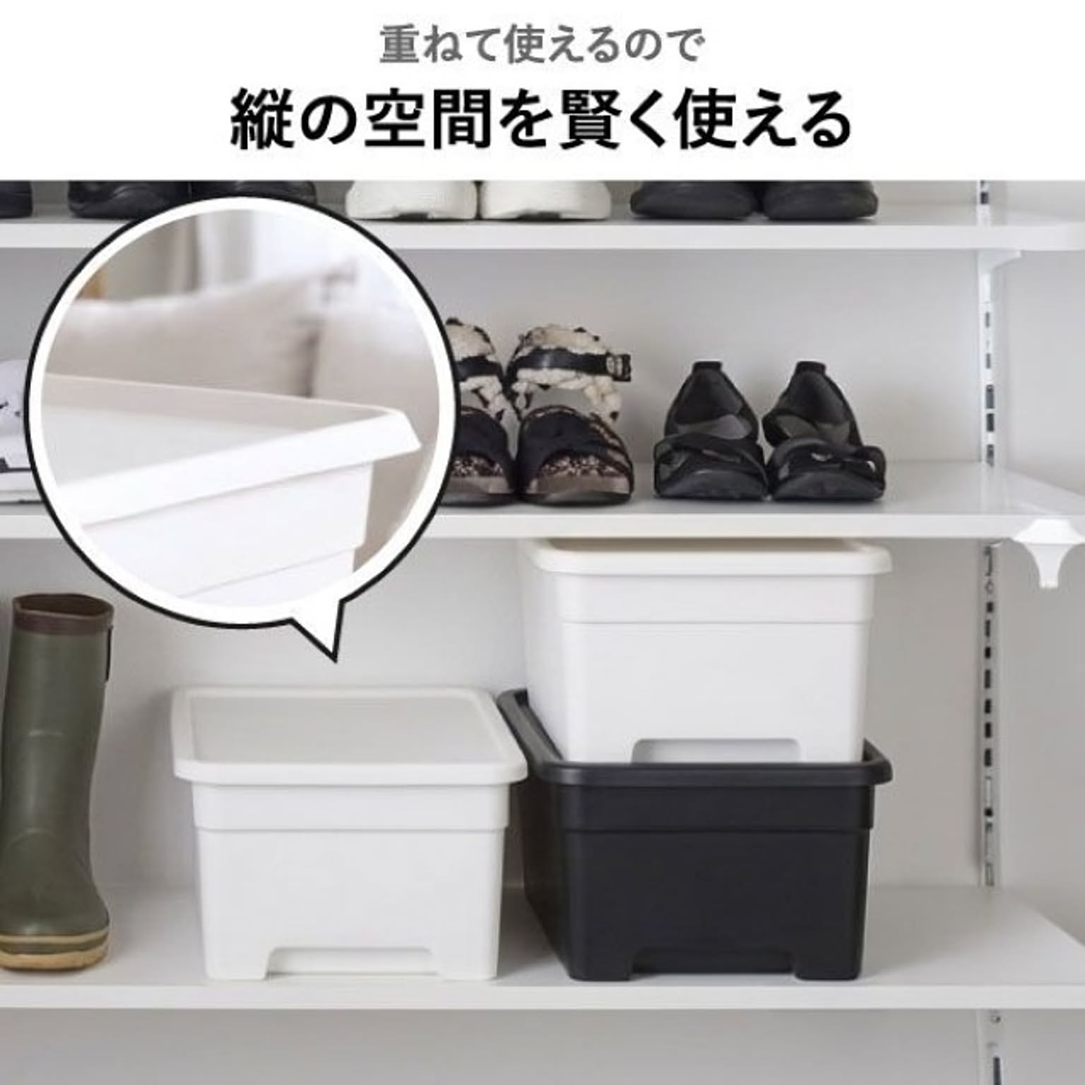 キッチンの吊り戸棚やクローゼットの枕棚など、デッドスペースになりがちな棚上収納を有効活用できるクローゼット収納ケースです。このクローゼット収納ケースは、下部の丸みのあるくぼみに指がしっかり入るため、高い所からでもサッと取り出しやすいのがポイント。カチッと閉まるフタはホコリを防ぐだけでなく、収納ボックスを棚上から引き出す際もズレにくく安心です。また、クローゼット収納ケースのフタには溝があるため、収納ボックスをスタッキングした際もズレ落ちる心配がありません。このクローゼット収納ケースは、収納に重要な「透け感」も選択可能。生活感を隠したい方にはマットで透けないタイプ、探す手間を省きたい方には中身が見えるクリアな収納ボックスがオススメです。無駄のないシンプルデザインの収納ボックスは、どんなインテリアにも自然と馴染み、暮らしのあらゆるシーンで活躍します。このクローゼット収納ケースをシリーズで揃えることで、空間に心地よい統一感が生まれます。