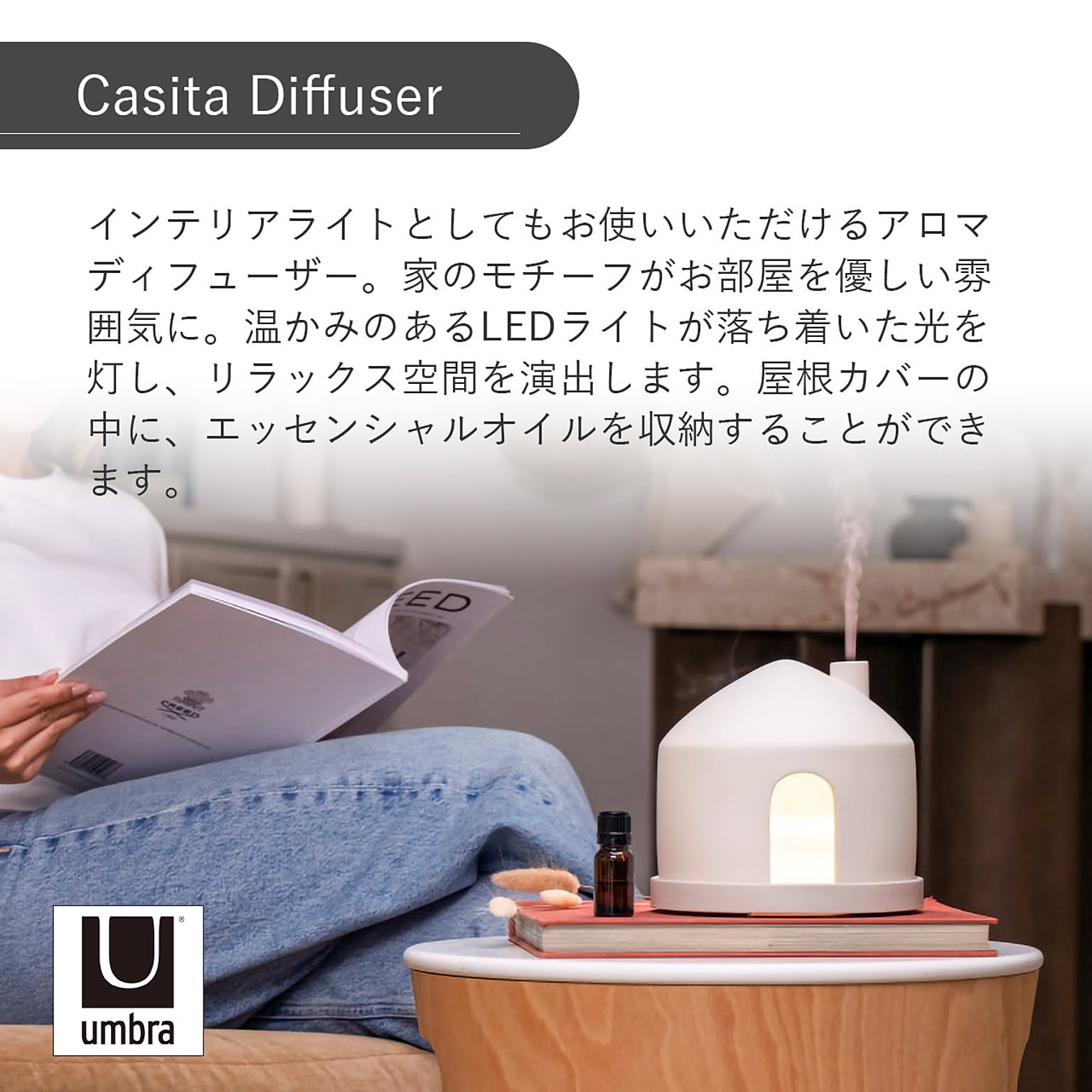 Umbra アンブラ カシータ ディフューザー サンド Casita Diffuser USB充電式 アロマディフューザー インテリア エッセンシャルオイル 照明 LEDライト