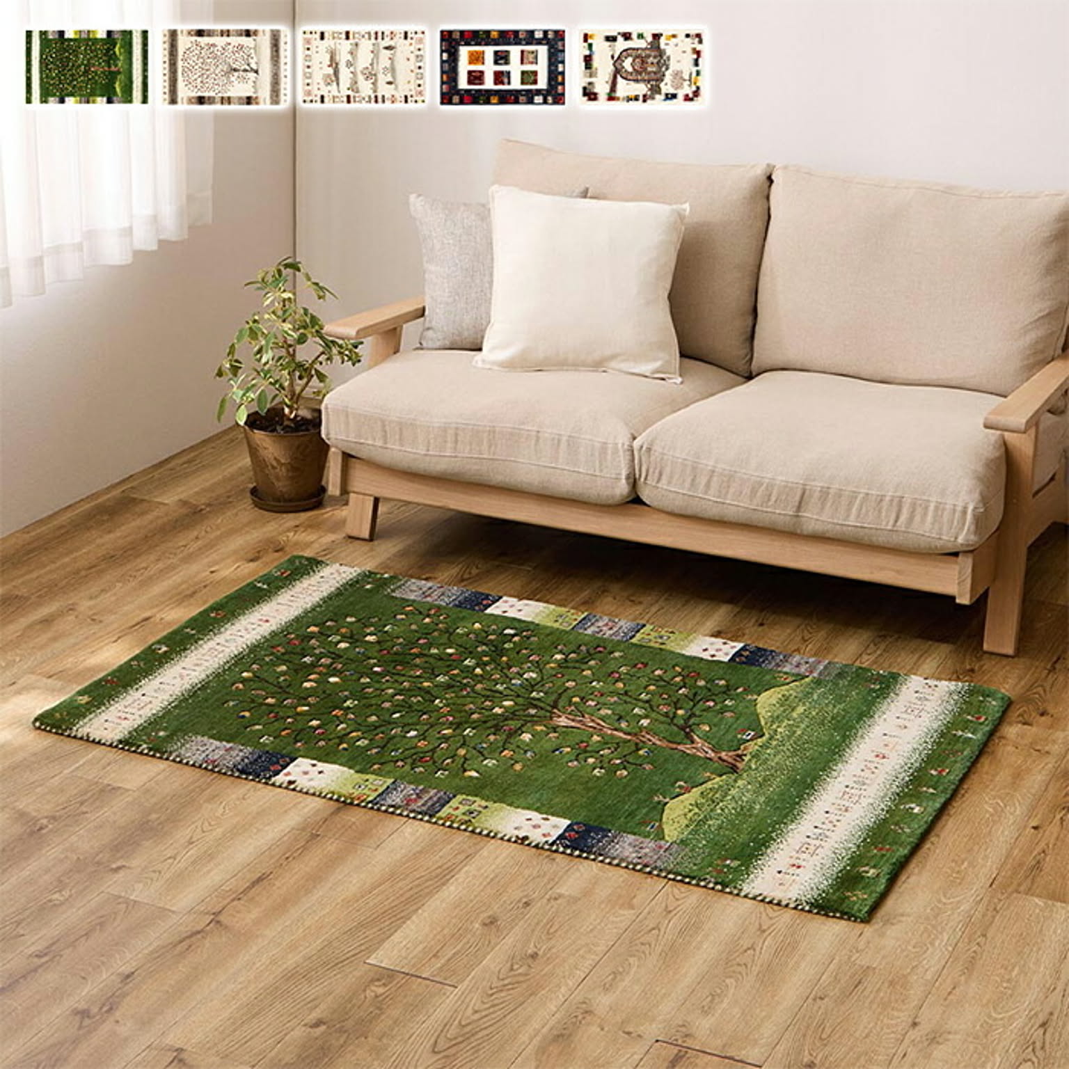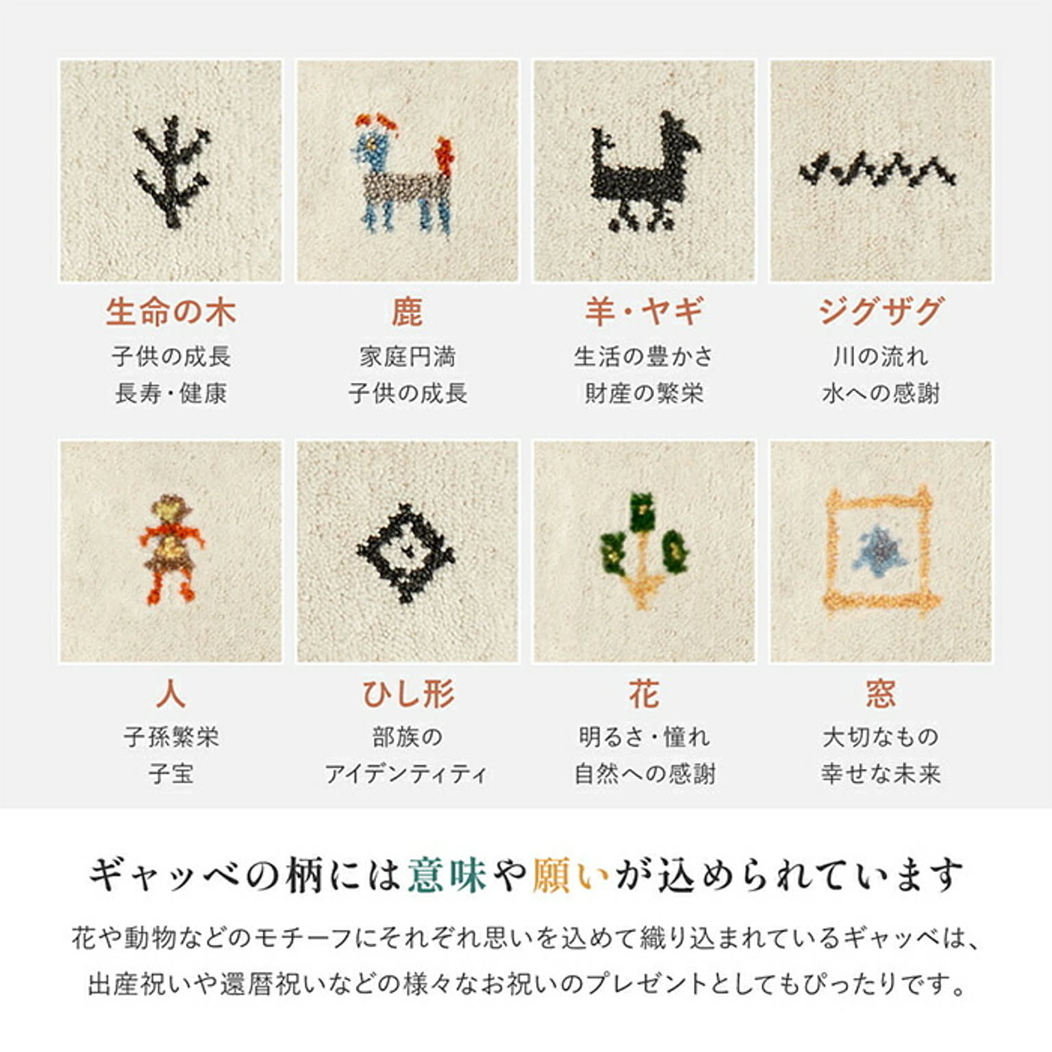 インドの職人によって一枚一枚、丁寧に織り上げられたギャッベラグマット。経糸を多く用いることで生まれる繊細な柄と、天然ウールならではの深みのある風合いが特長です。高密度に織り込まれたずっしりとした重厚感と、豊かなボリューム感を備え、踏みしめた瞬間には弾力のある心地よさを感じられます。ウールが多くの空気を含むため、夏はさらっと涼しく、冬は足元から暖かく、一年を通して快適に使用可能。吸湿・放湿性にも優れ、リビングや寝室、ソファ前など、くつろぎの空間に上質な落ち着きをもたらします。