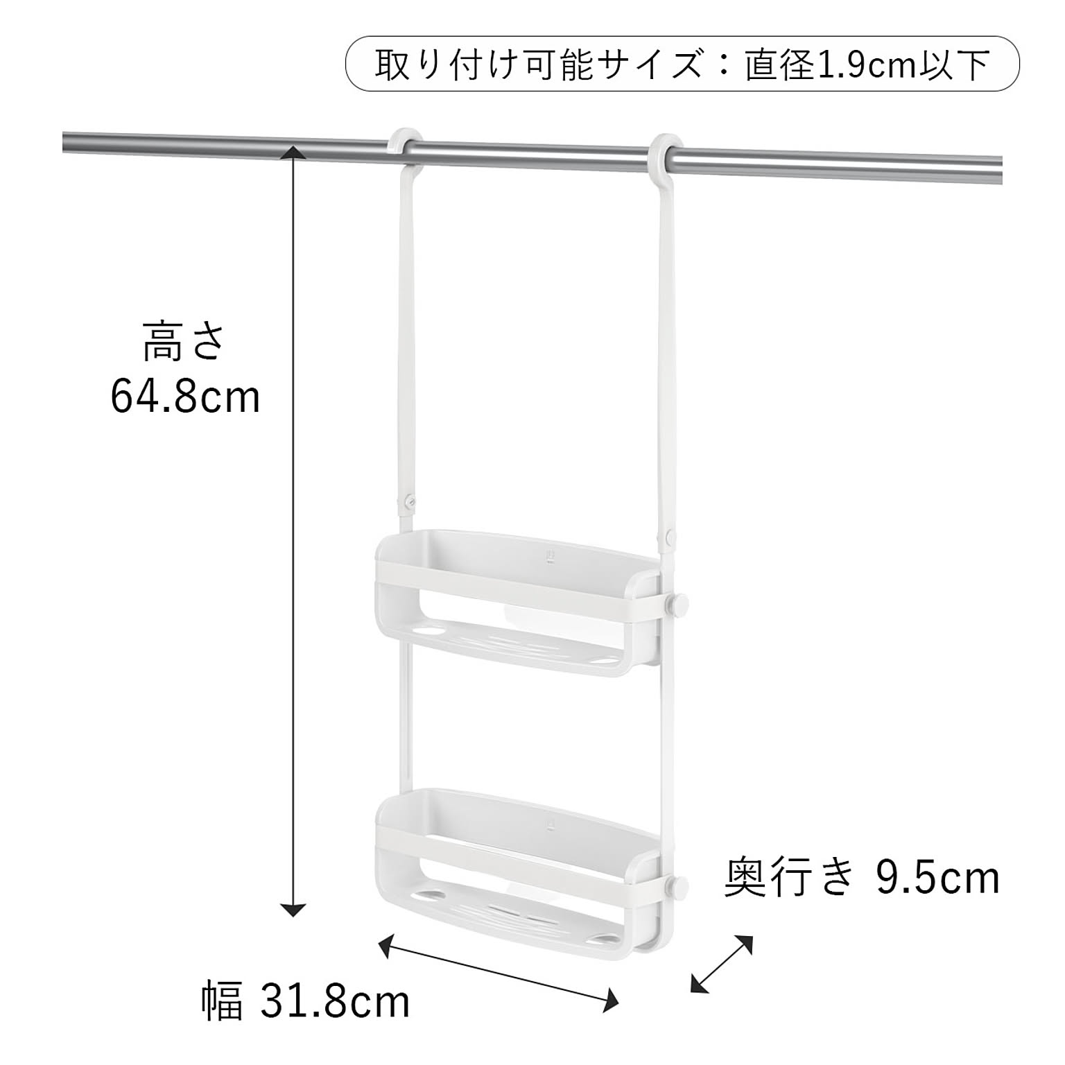 取り付け可能フックサイズ:直径1.9cm以下