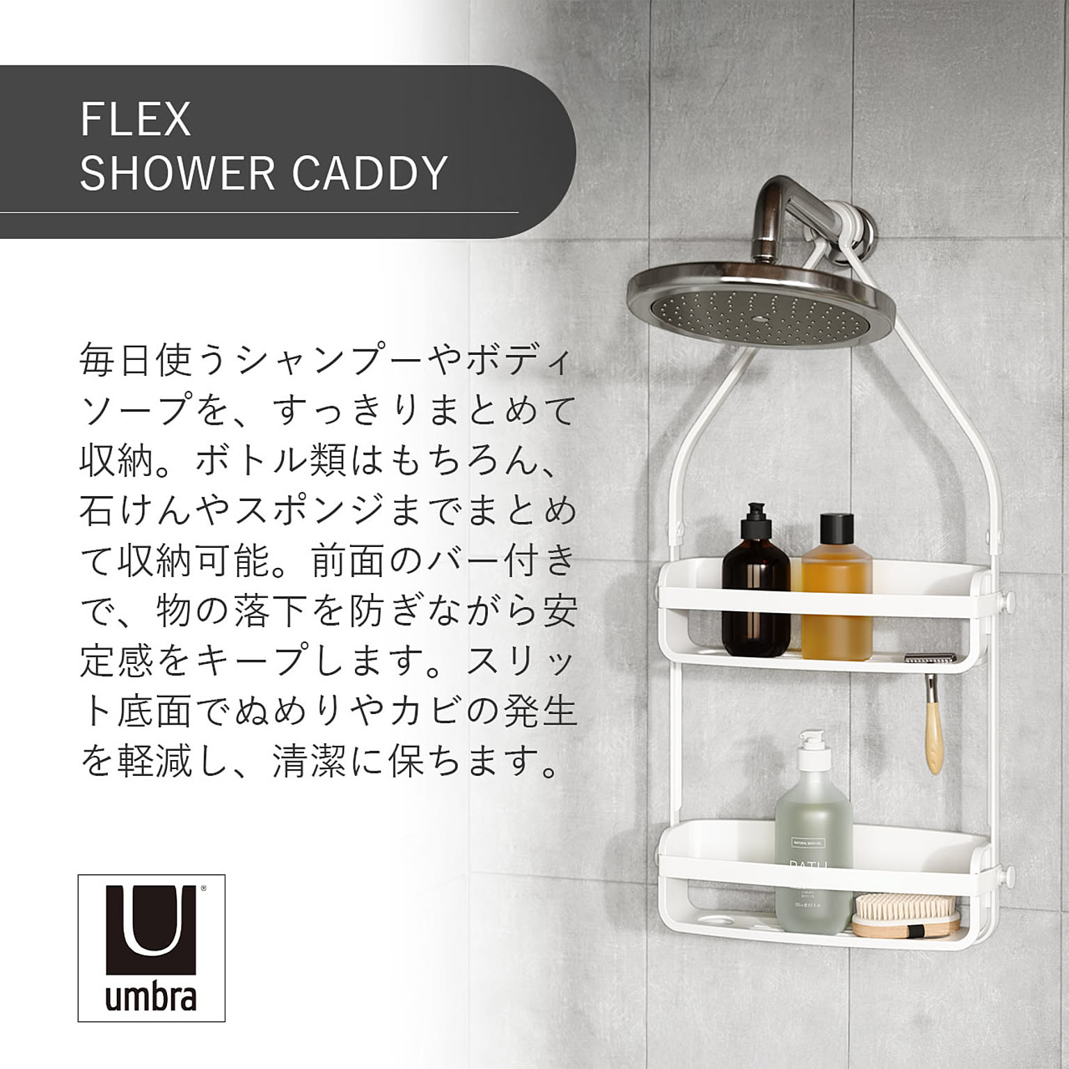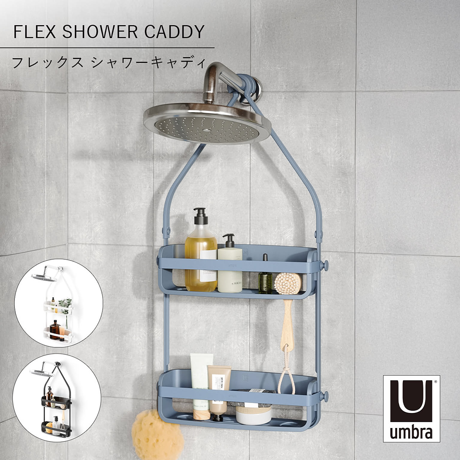 Umbra アンブラ フレックス シャワーキャディ FLEX SHOWER CADDY 浴室 収納 バスルーム バス用品収納 シャワーラック 吊り下げ バスラック シャンプーラック