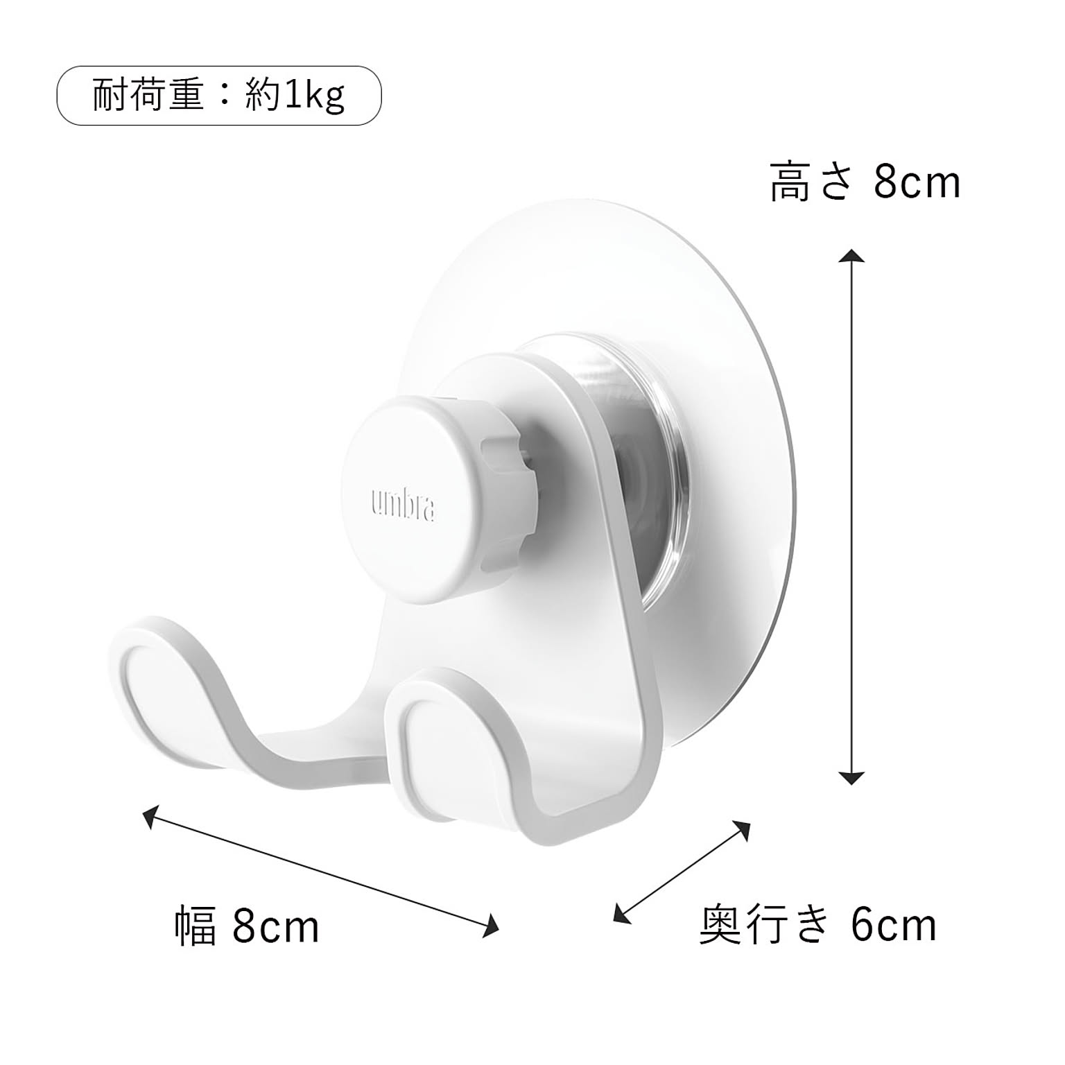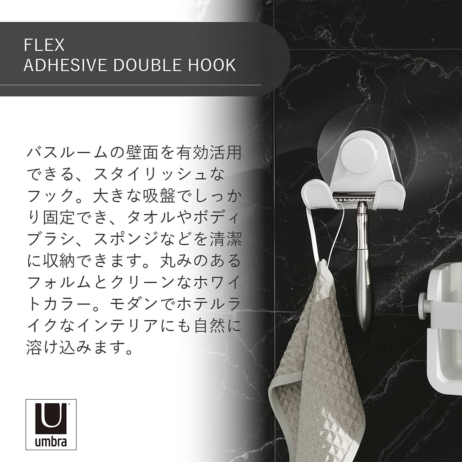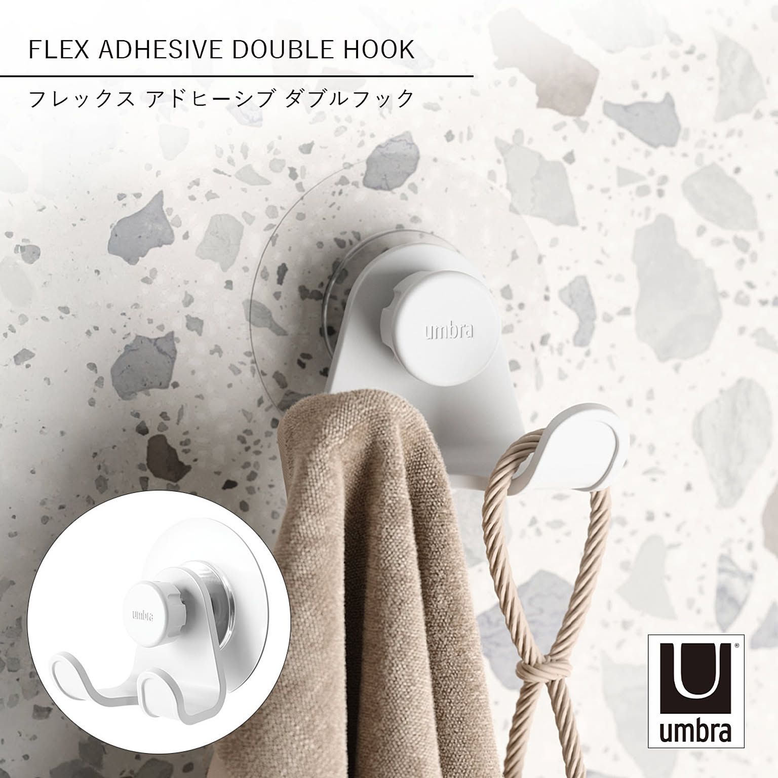 Umbra アンブラ フレックス アドヒーシブ ダブルフック FLEX ADHESIVE DOUBLE HOOK 吸盤フック 浴室 バスルーム収納 水回り 浮かせる収納 バスグッズ タイル ガラス