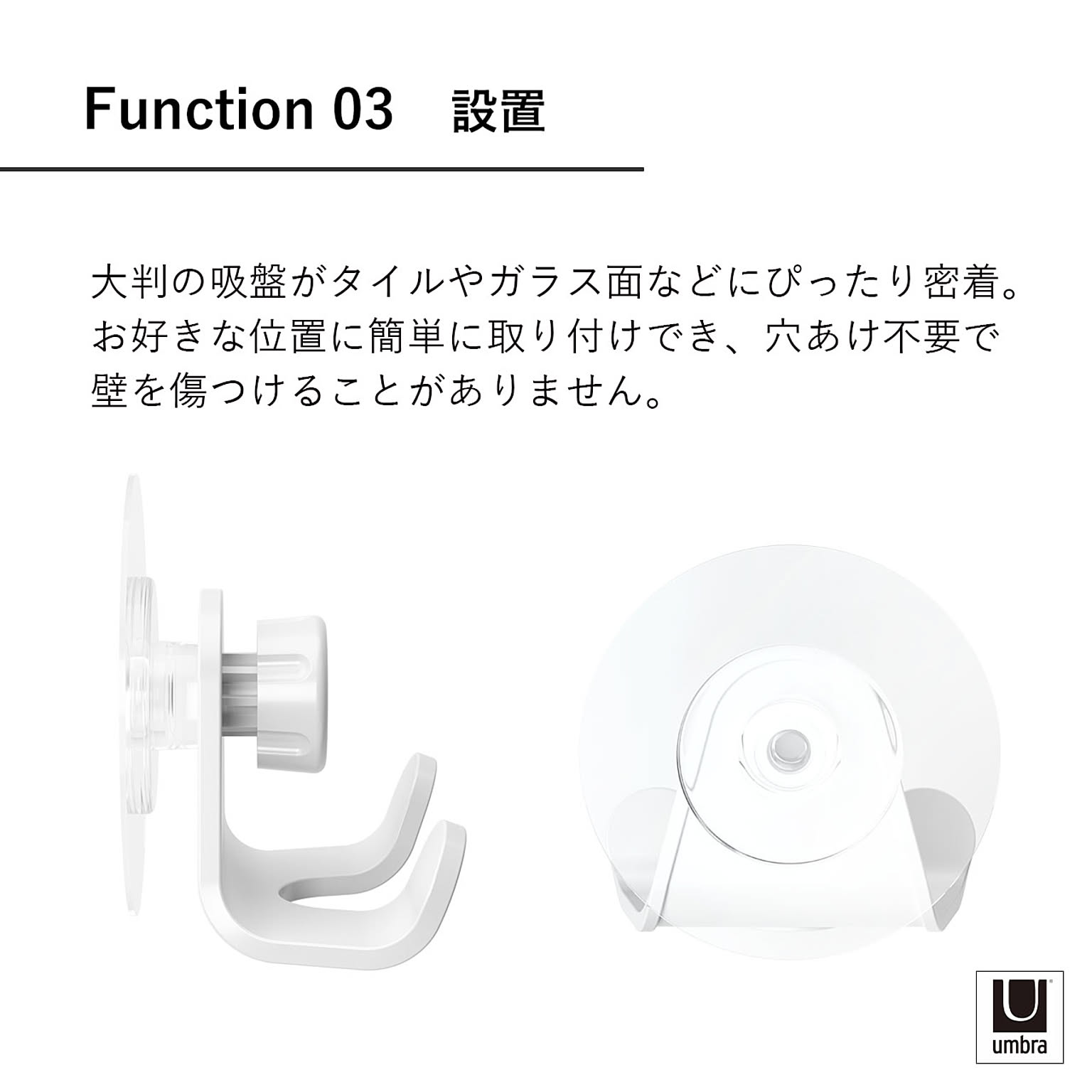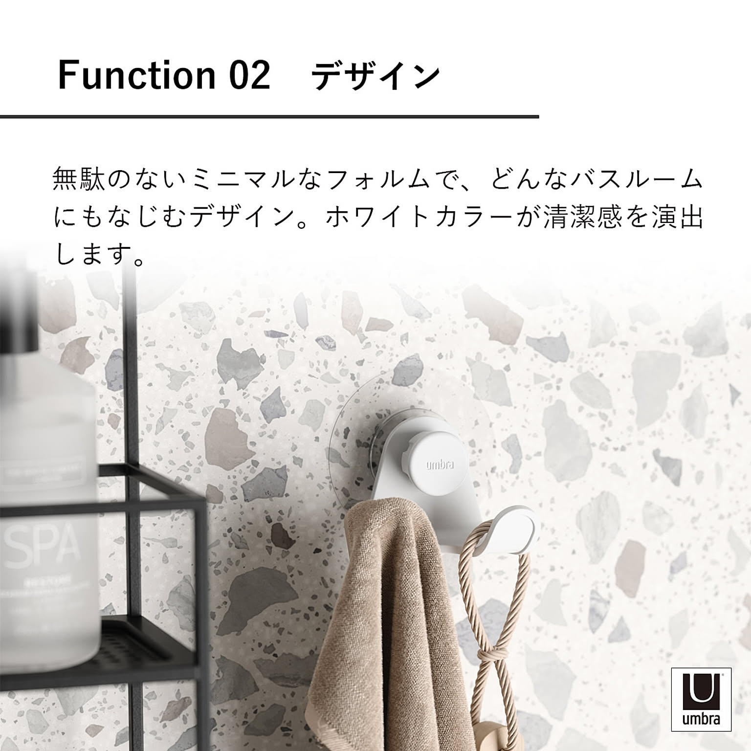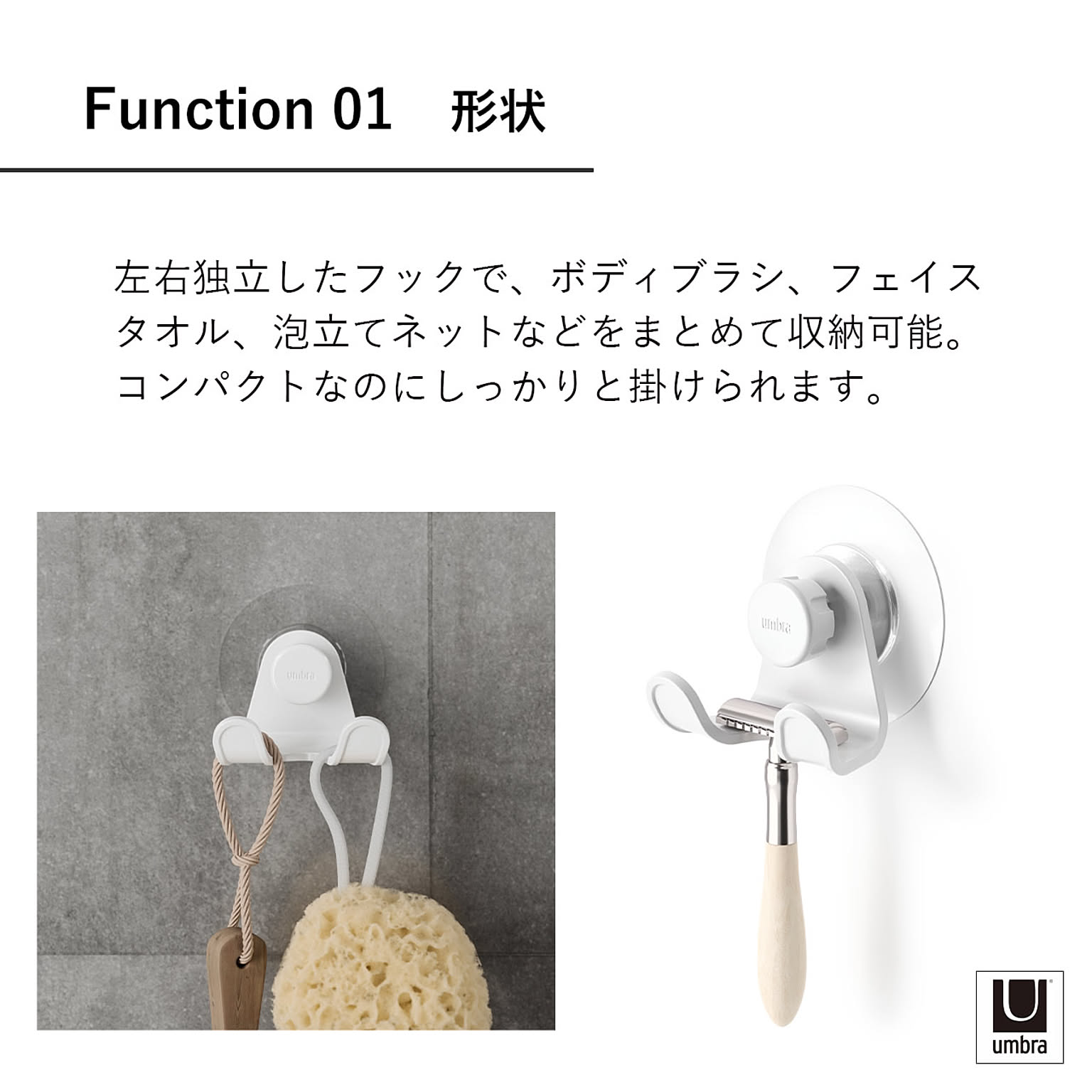 Umbra アンブラ フレックス アドヒーシブ ダブルフック FLEX ADHESIVE DOUBLE HOOK 吸盤フック 浴室 バスルーム収納 水回り 浮かせる収納 バスグッズ タイル ガラス