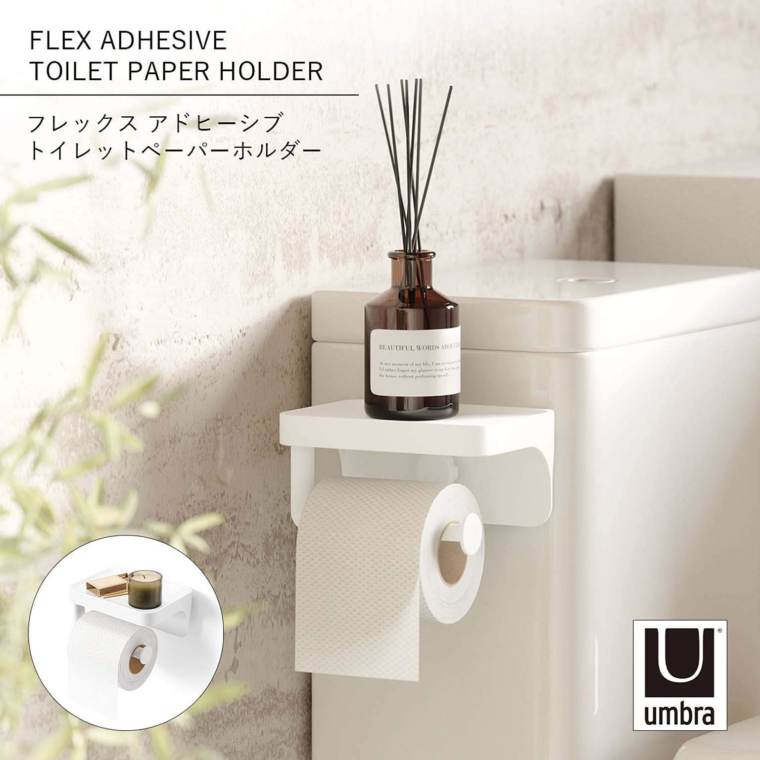 Umbra アンブラ フレックス アドヒーシブ トイレットペーパーホルダー FLEX ADHESIVE TOILET PAPER HOLDER トイレタリー 収納 棚 ラック 天板 壁掛け 吸盤