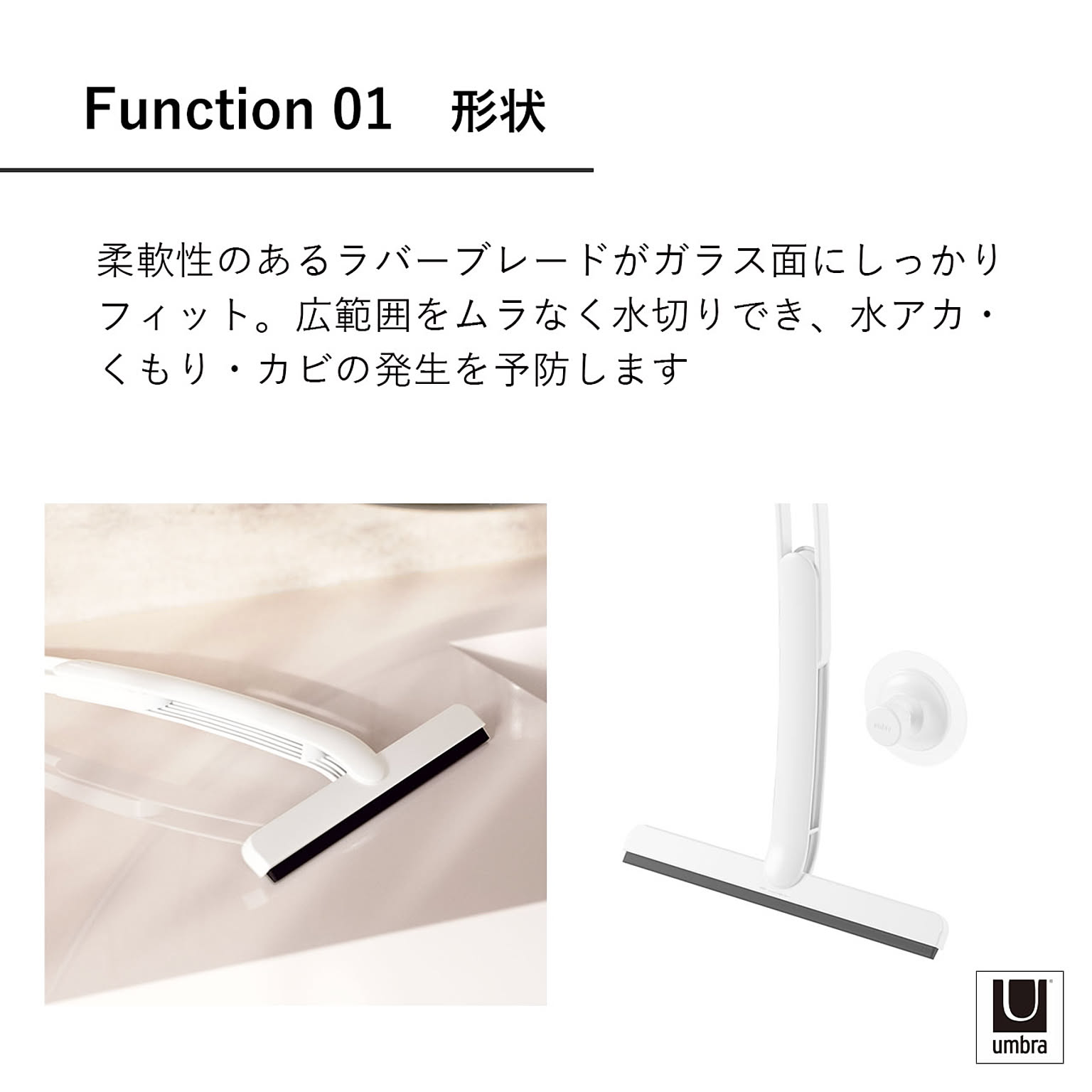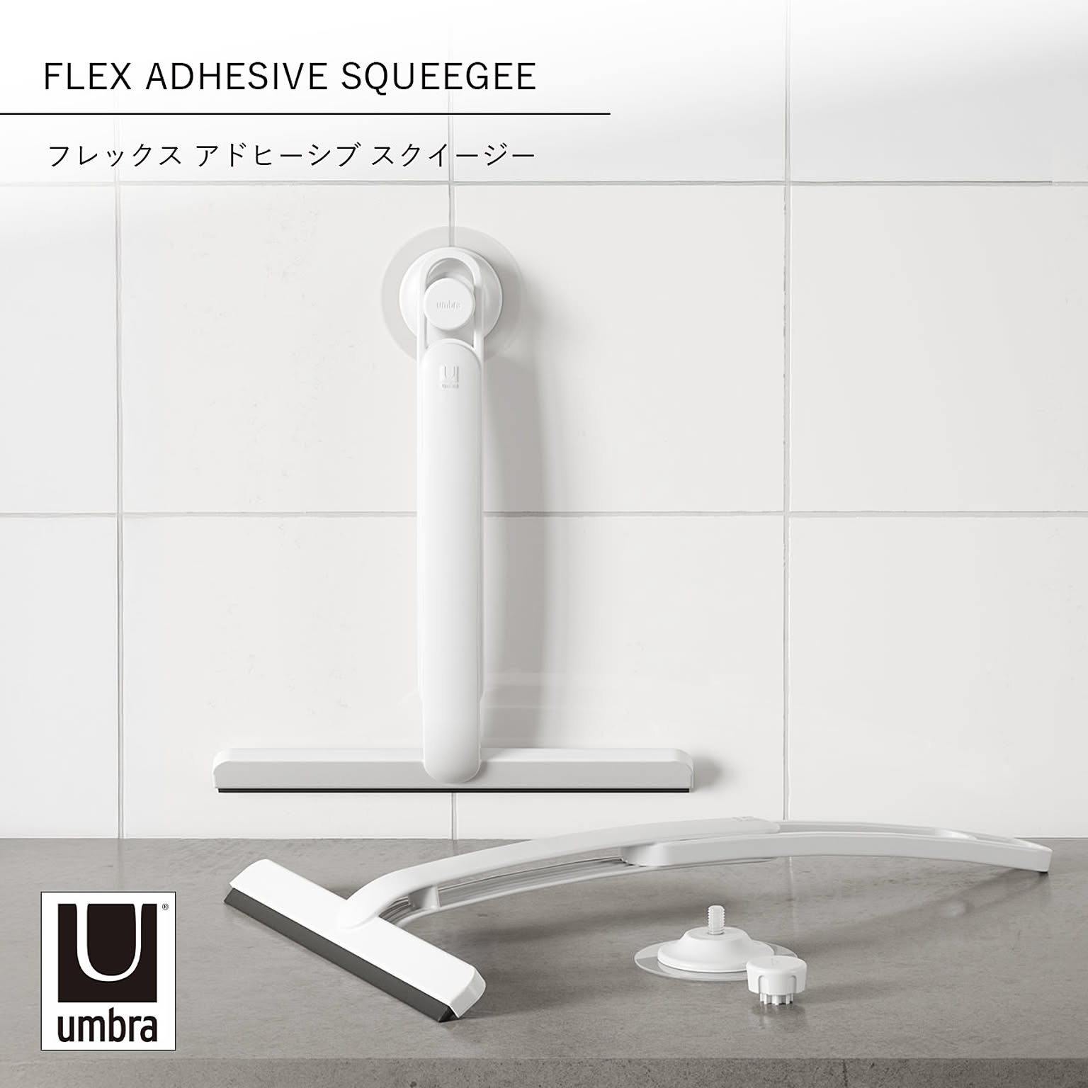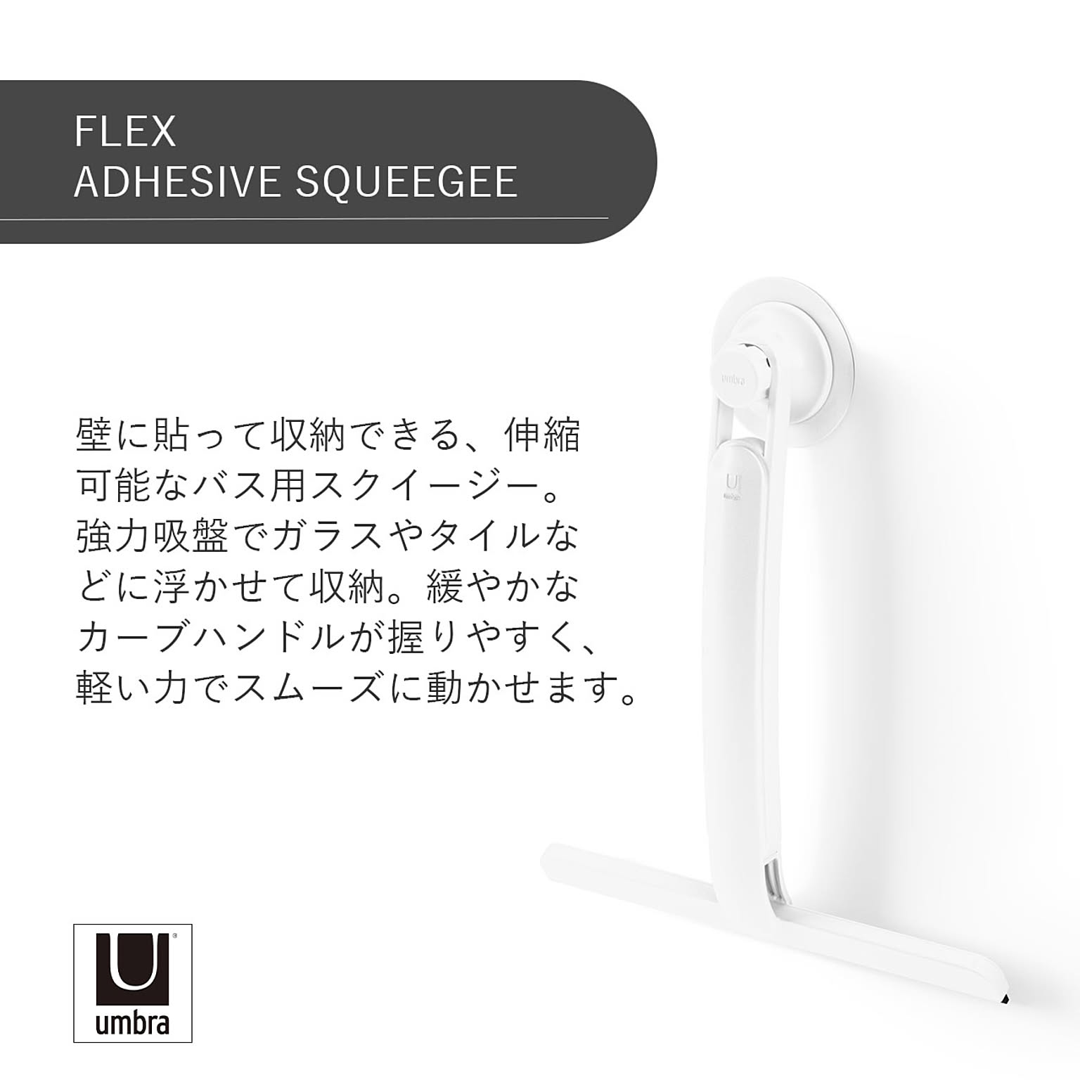 Umbra アンブラ フレックス アドヒーシブ スクイージー FLEX ADHESIVE SQUEEGEE 水切りワイパー スキージー ハンドワイパー お風呂掃除 鏡 窓 ガラス 吸盤 伸縮