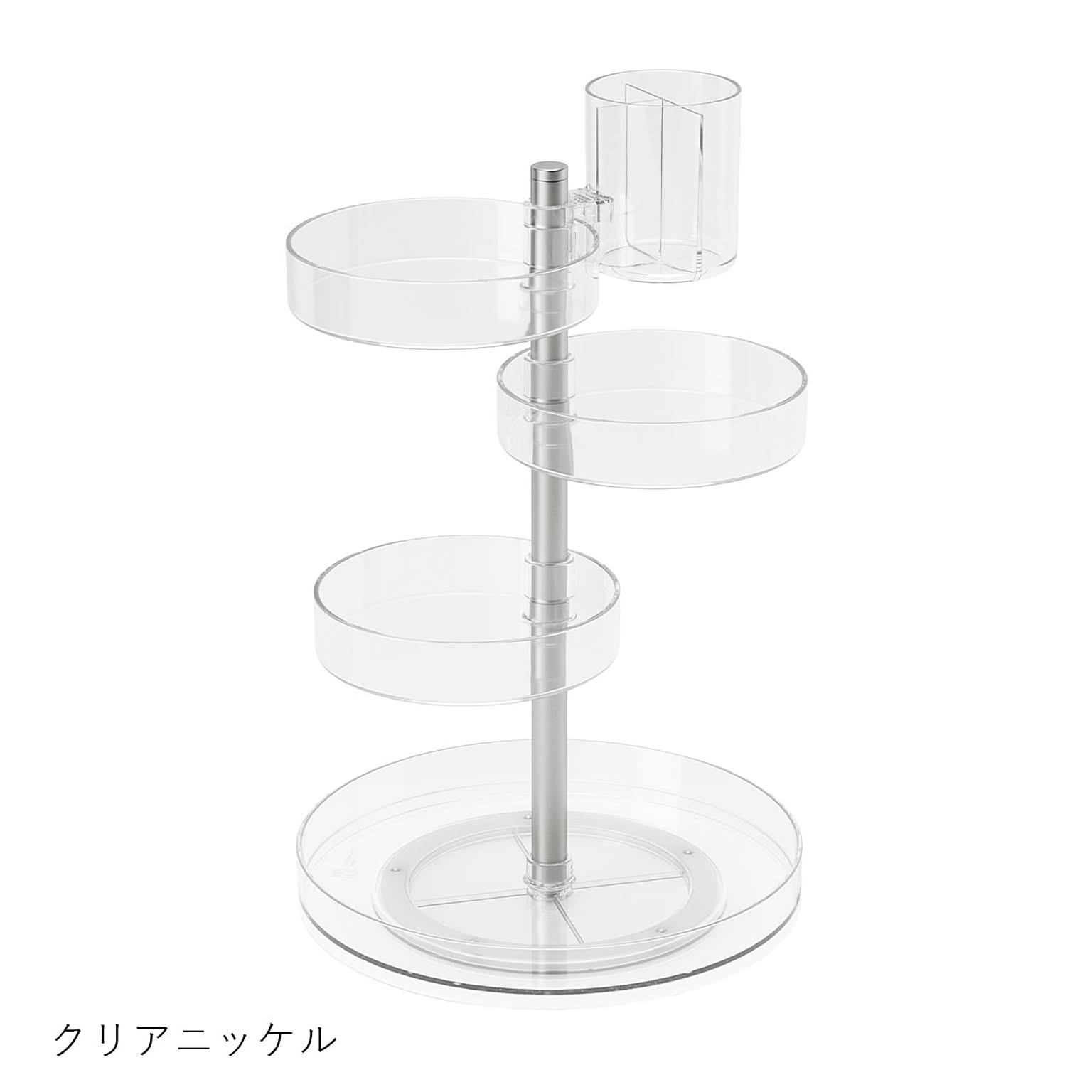 省スペースで大容量に整理整頓できるコスメ収納ケース。360度回転するので、見やすく取り出しやすい設計。組立式で各トレーの配置をカスタマイズすることができます。