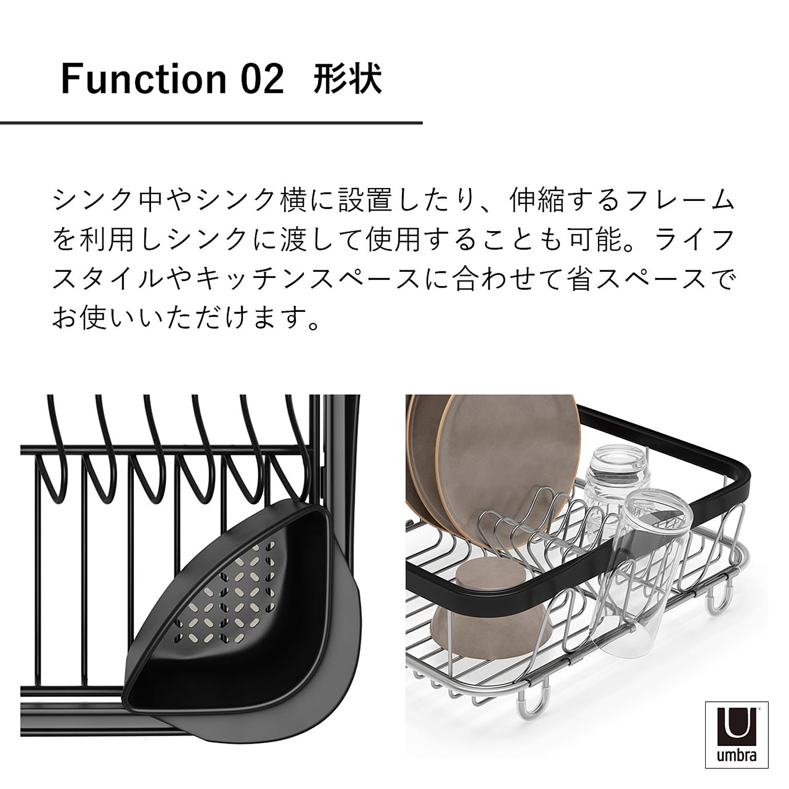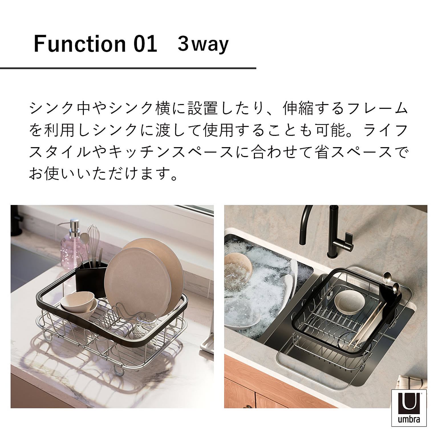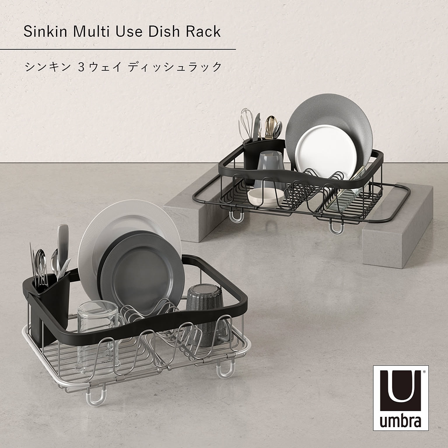 Umbra アンブラ シンキン 3ウェイディッシュラック Sinkin Multi Use Dish Rack 水切り シンク キッチン 水切りラック 水切りかご シンク掛け 折りたたみ スリム 収納