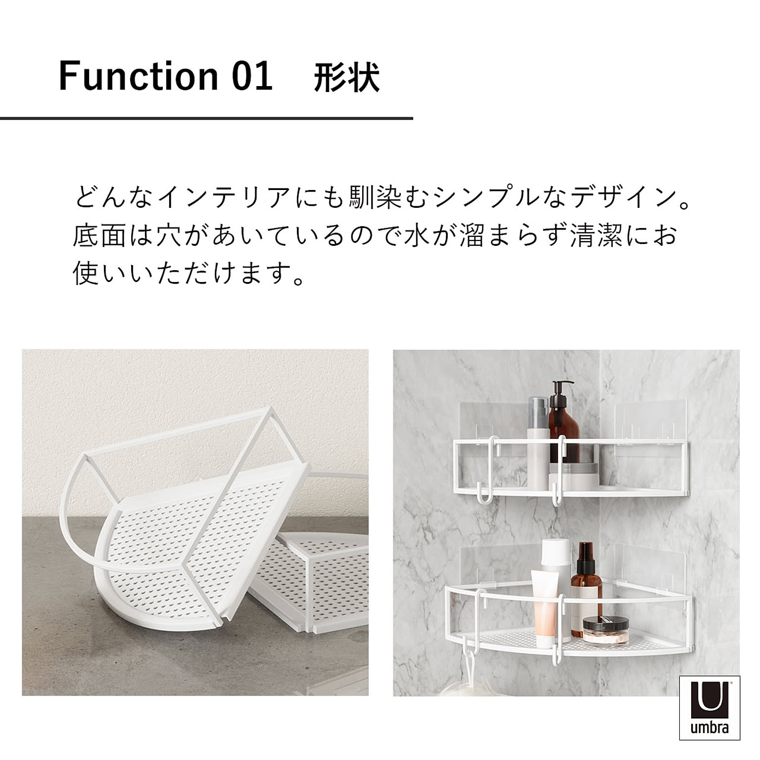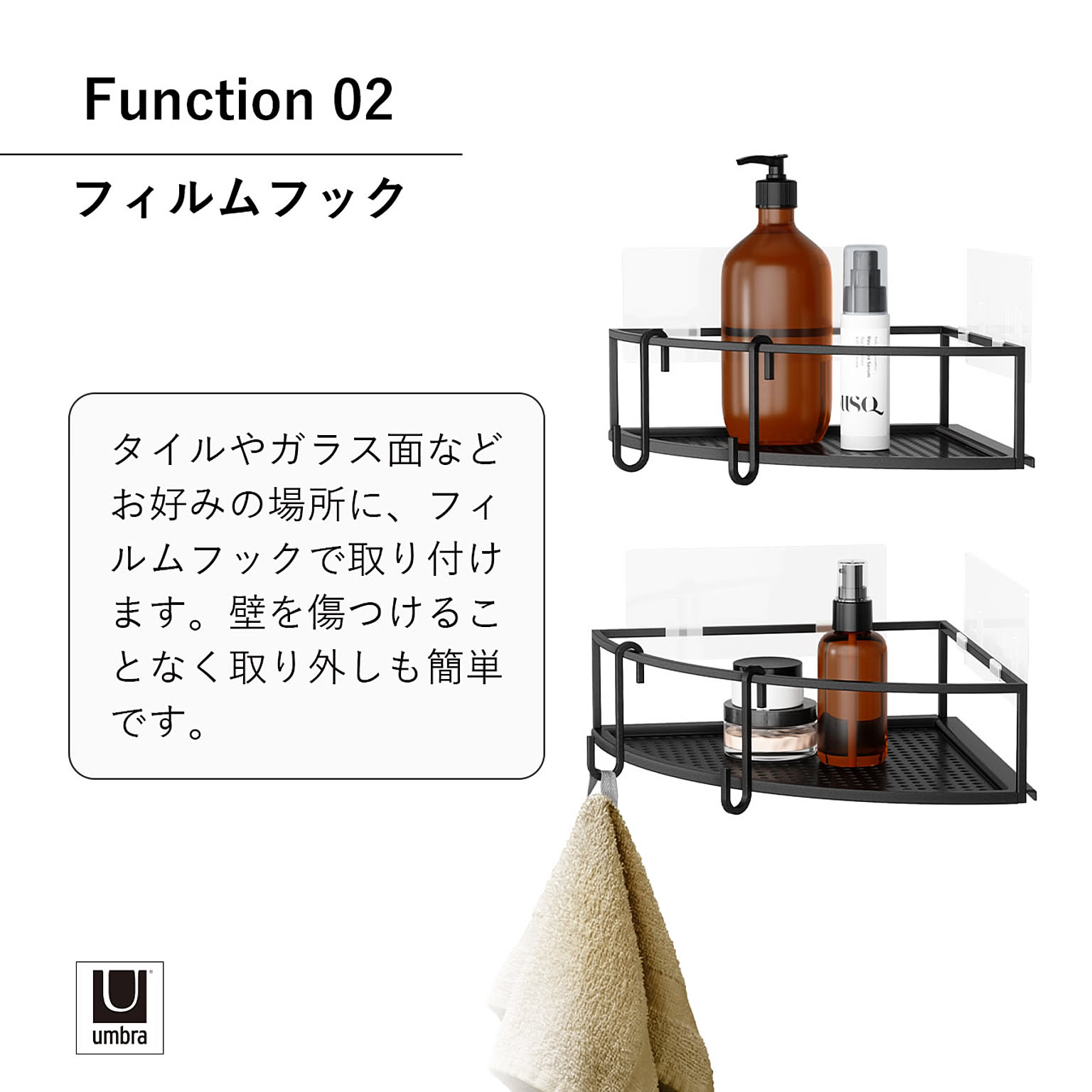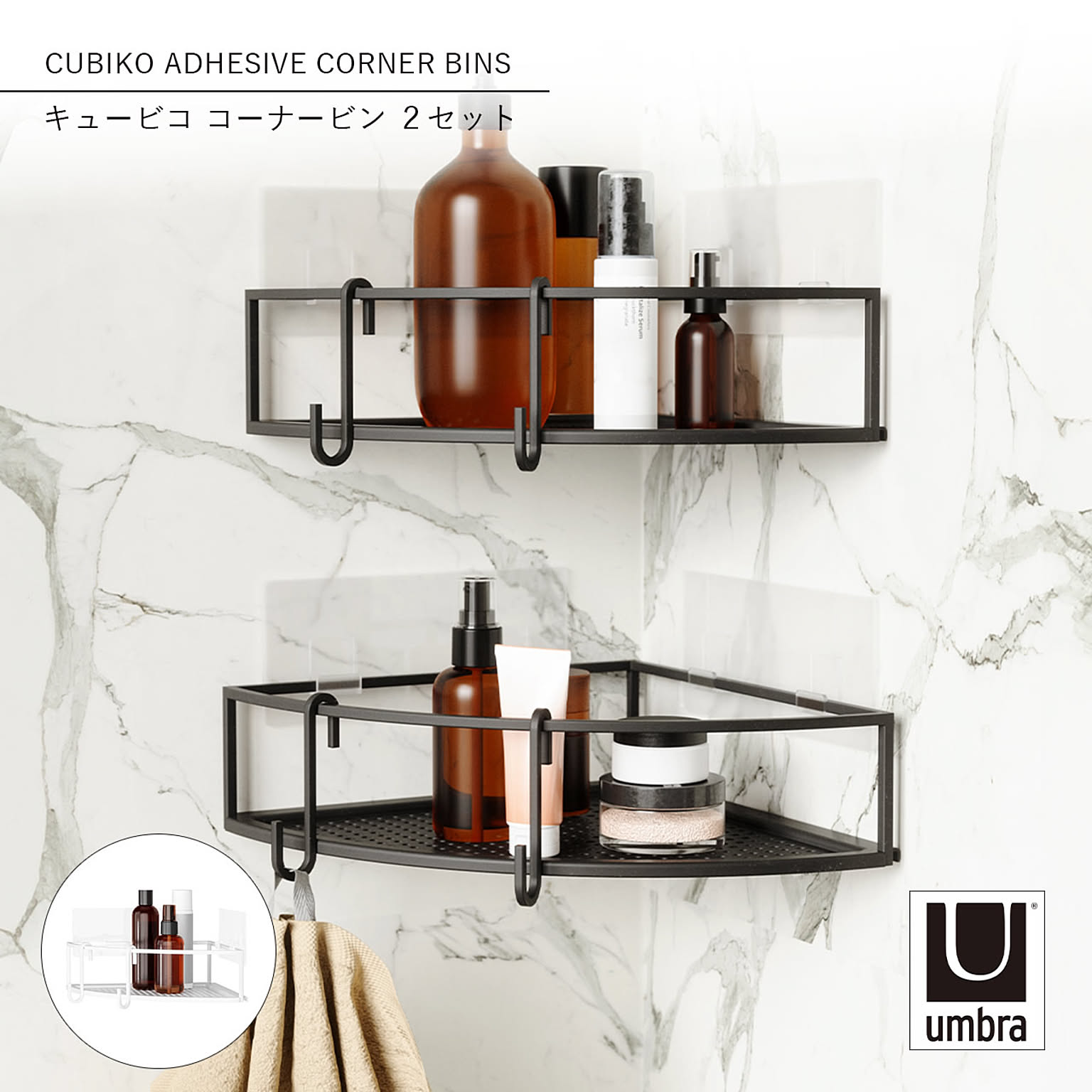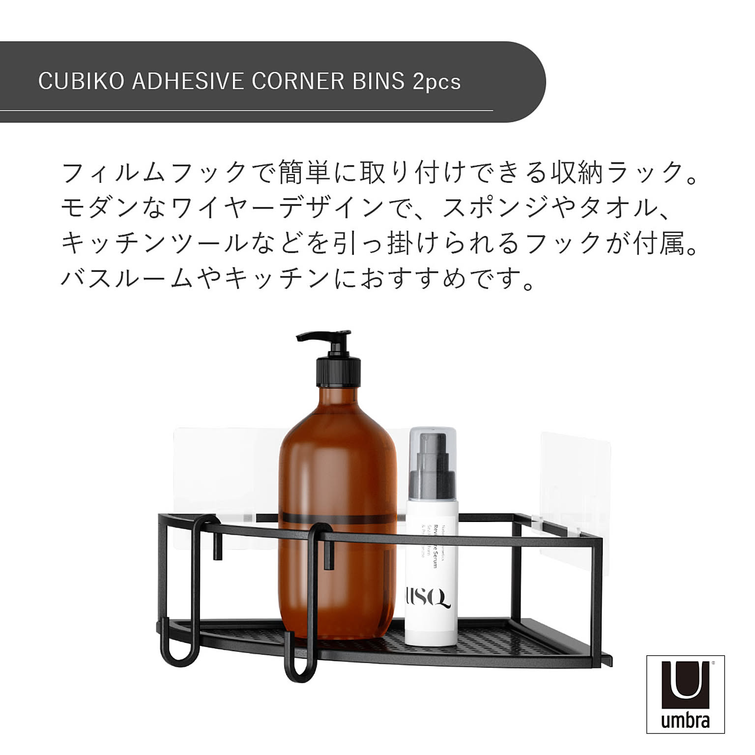 Umbra アンブラ キュービコ コーナービン 2セット CUBIKO ADHESIVE CORNER BINS バス収納 お風呂 キッチン収納 フィルムフック タイル面 ガラス面 ラック