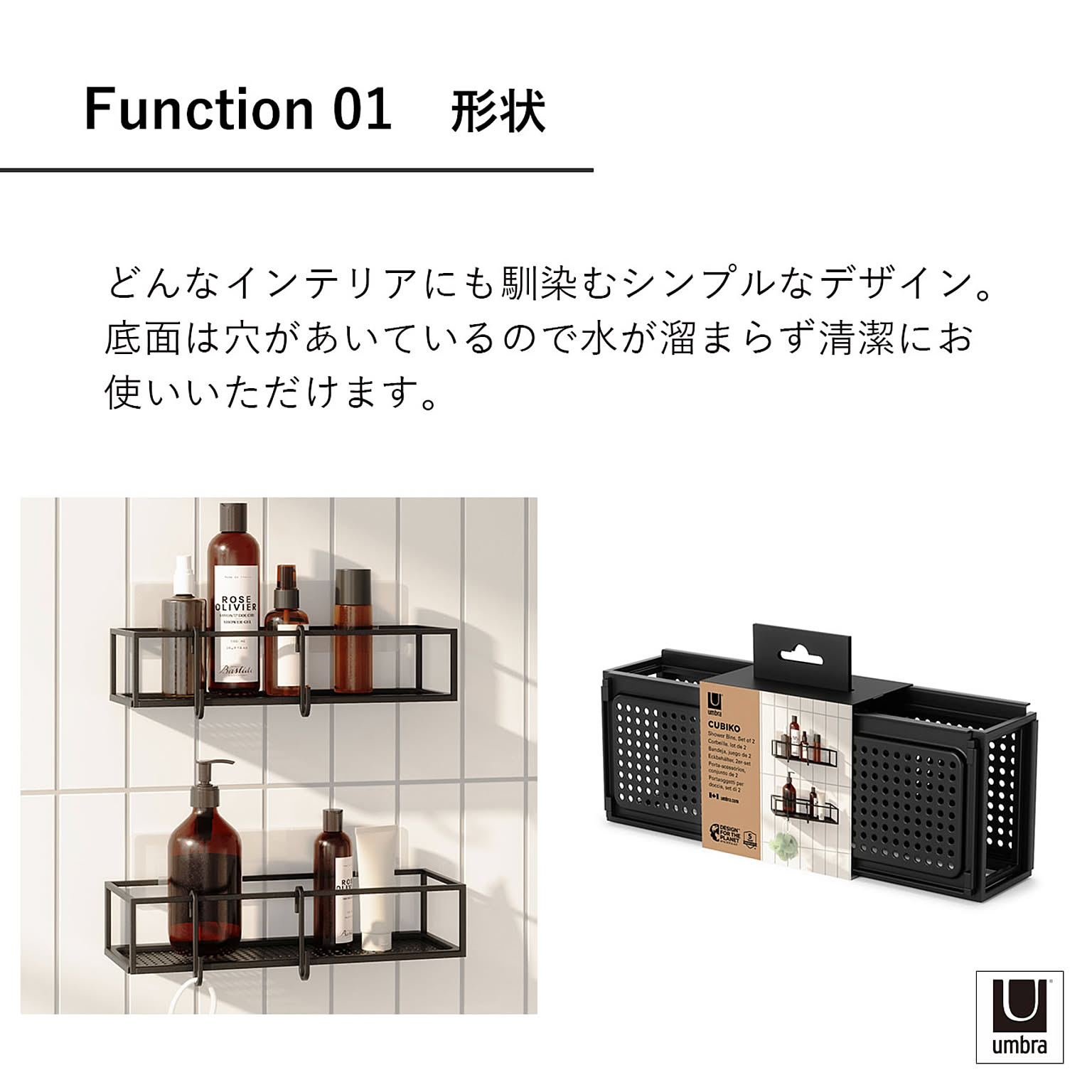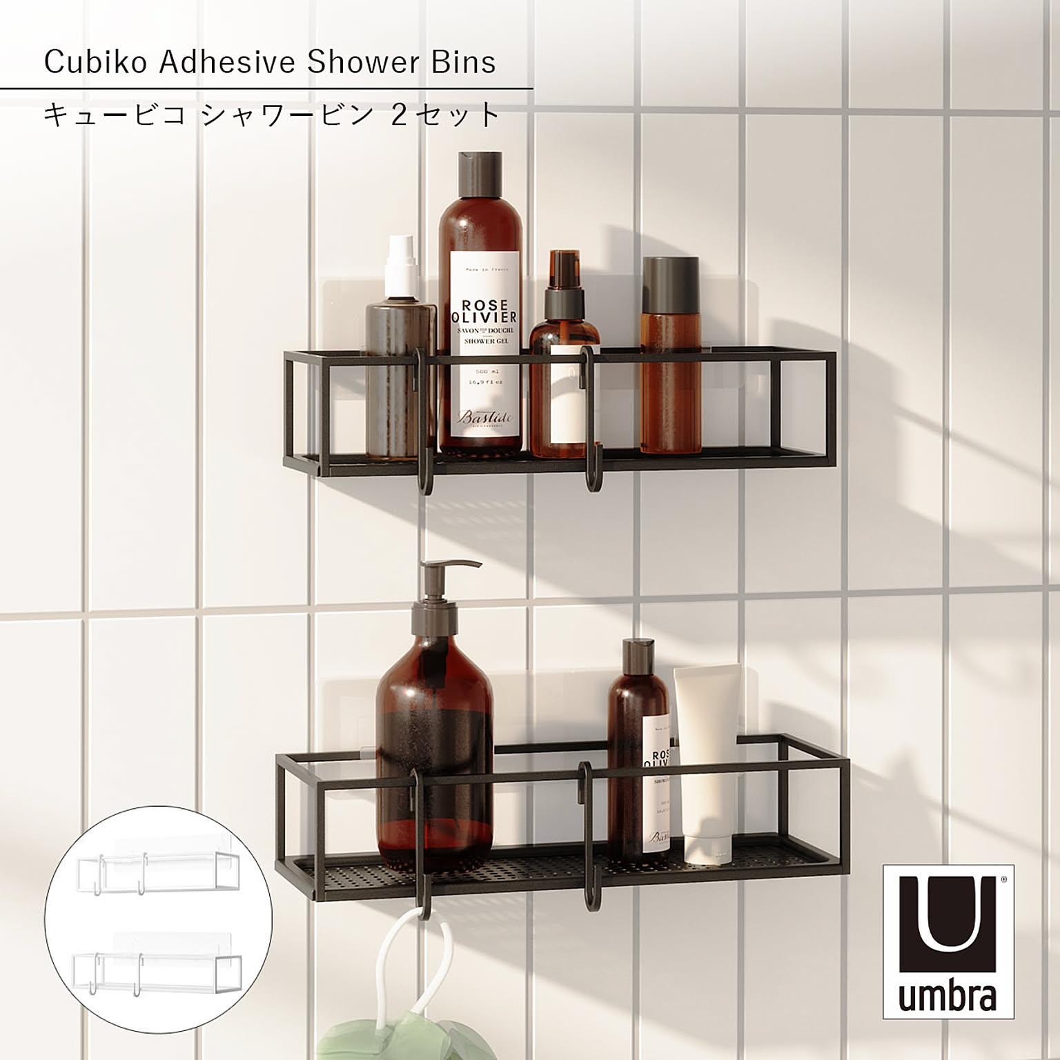 Umbra アンブラ キュービコ シャワービン 2pcsセット Cubiko Adhesive Shower Bins バス収納 お風呂 キッチン収納 フィルムフック タイル面 ガラス面 ラック